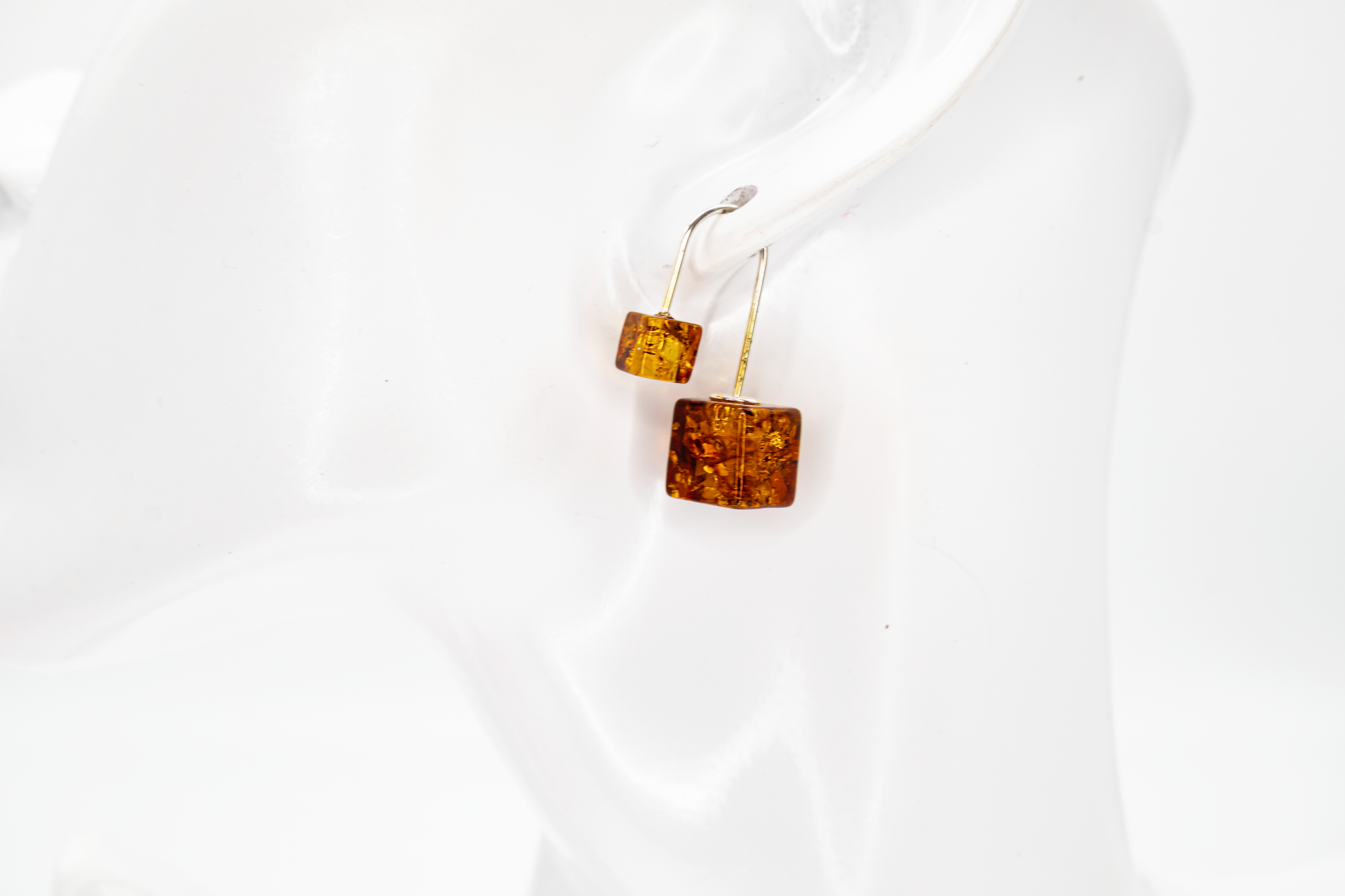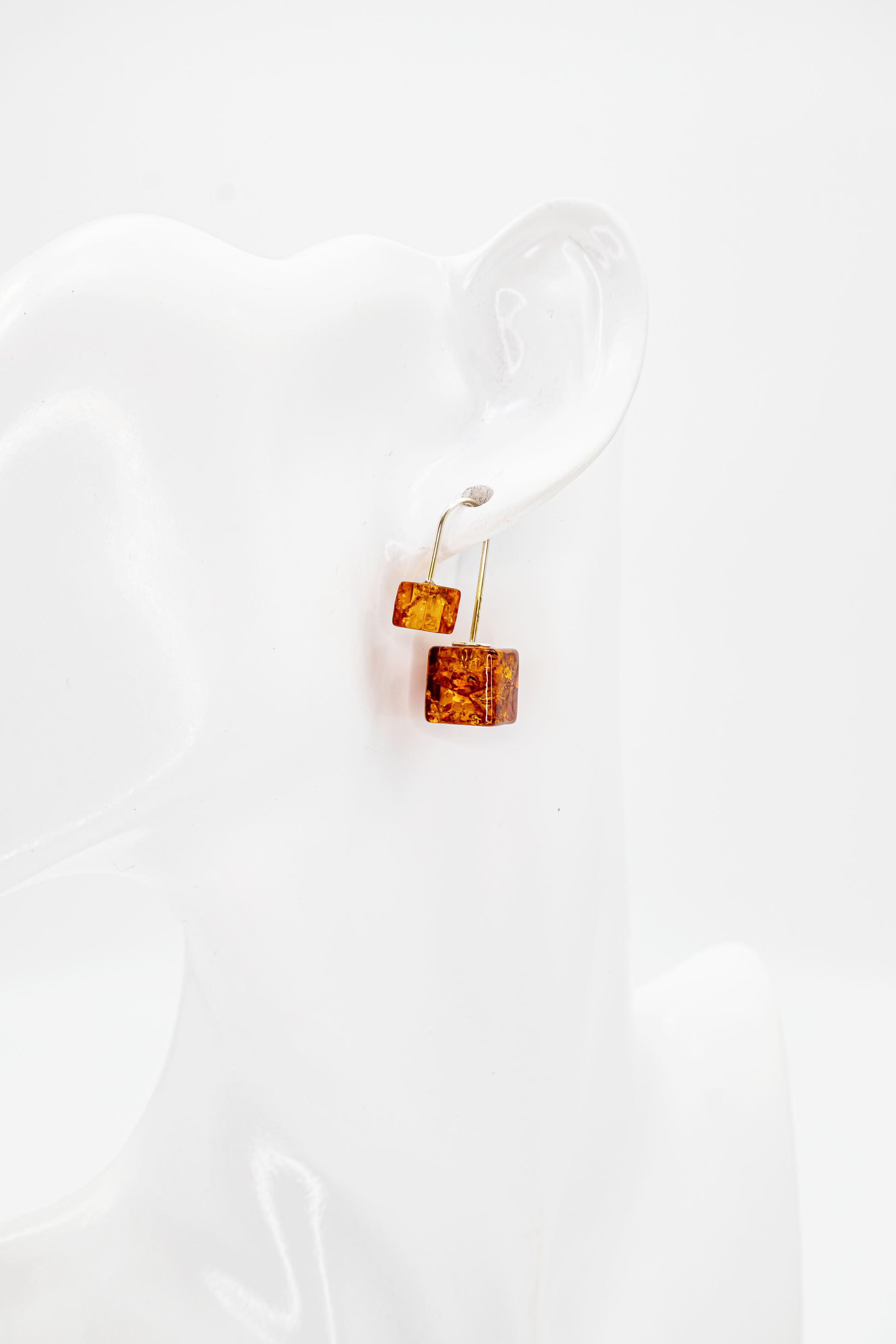 Modern amber earrings – silver 925 with cube shape