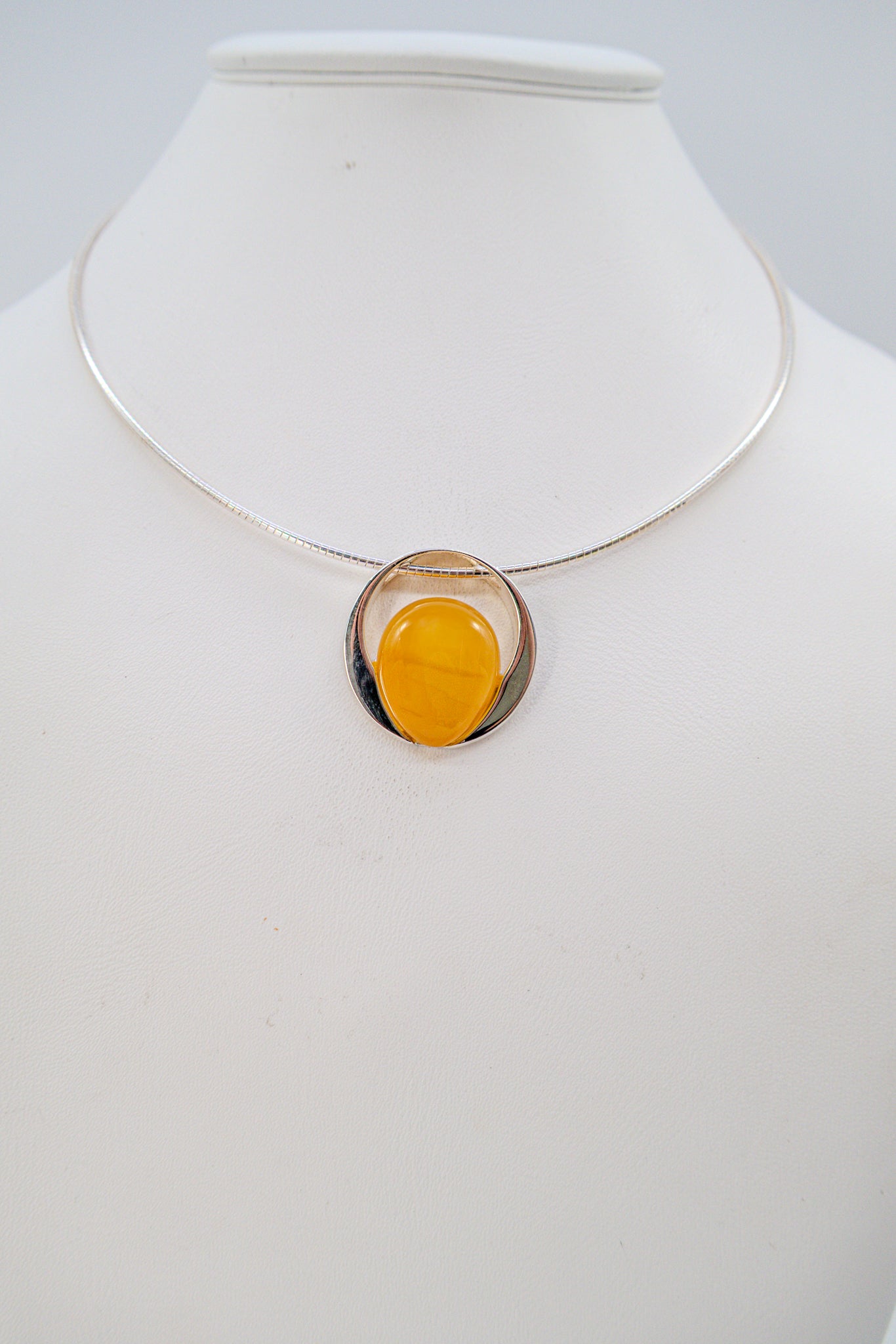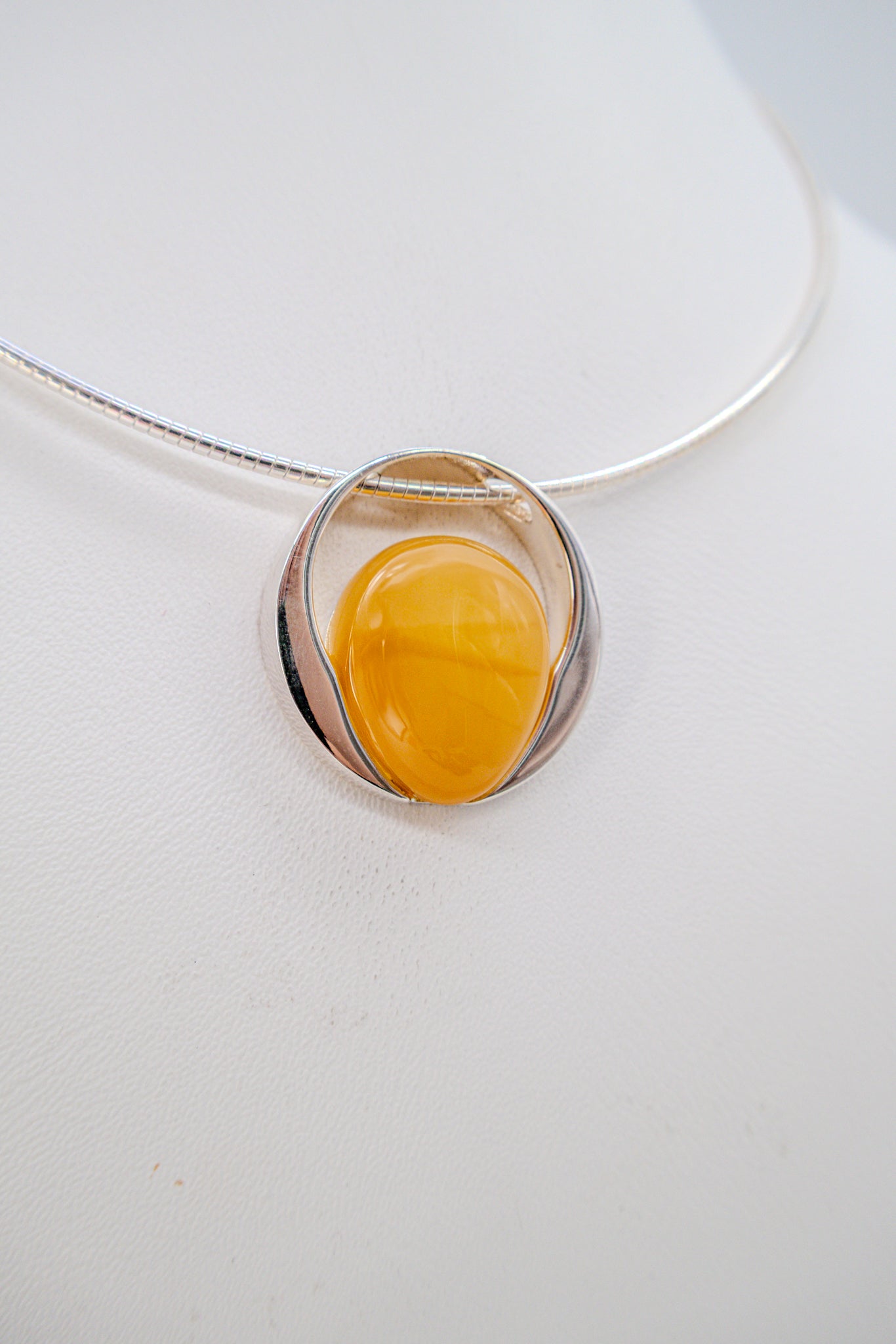 This elegant amber pendant (approx. 3 x 3 cm) made of 925 sterling silver impresses with its modern, round design featuring a honey-yellow, oval amber stone. The piece comes with a matching silver bracelet (45 cm) , providing you with a complete set that's ready to wear – a clear price advantage. Each piece of amber is a unique natural piece with a unique grain. Perfect as an elegant accessory or as a special gift for a birthday, anniversary, Valentine's Day, or Christmas.