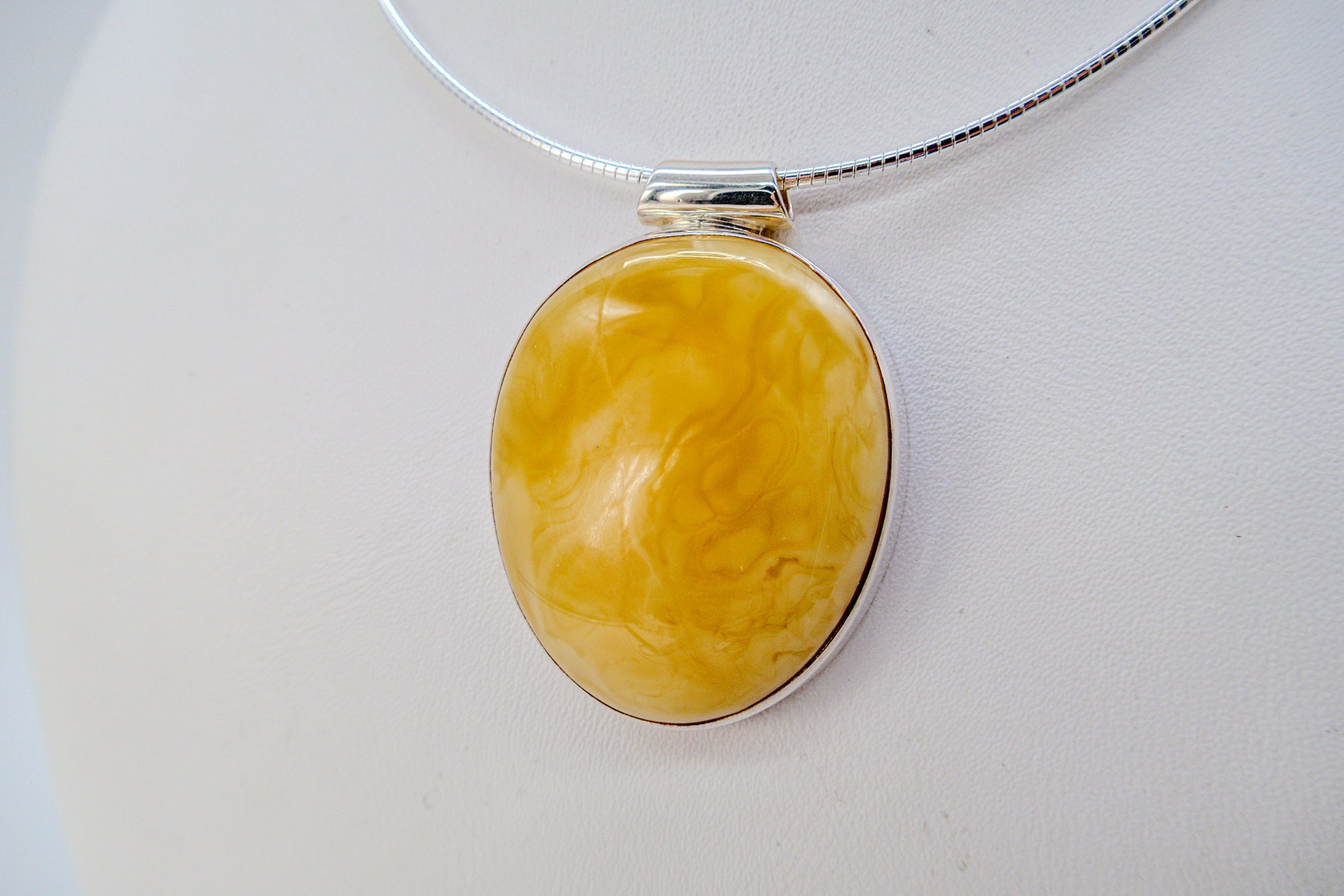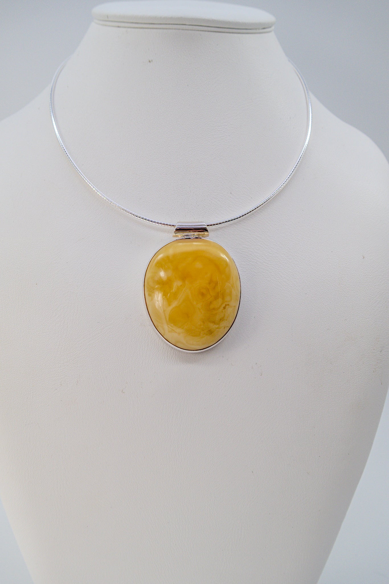 Shape: Oval amber in a modern silver setting