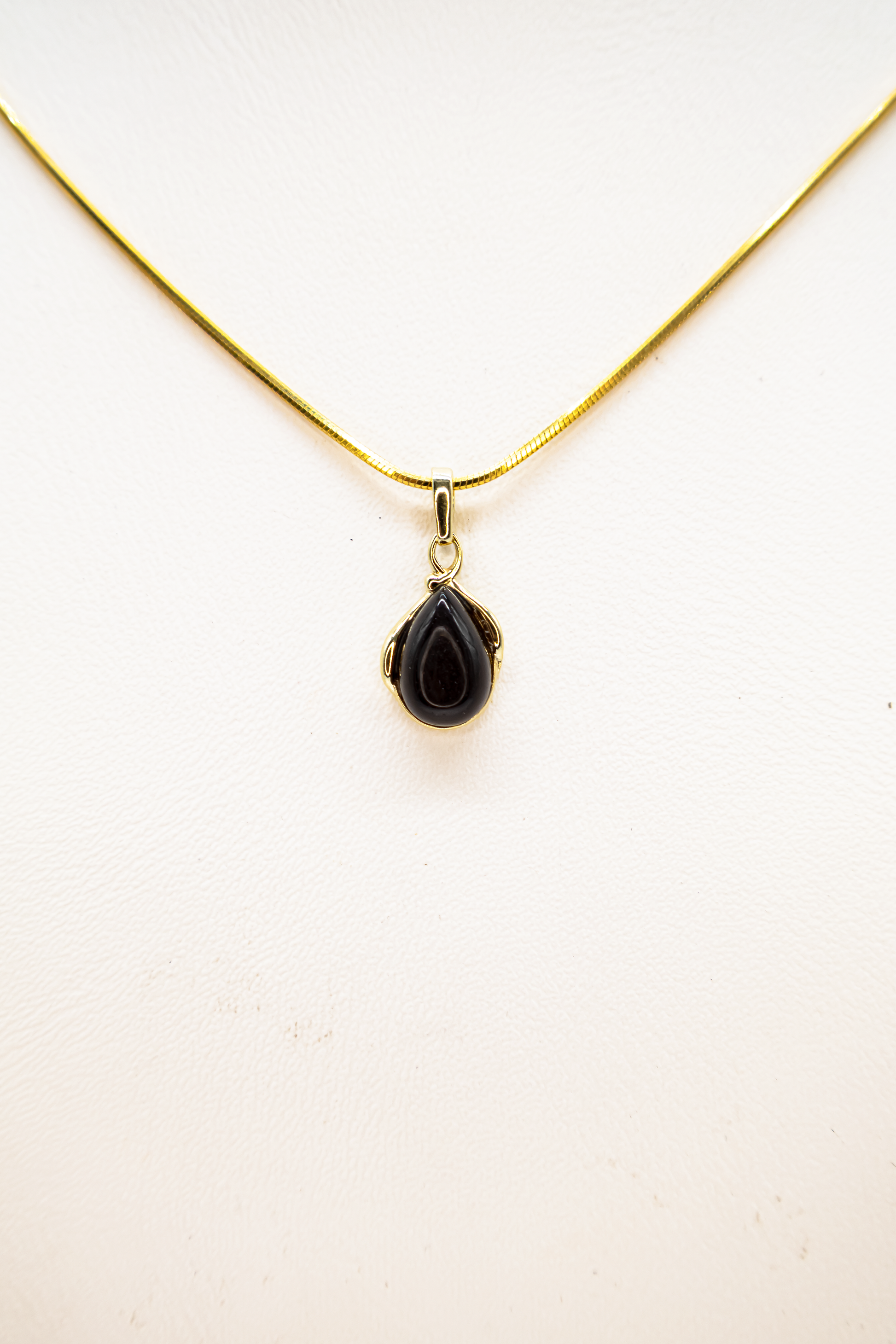 The pendant comes complete with a 42 cm gold-plated chain , making it ready to wear. Its teardrop-shaped design lends it a modern yet timeless look.