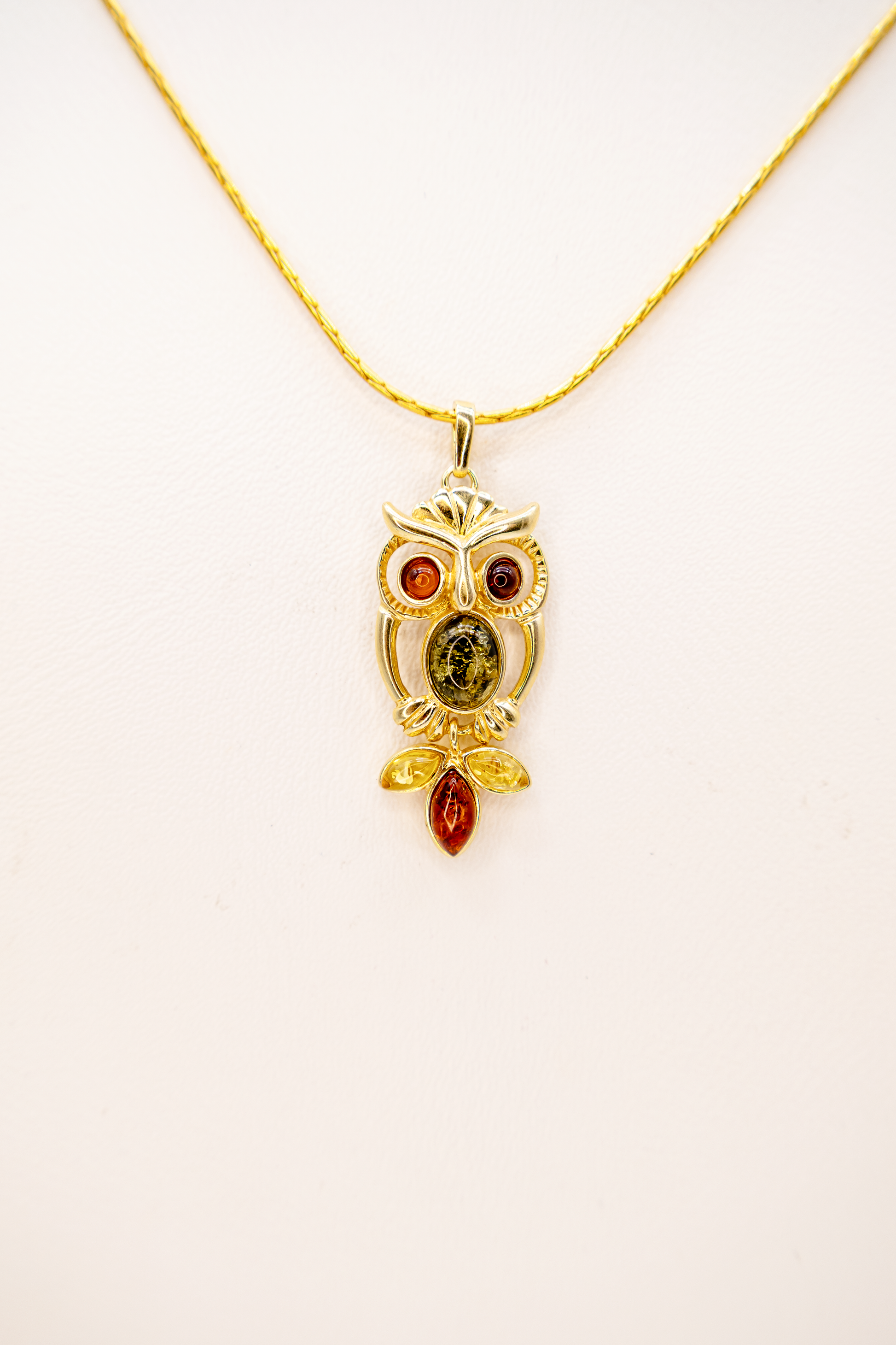 Owl as a symbol of wisdom and protection – exclusive pendant with genuine amber