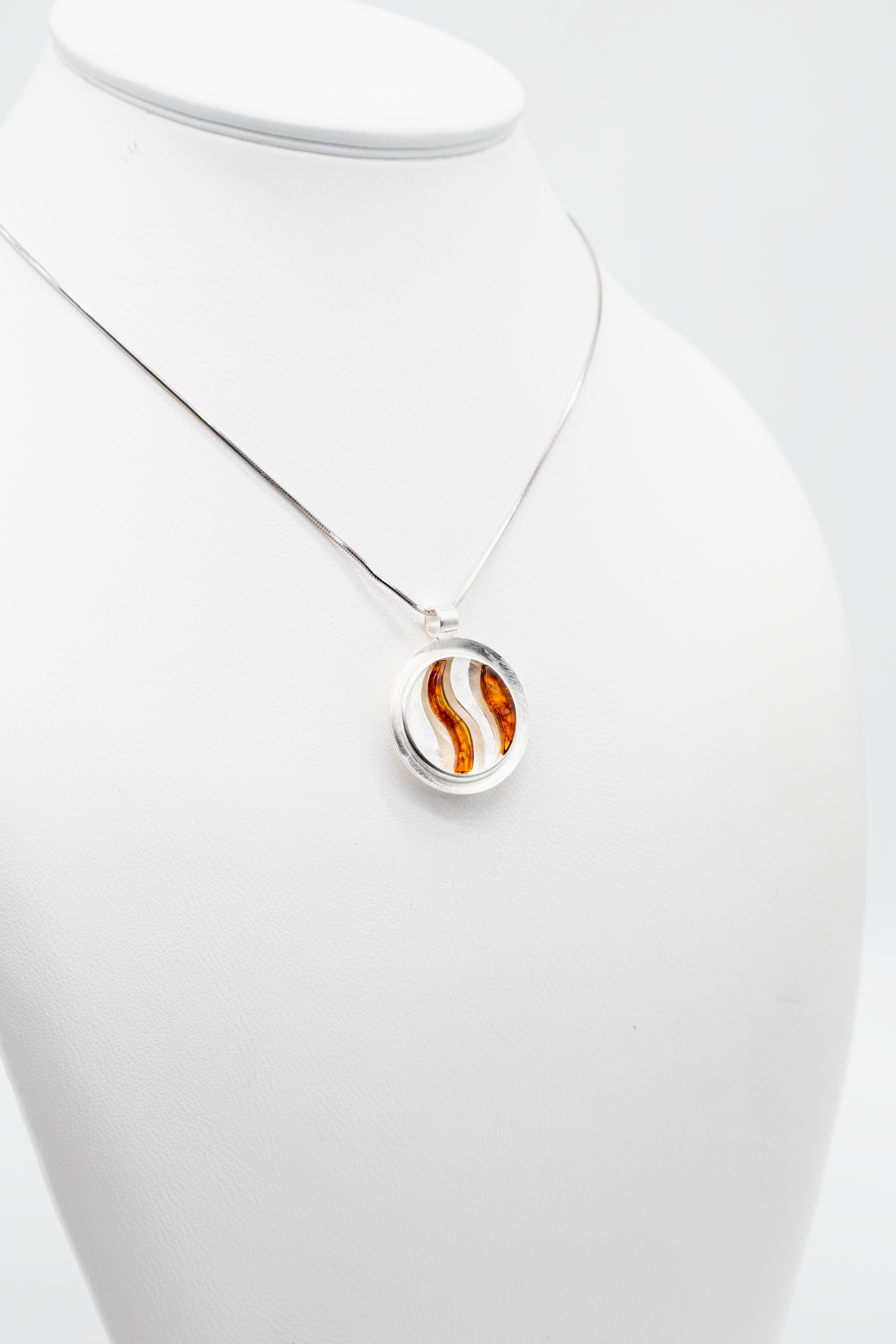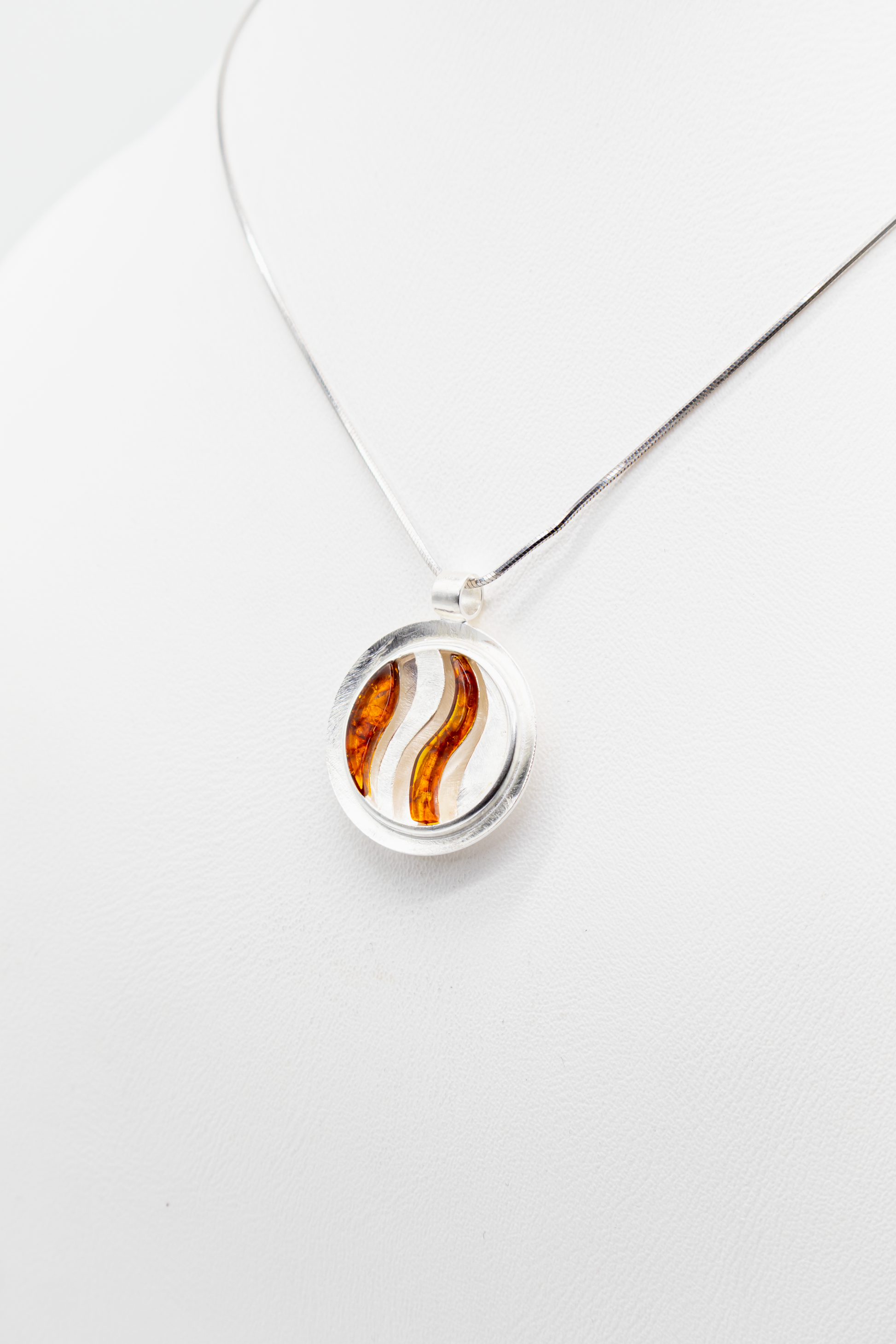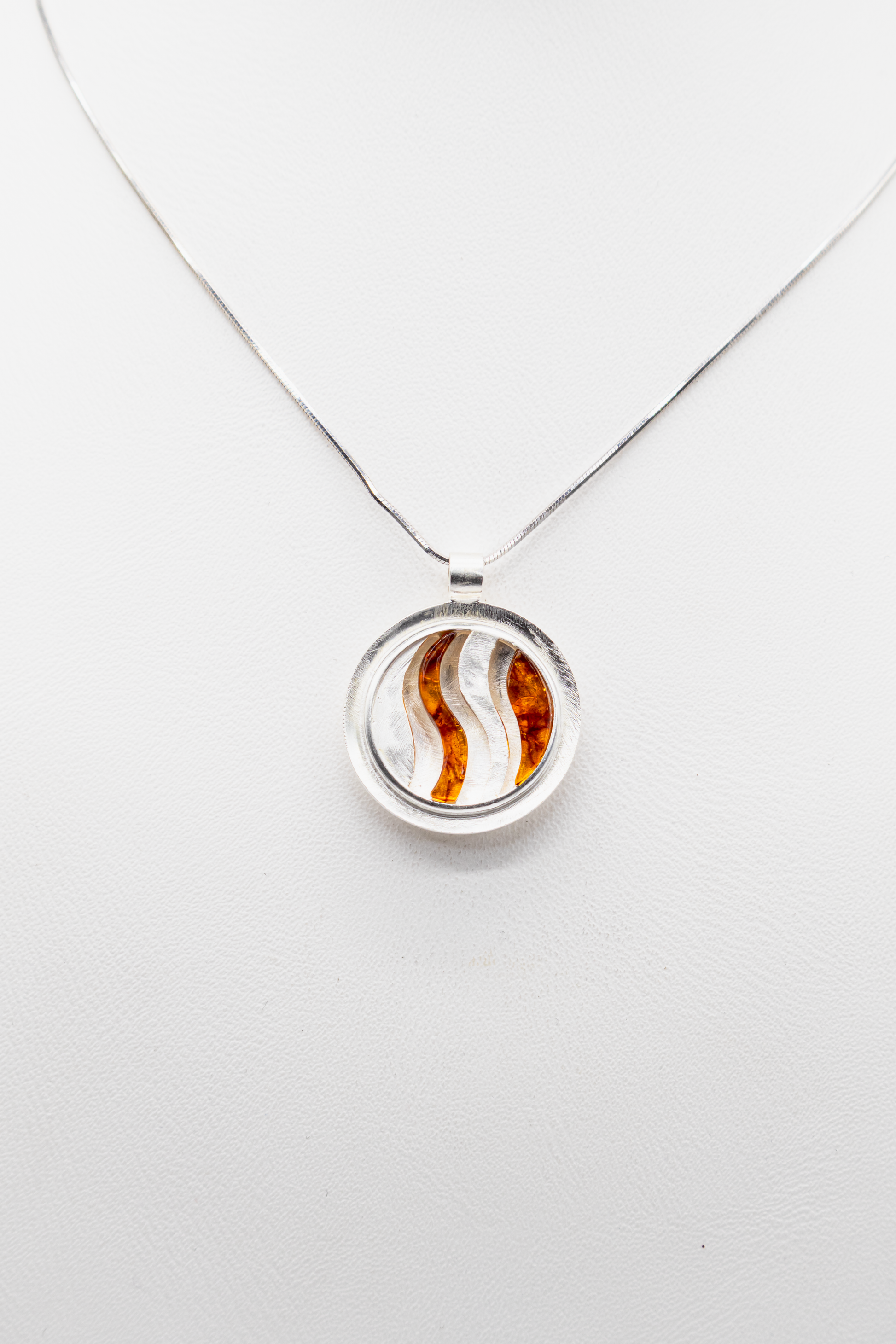 Dieser Anhänger wirkt sofort exklusiv: die Kombination aus massivem 925er Sterlingsilber und warm leuchtendem Bernstein schafft ein Design, das gleichzeitig modern und zeitlos aussieht. Die elegante Wellenstruktur hebt den Bernstein optisch hervor und macht den Anhänger zu einem echten Blickfang – egal, ob im Alltag oder zu besonderen Anlässen.