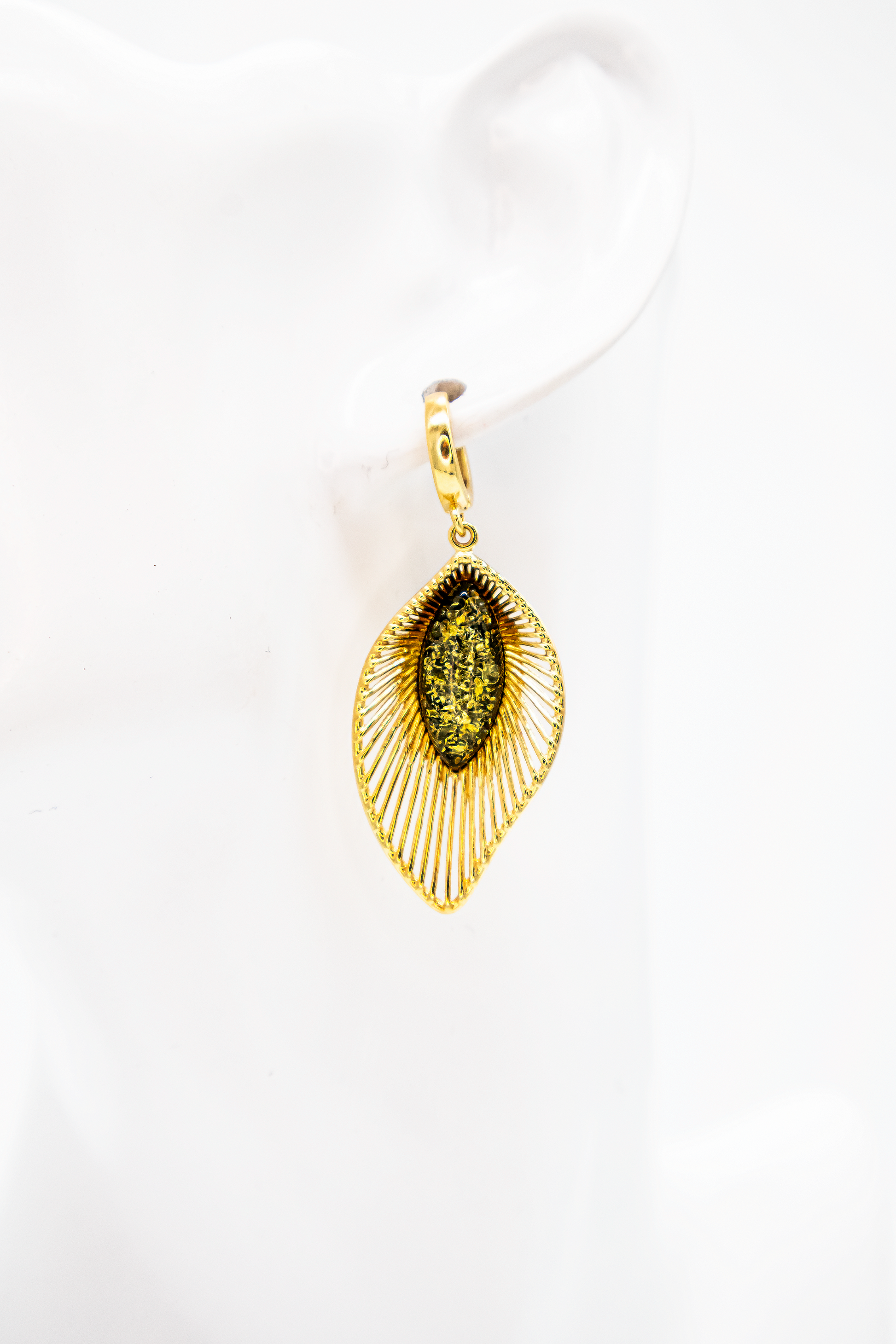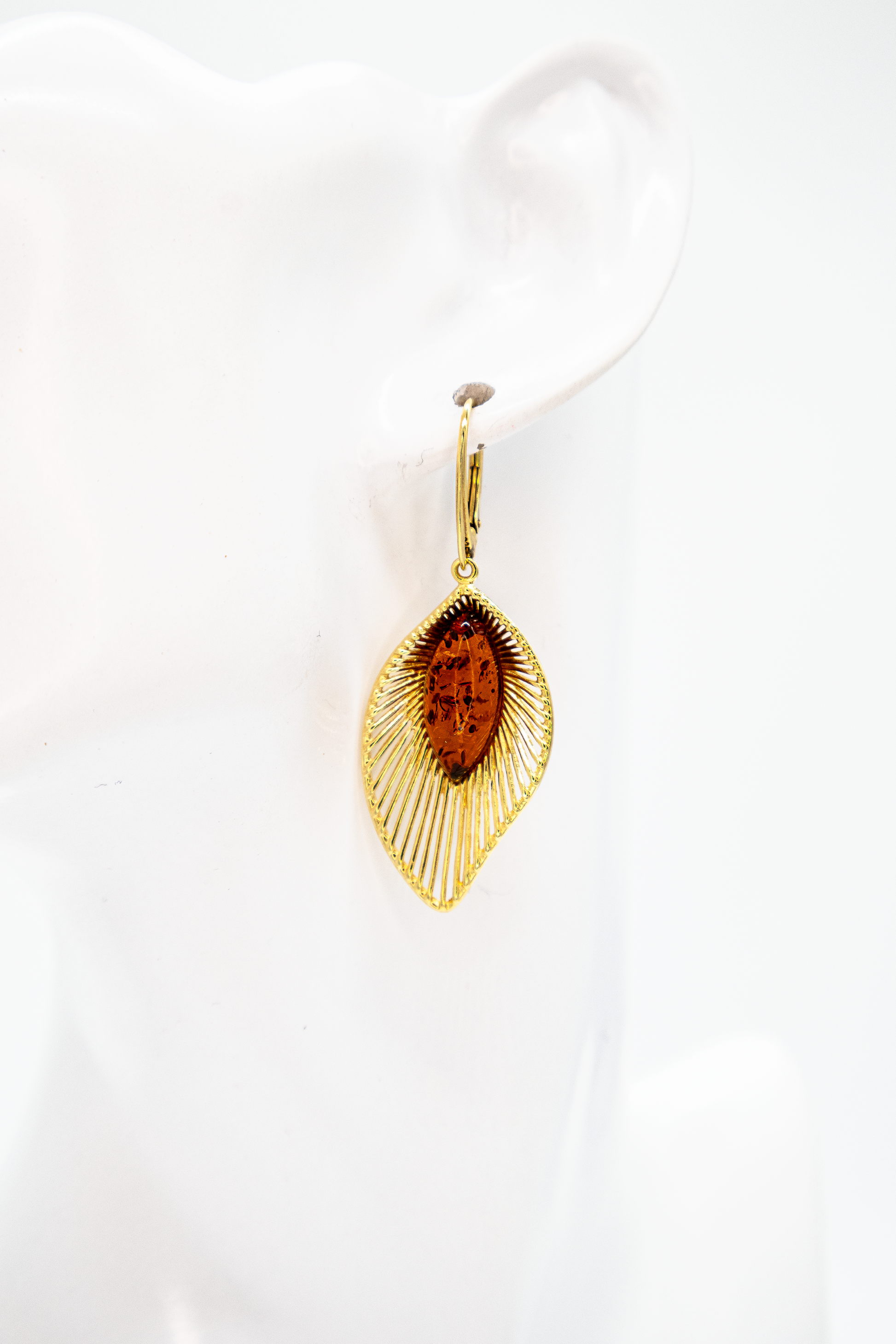Genuine amber; 24 K gold-plated 925 sterling silver (double gold-plated)