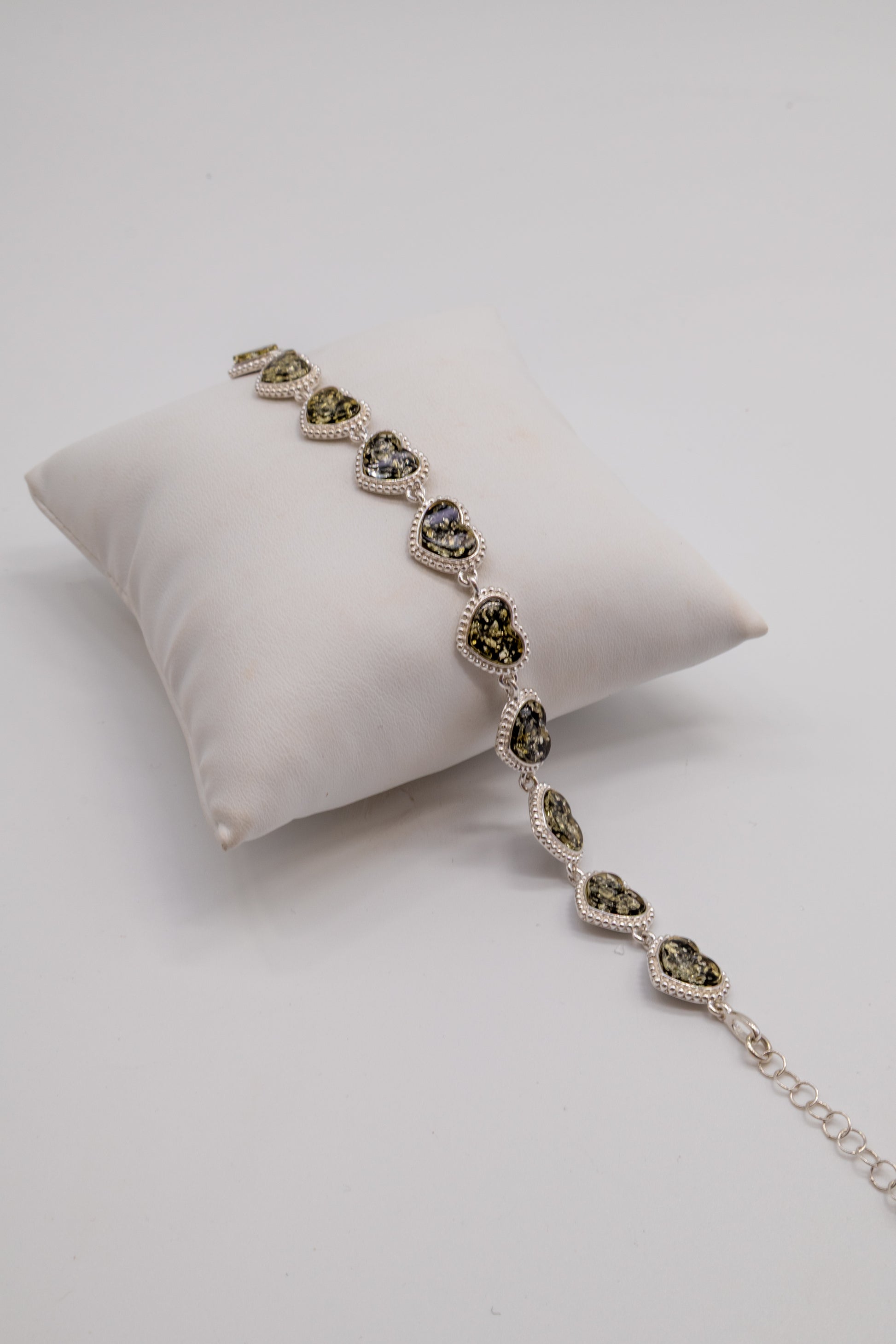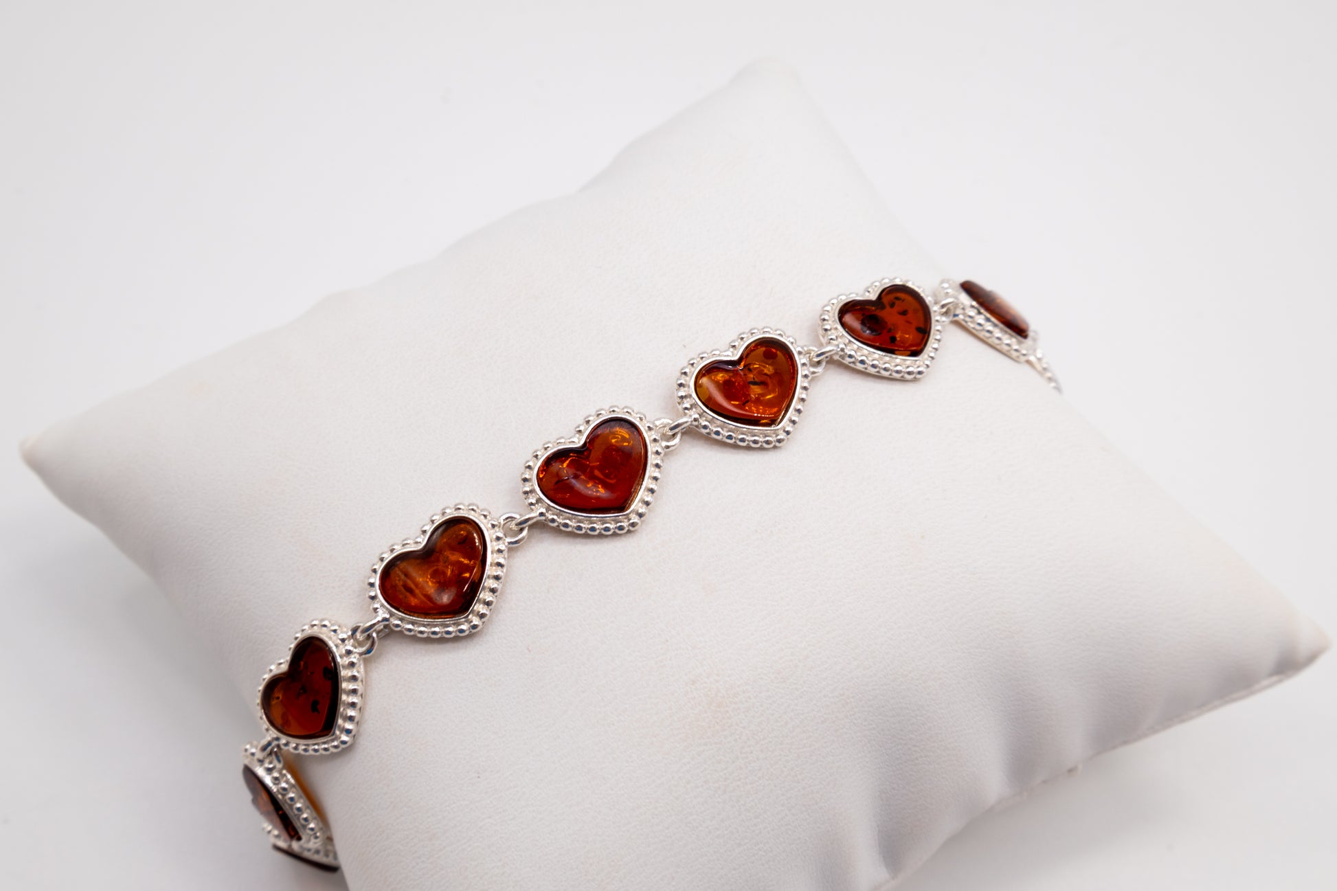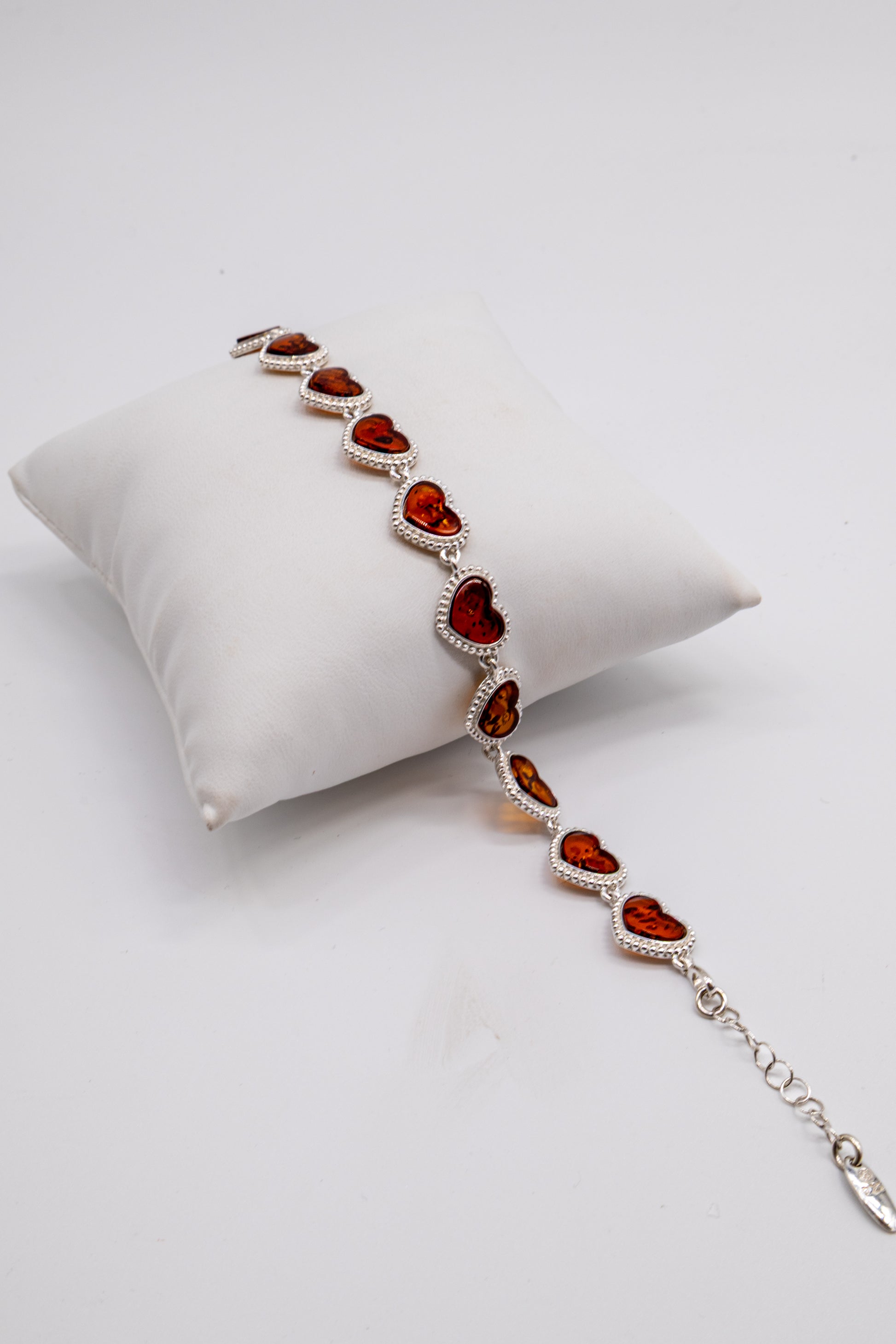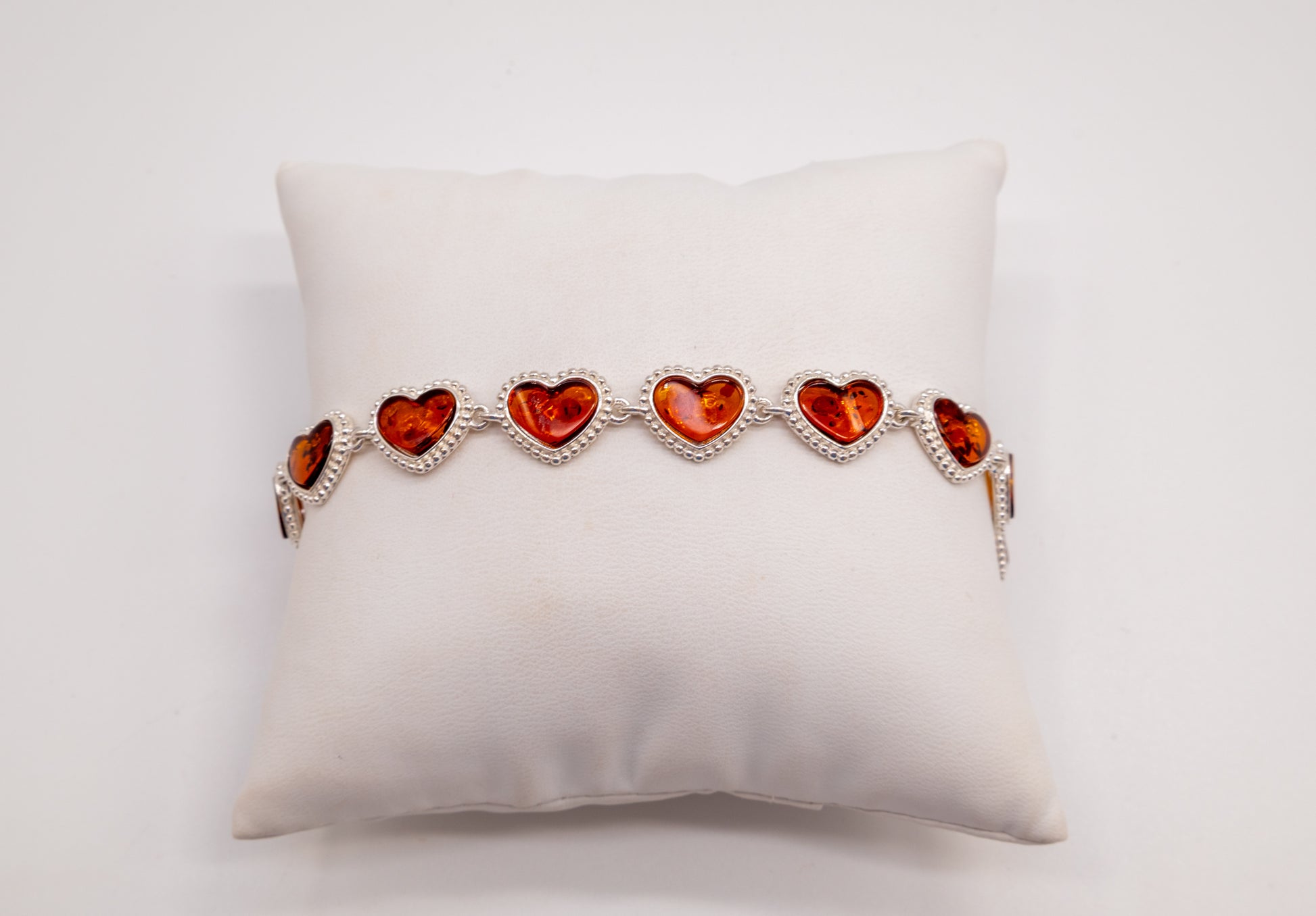 The heart-shaped amber elements make this bracelet a lovely eye-catcher.