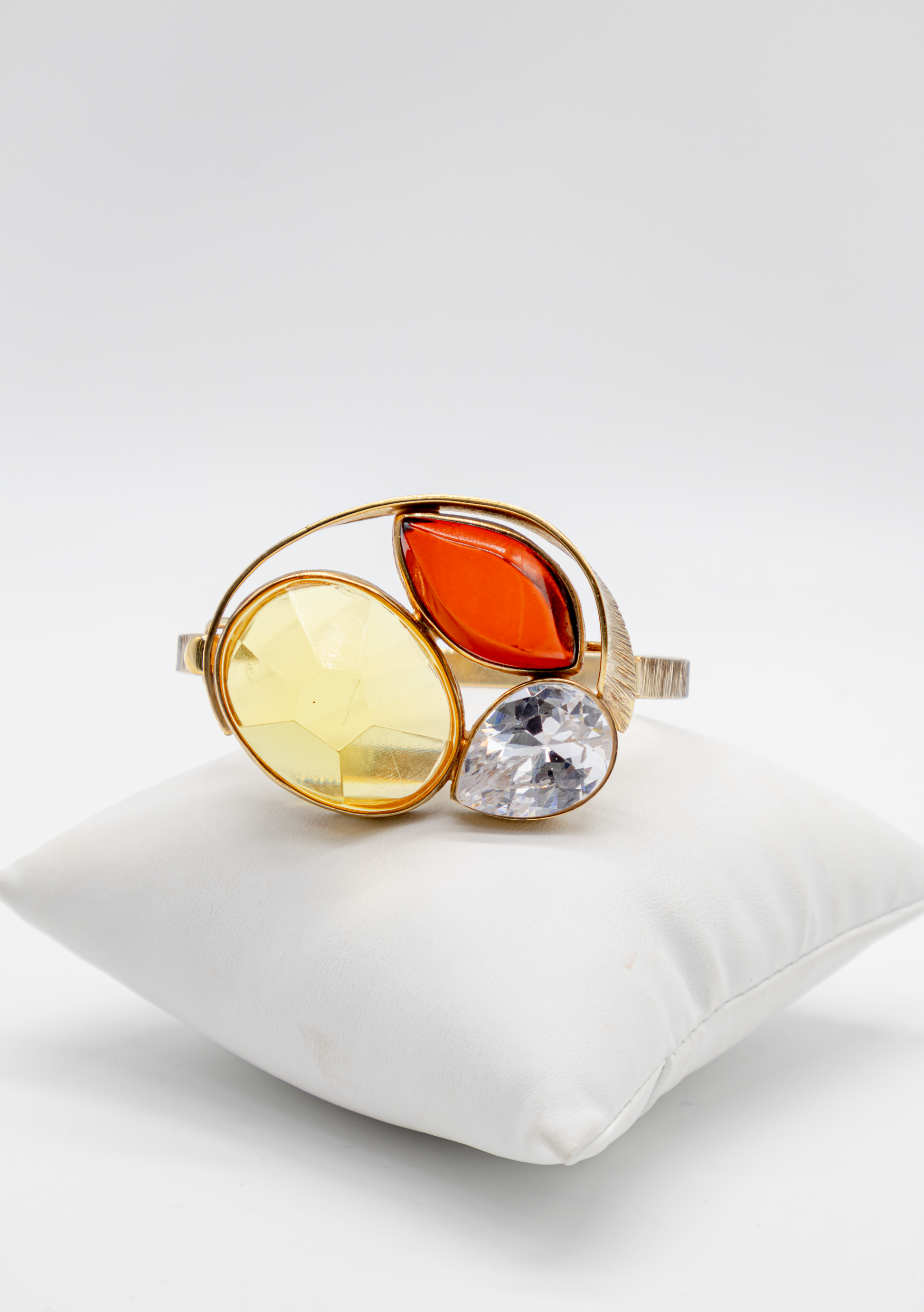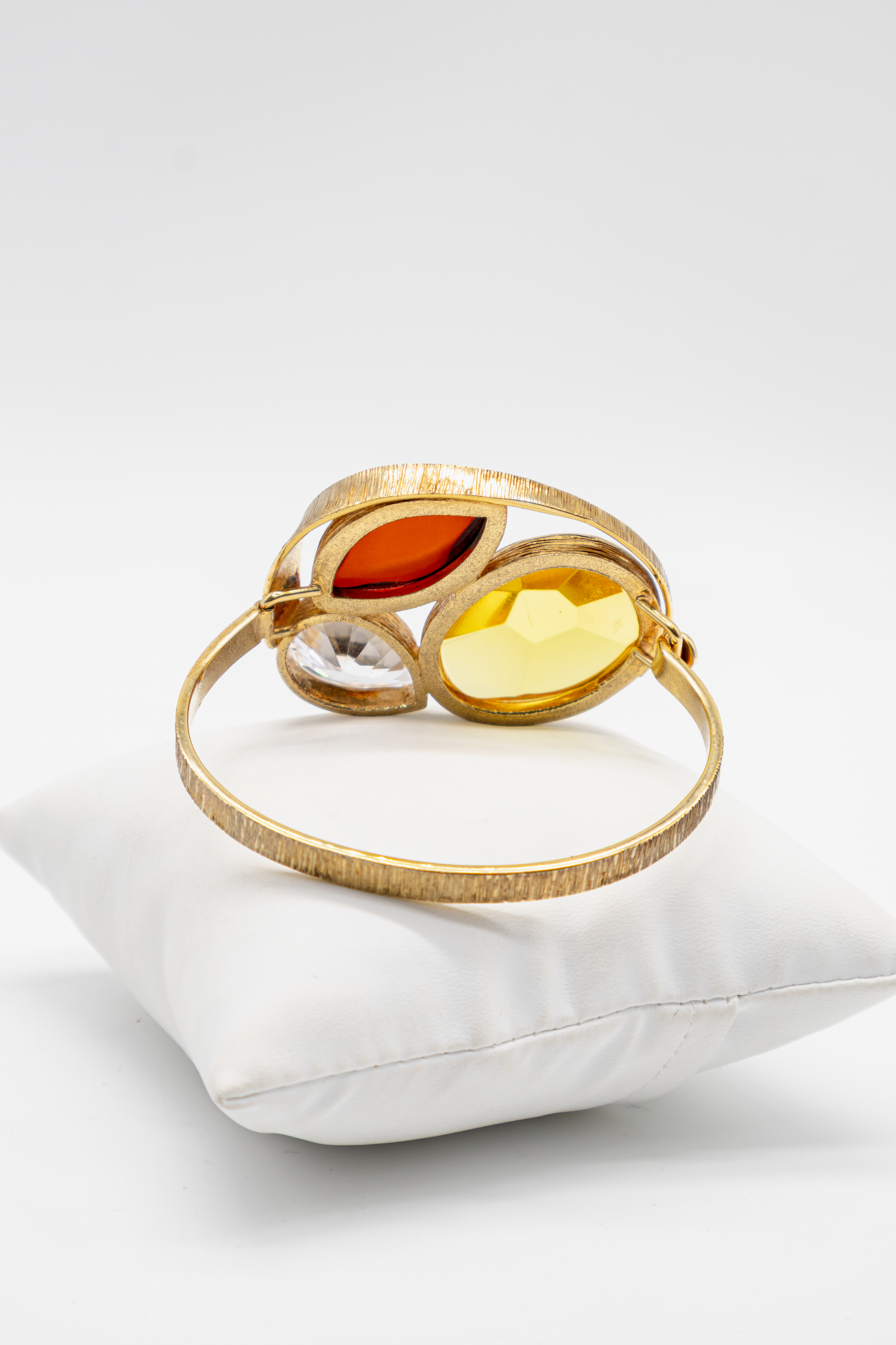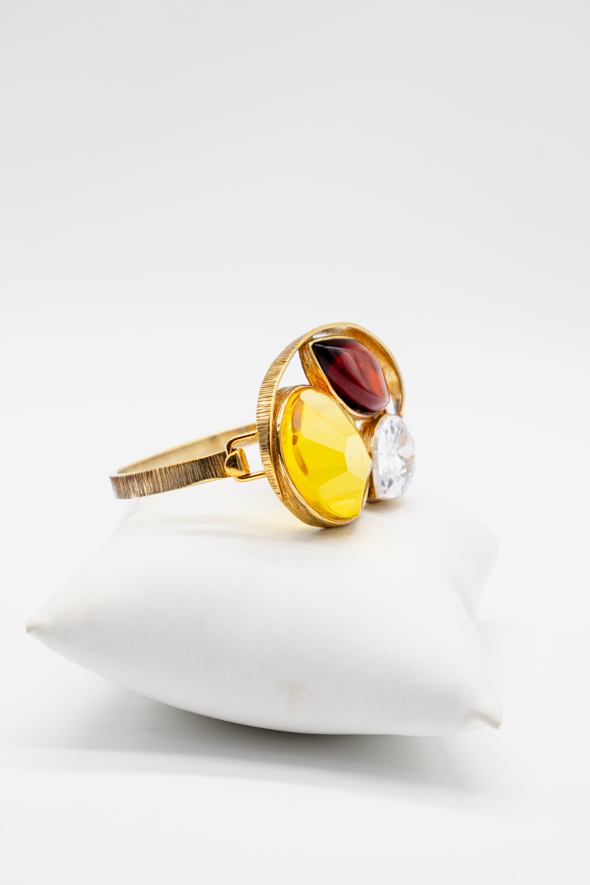 Luxus-Armspange: Echter Bernstein & Zirkonia, 24k doppelt vergoldet