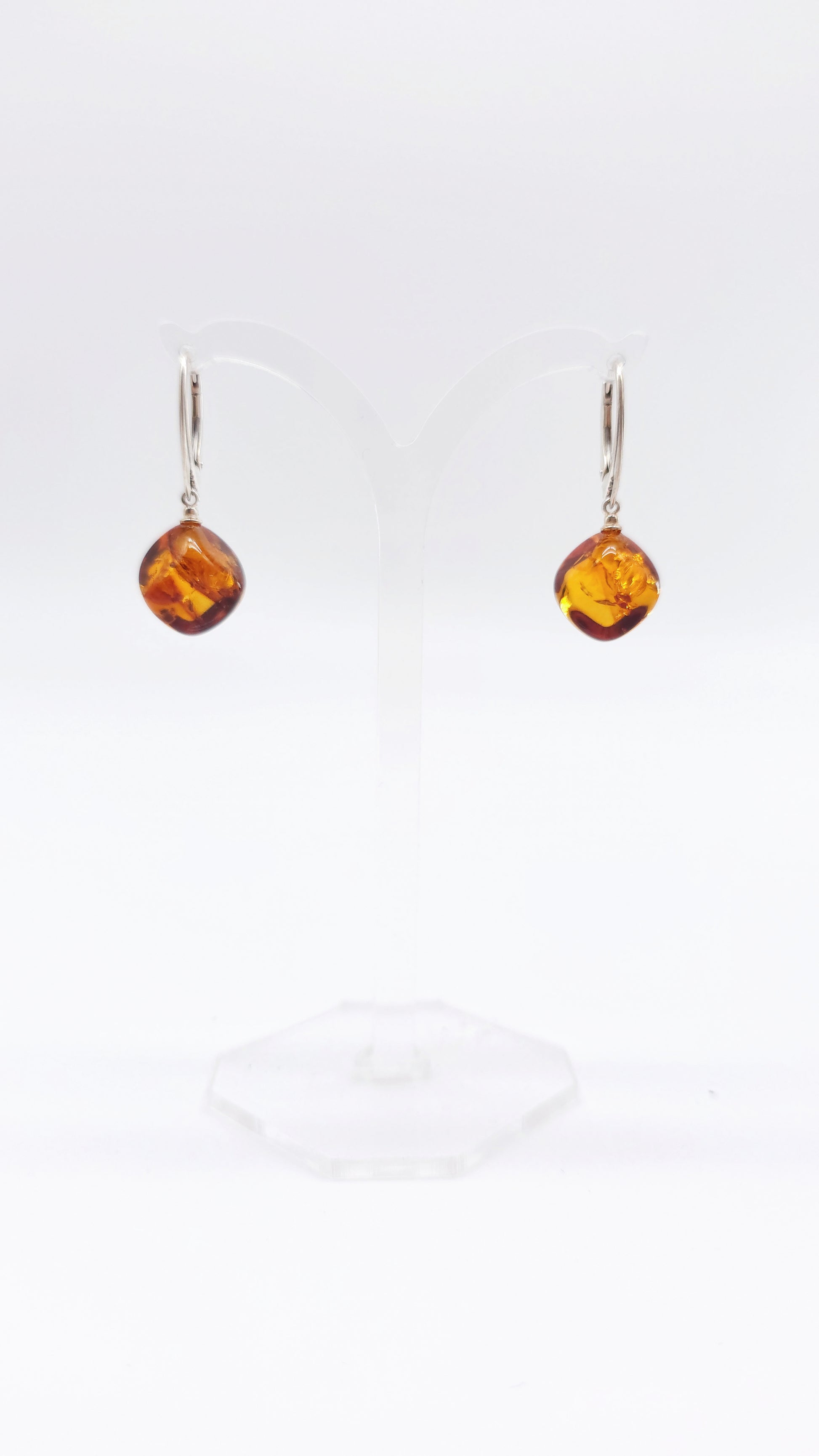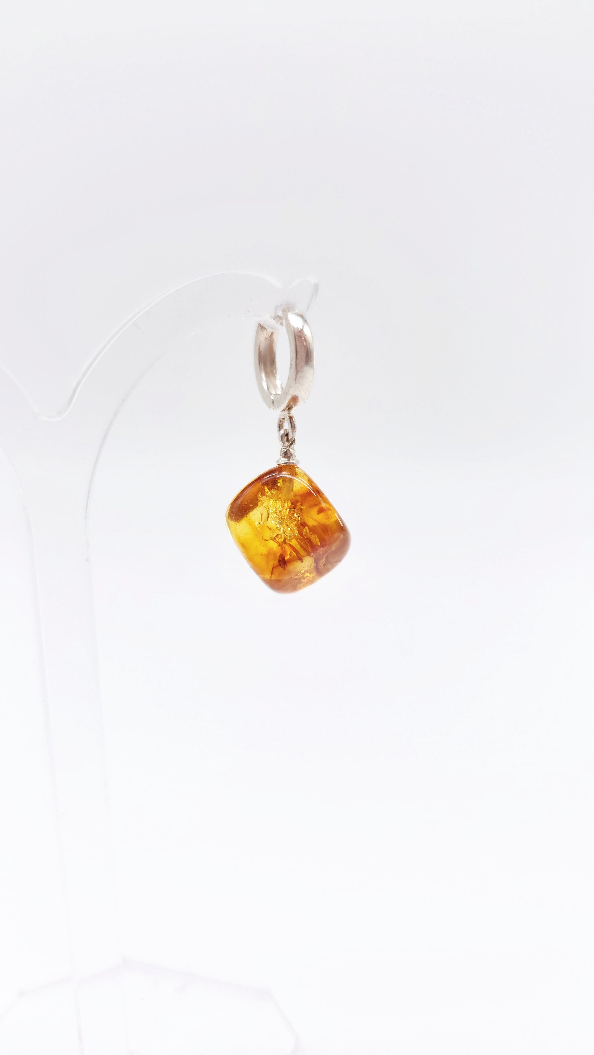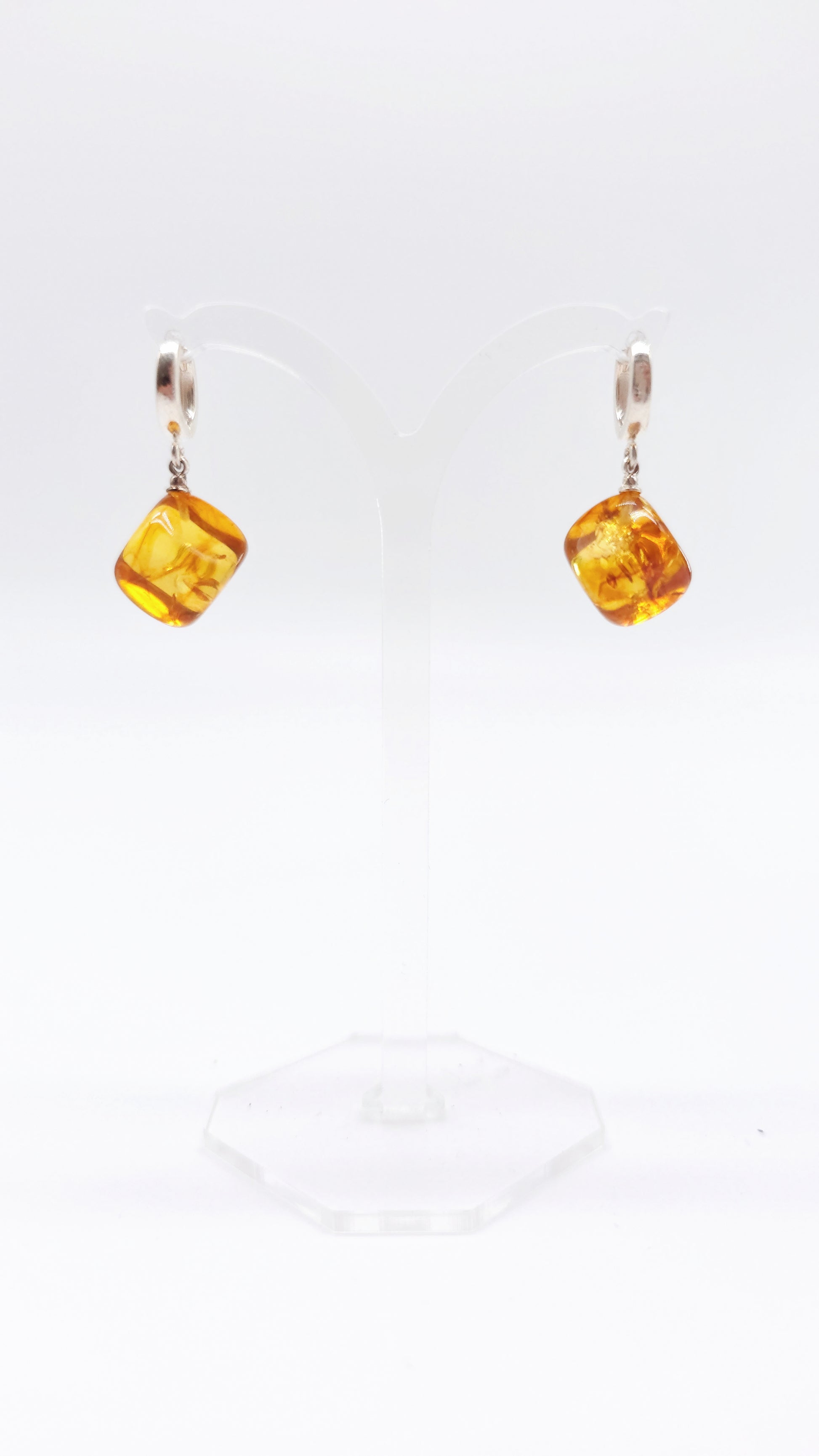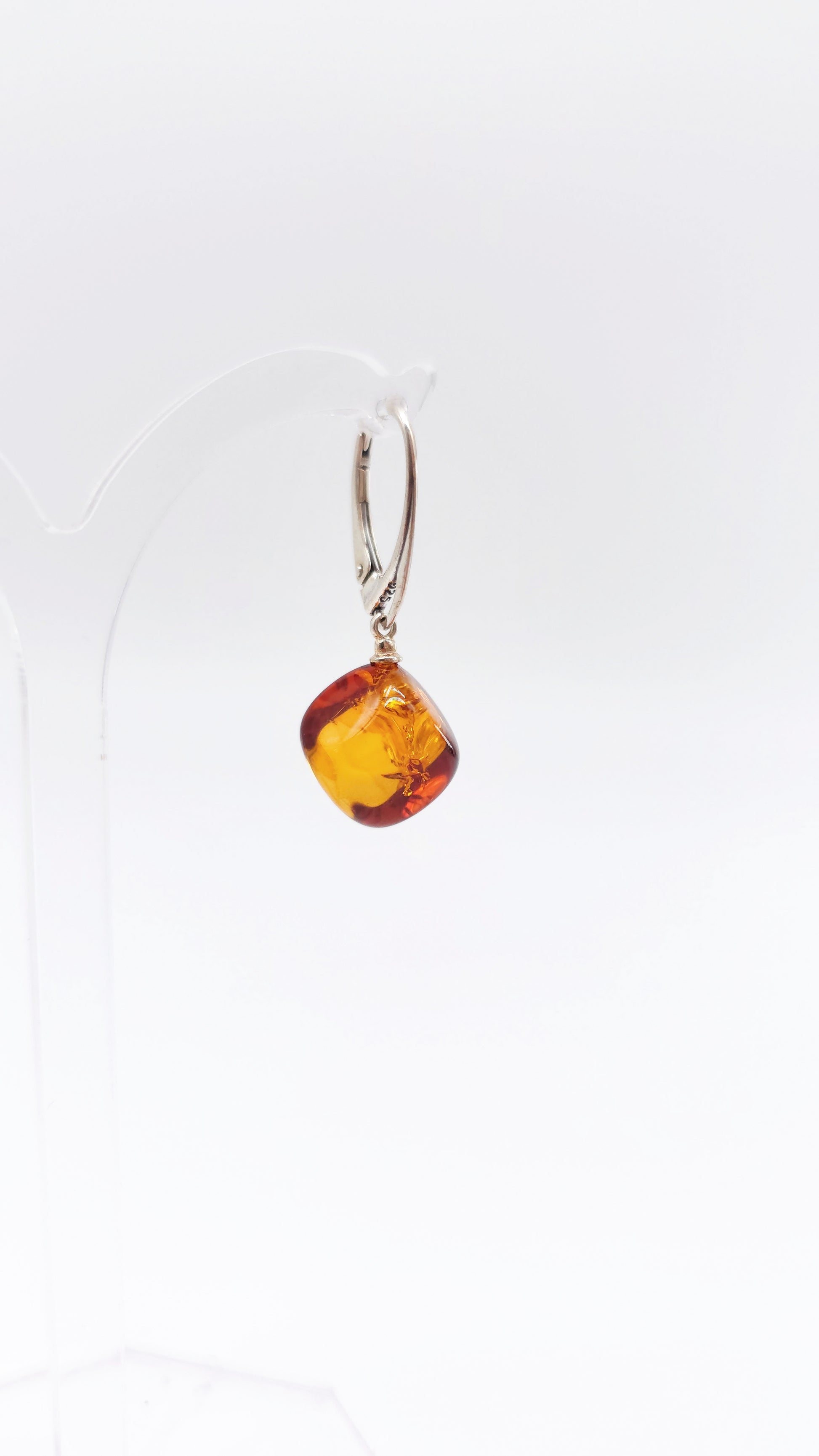 These handmade square amber earrings combine simple elegance with natural charm. The clear, honey-colored stone shimmers vibrantly in the light, making each pair unique. The high-quality craftsmanship of 925 sterling silver ensures a secure and stylish fit.