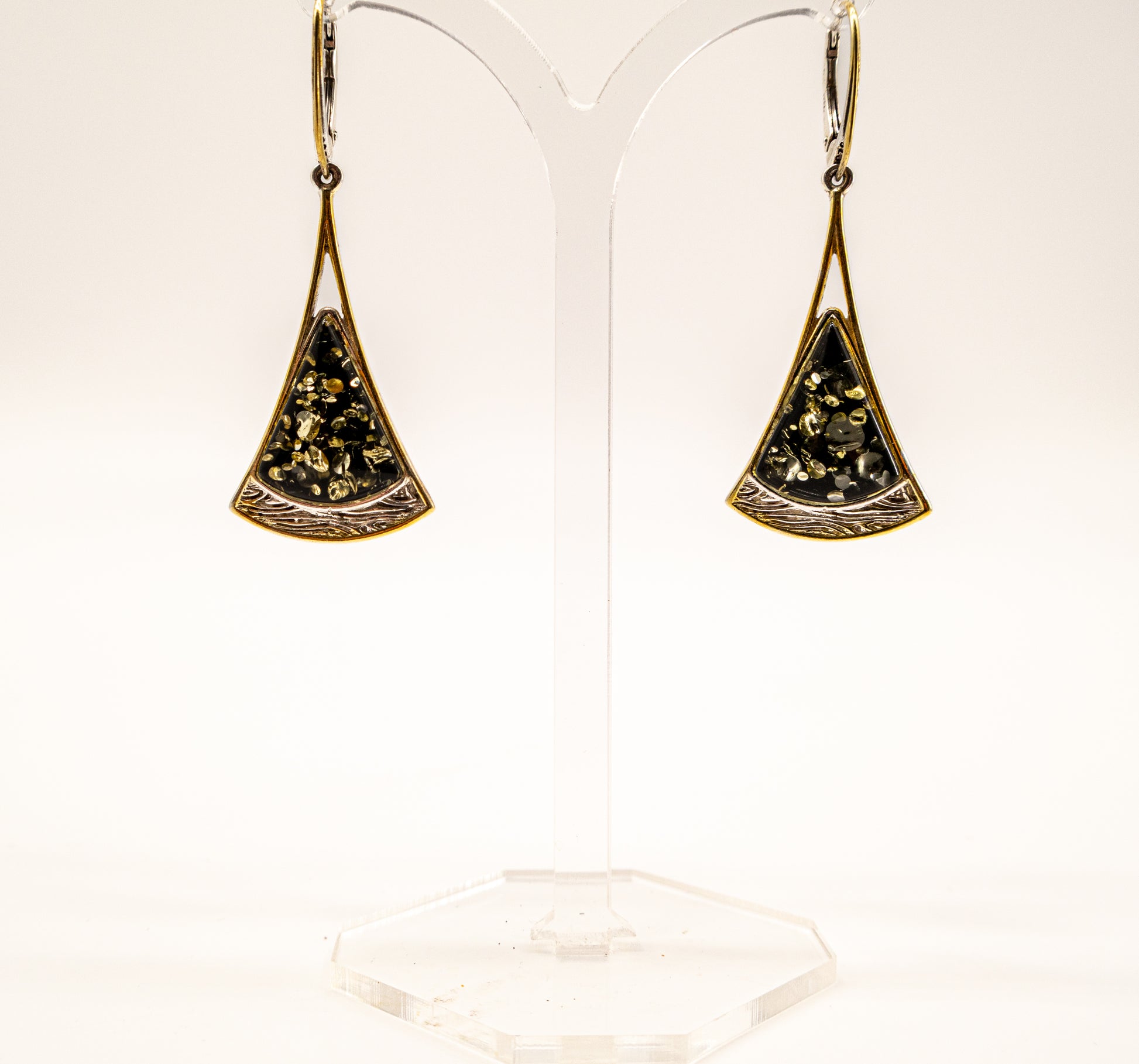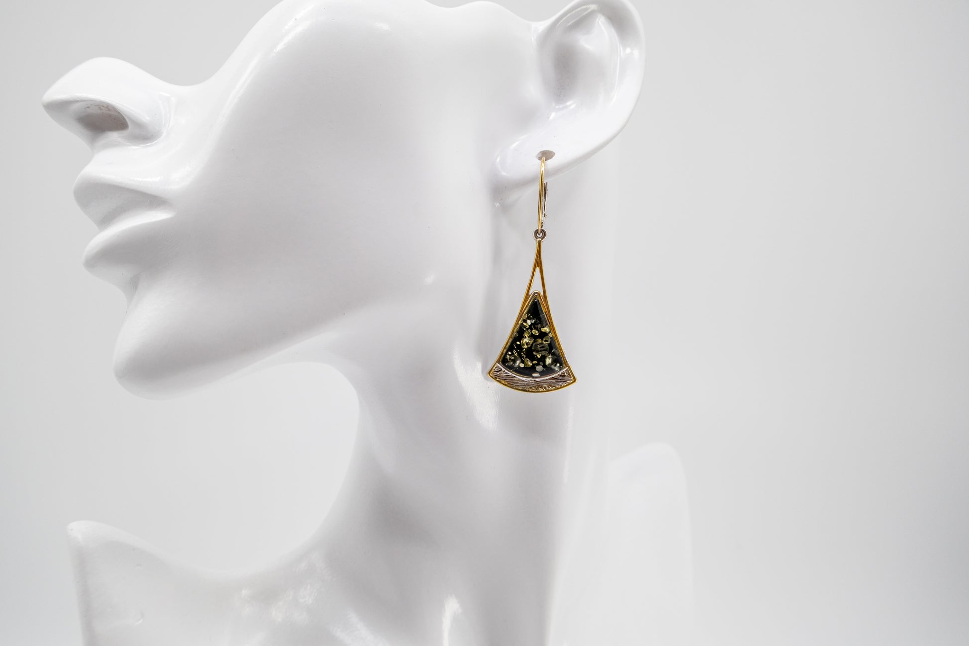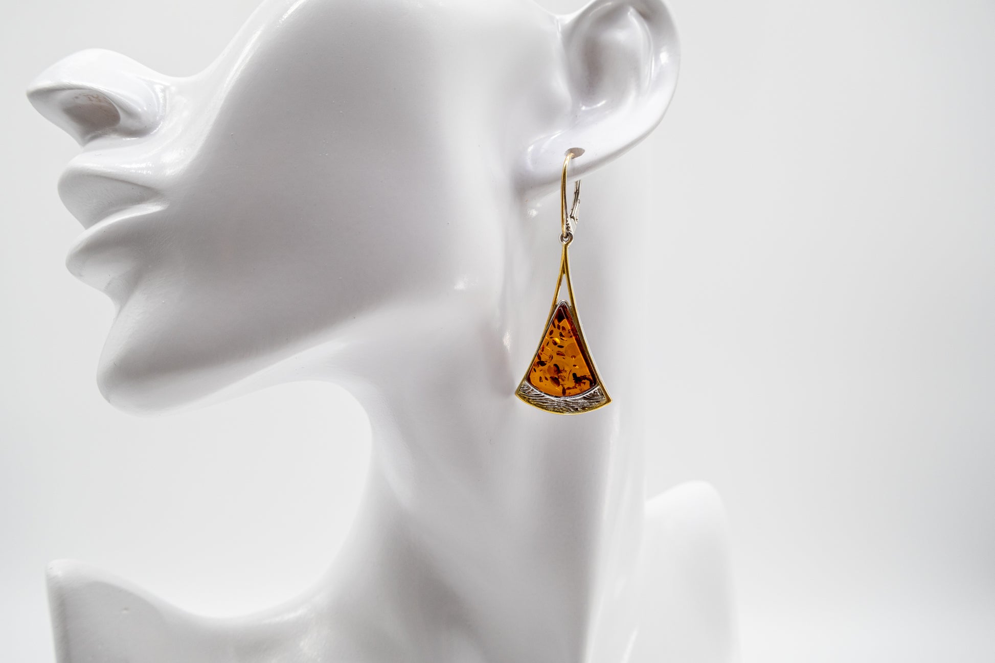 These elegant silver earrings with gold-plated accents and a deep amber-colored stone in a striking, modern design are a true eye-catcher. The luminous amber harmonizes perfectly with the delicate silver and gold tones, adding a special touch to any outfit. Measuring approximately 5.3 cm in length and approximately 2 cm in width, the earrings are suitable for both everyday wear and special occasions. Ideal as a gift for your wife, sister, or girlfriend—a unique piece of jewelry for special moments.
