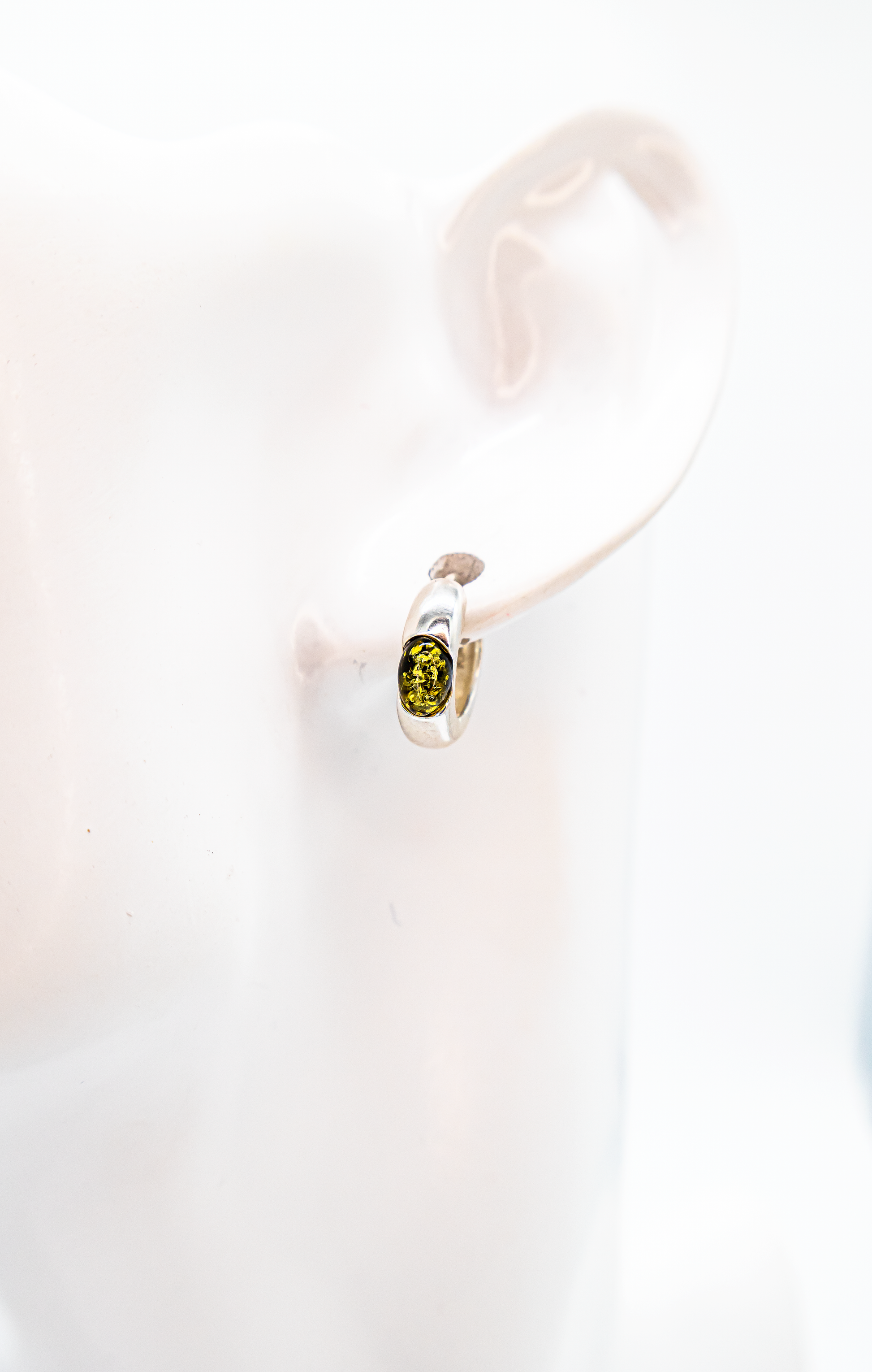 Handmade mini earrings with green amber – subtle, lightweight, and ideal for everyday wear.