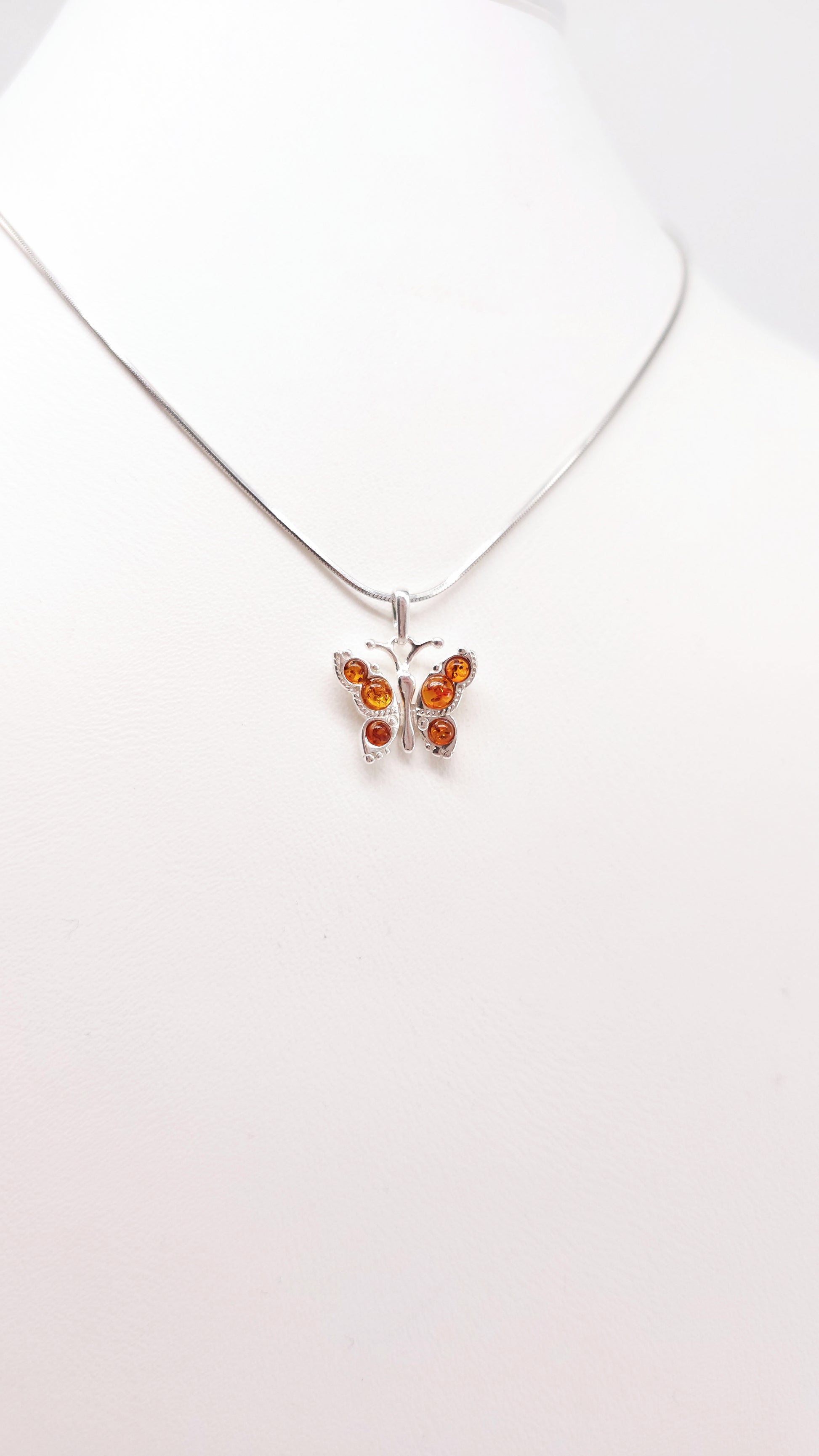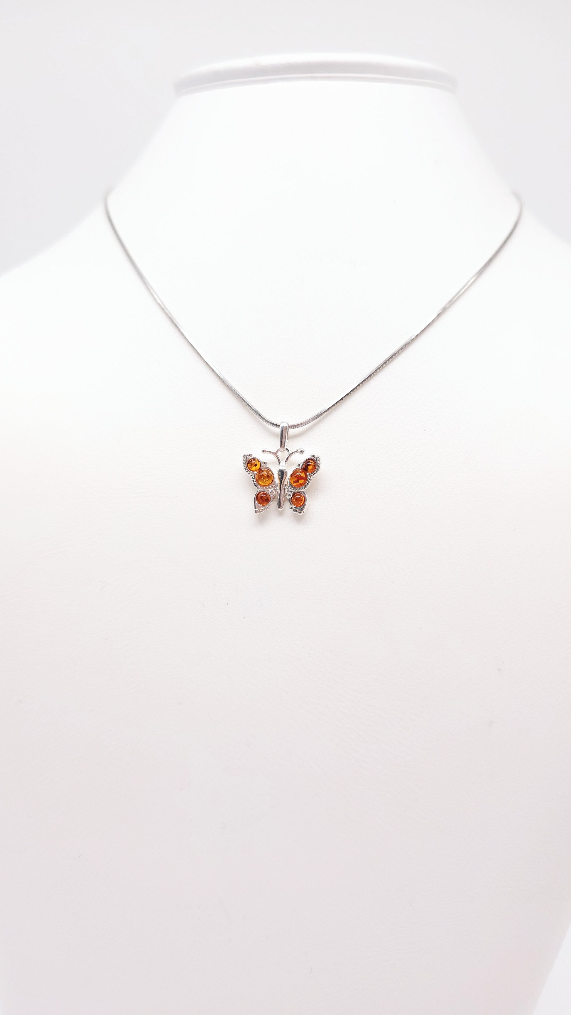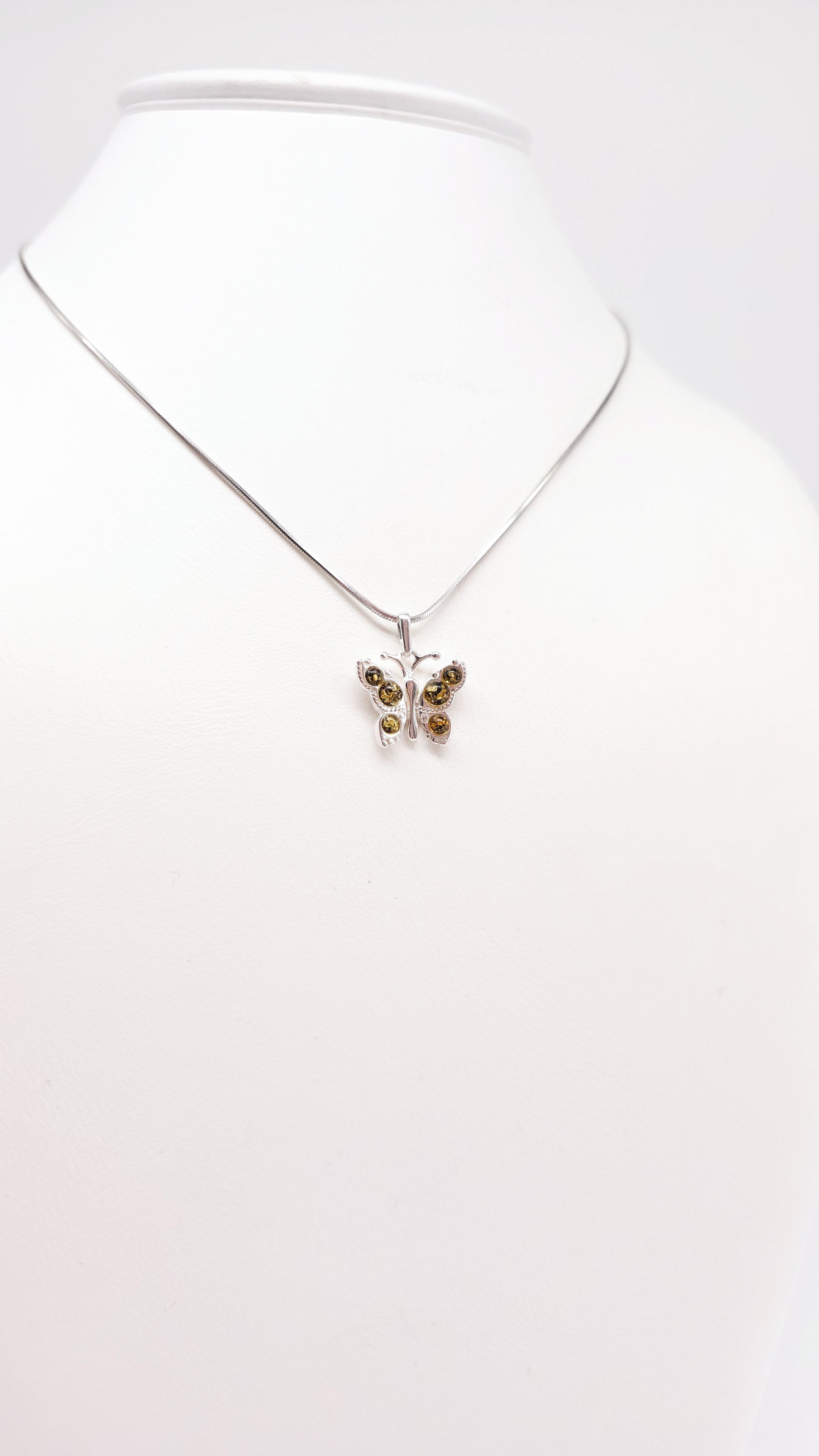 This delicate butterfly pendant, crafted from genuine amber in three shades and fine 925 silver, brings lightness, color, and joy to any jewelry box. The combination of honey, lemon, and greenish amber gives the pendant a vibrant look and highlights the loving details of the design.