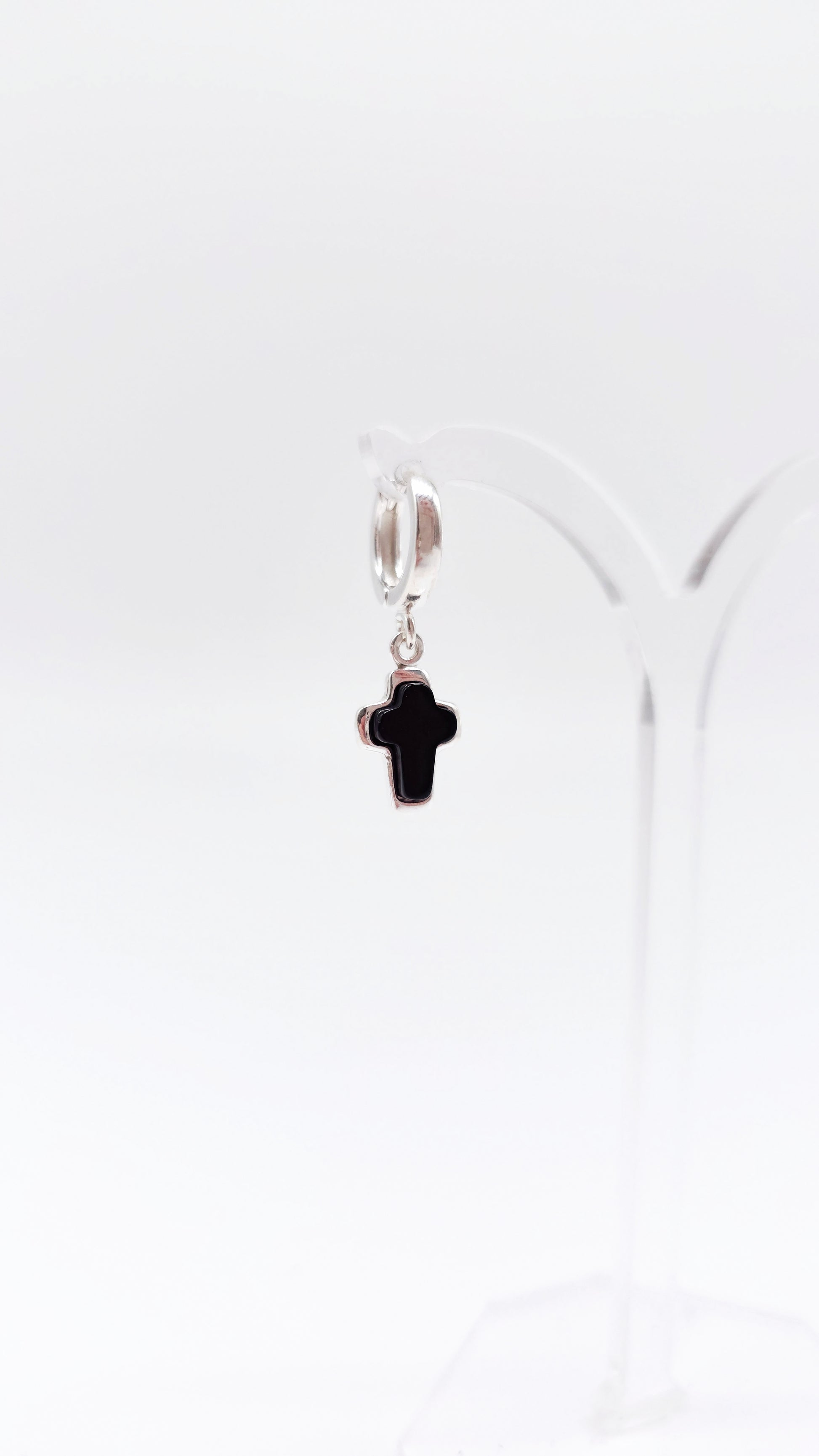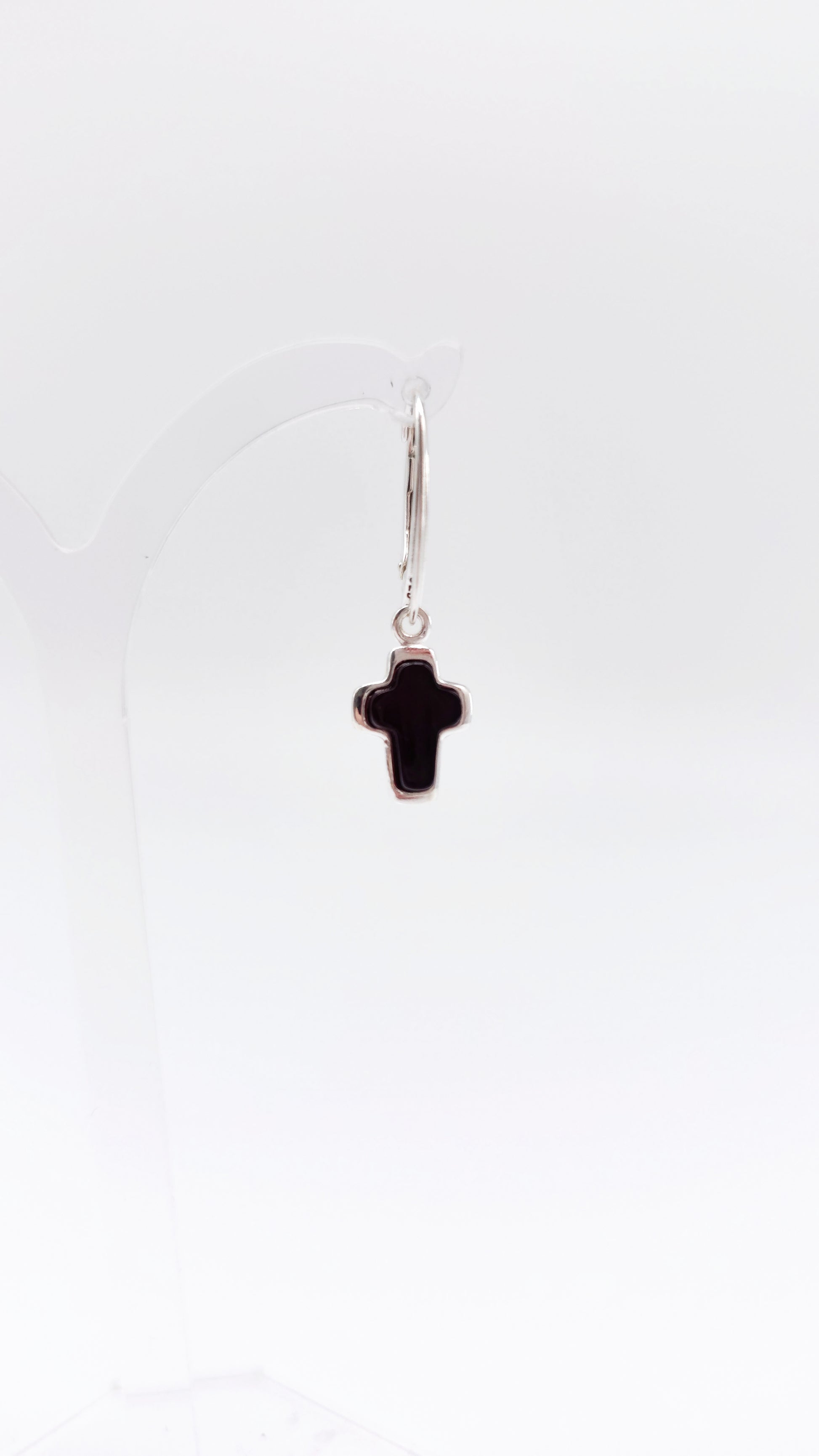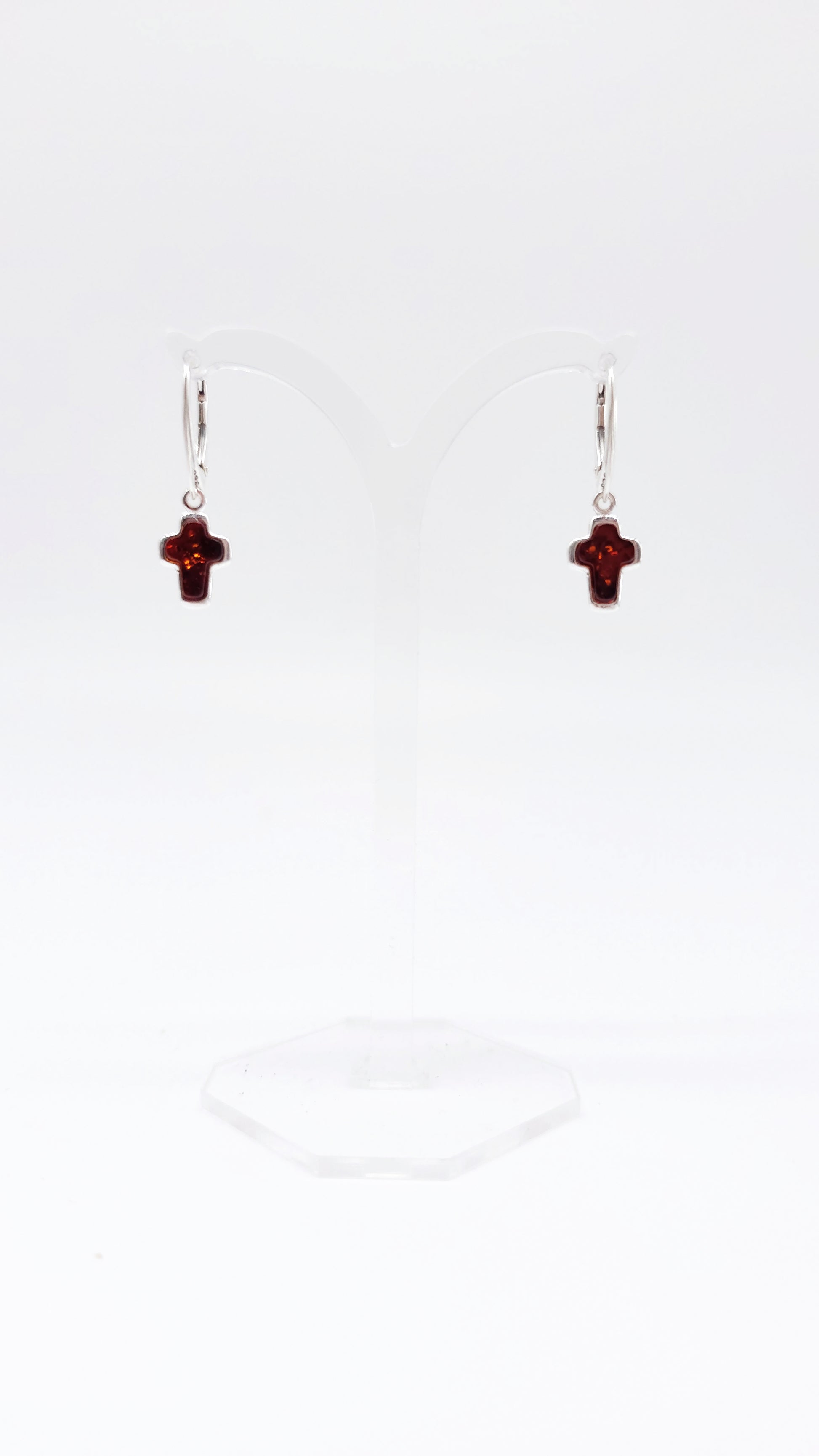 This delicate earring with a cross pendant made of genuine amber and lustrous 925 silver combines simple elegance with spiritual significance. The deep honey-colored amber radiates in a classic cross shape, making this earring a subtle yet expressive accessory.