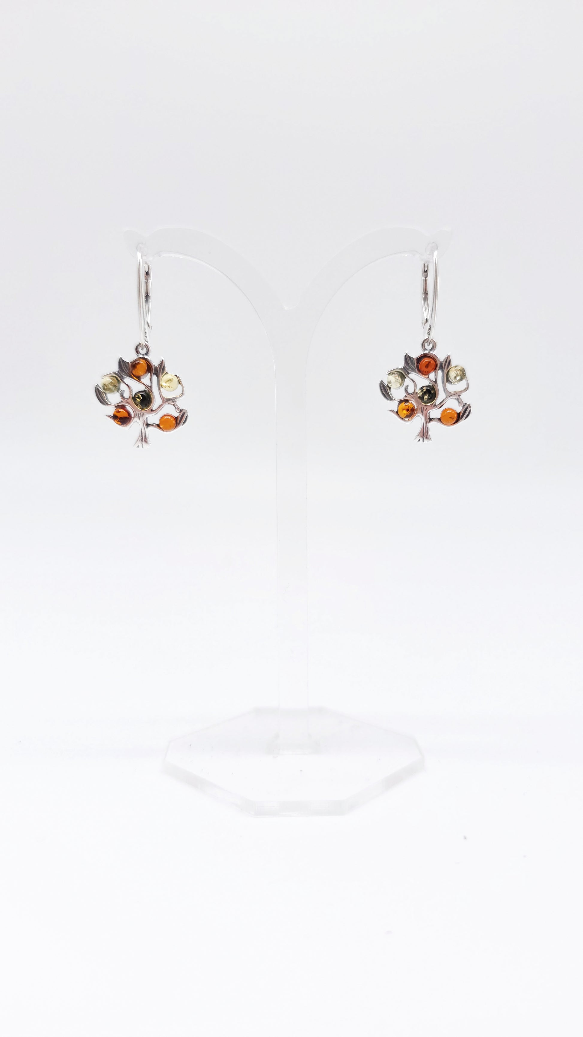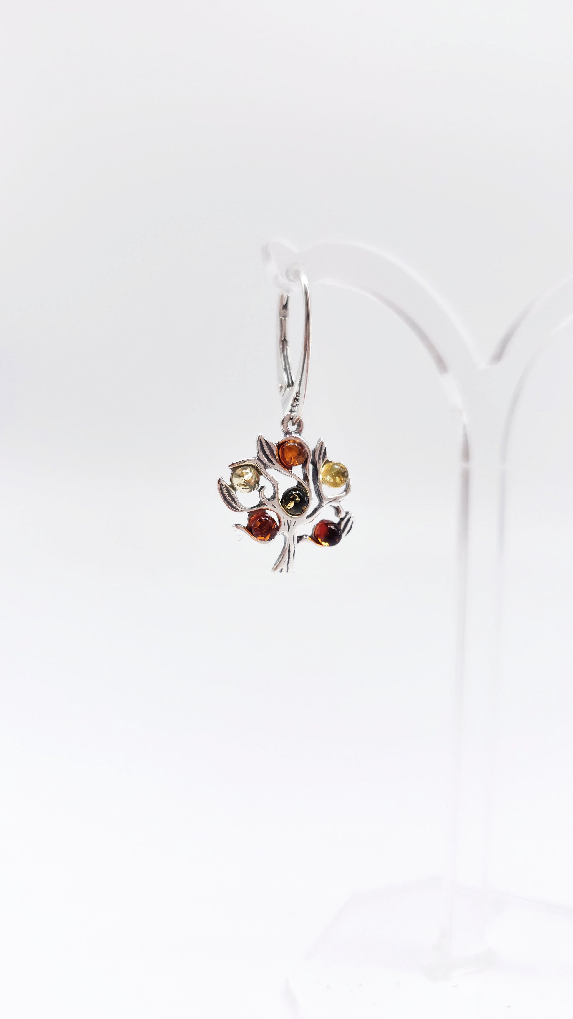 Tree of life earrings with colorful amber made of 925 silver