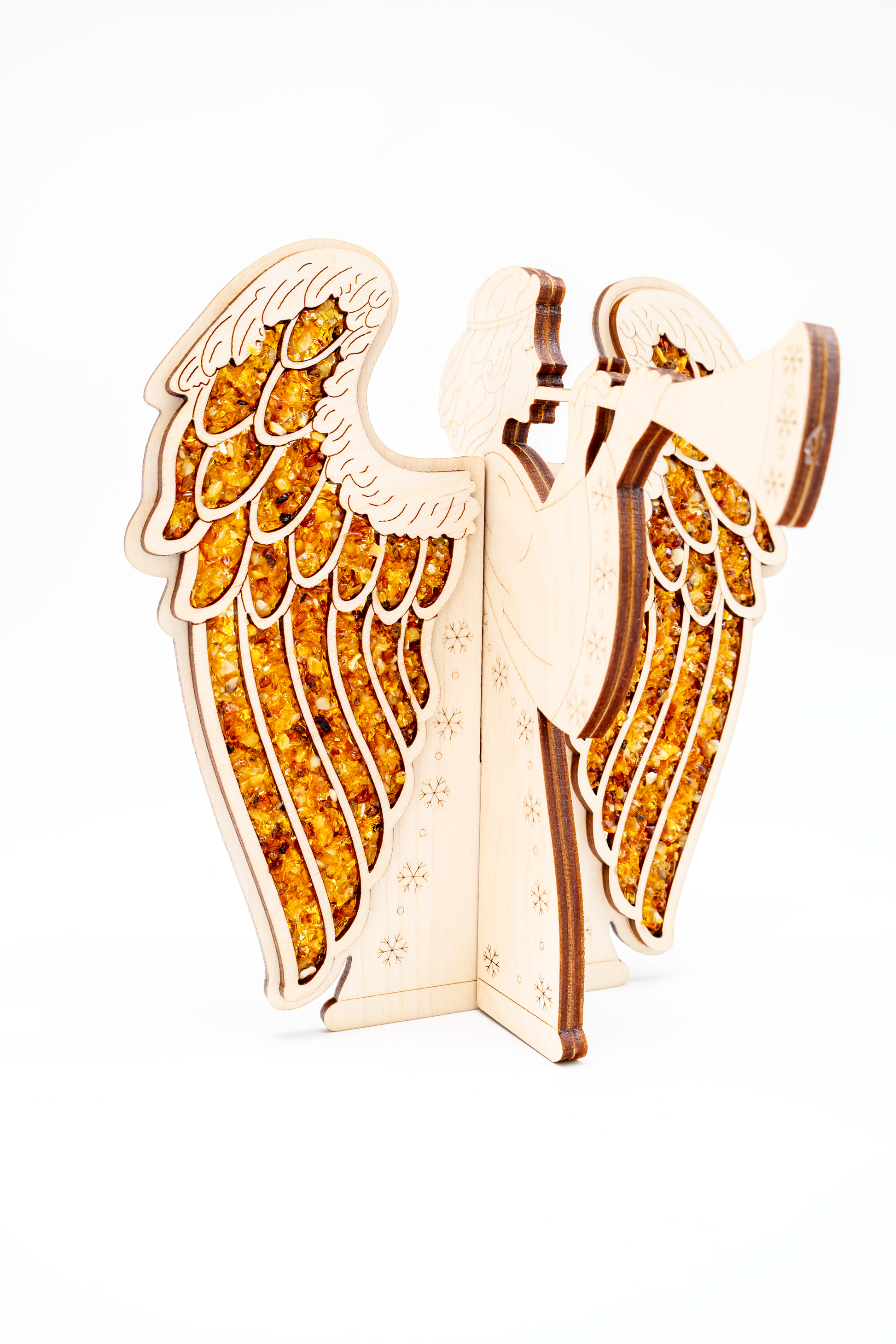 3D-Engel Aufsteller: Holzdeko mit Bernstein-Flügeln