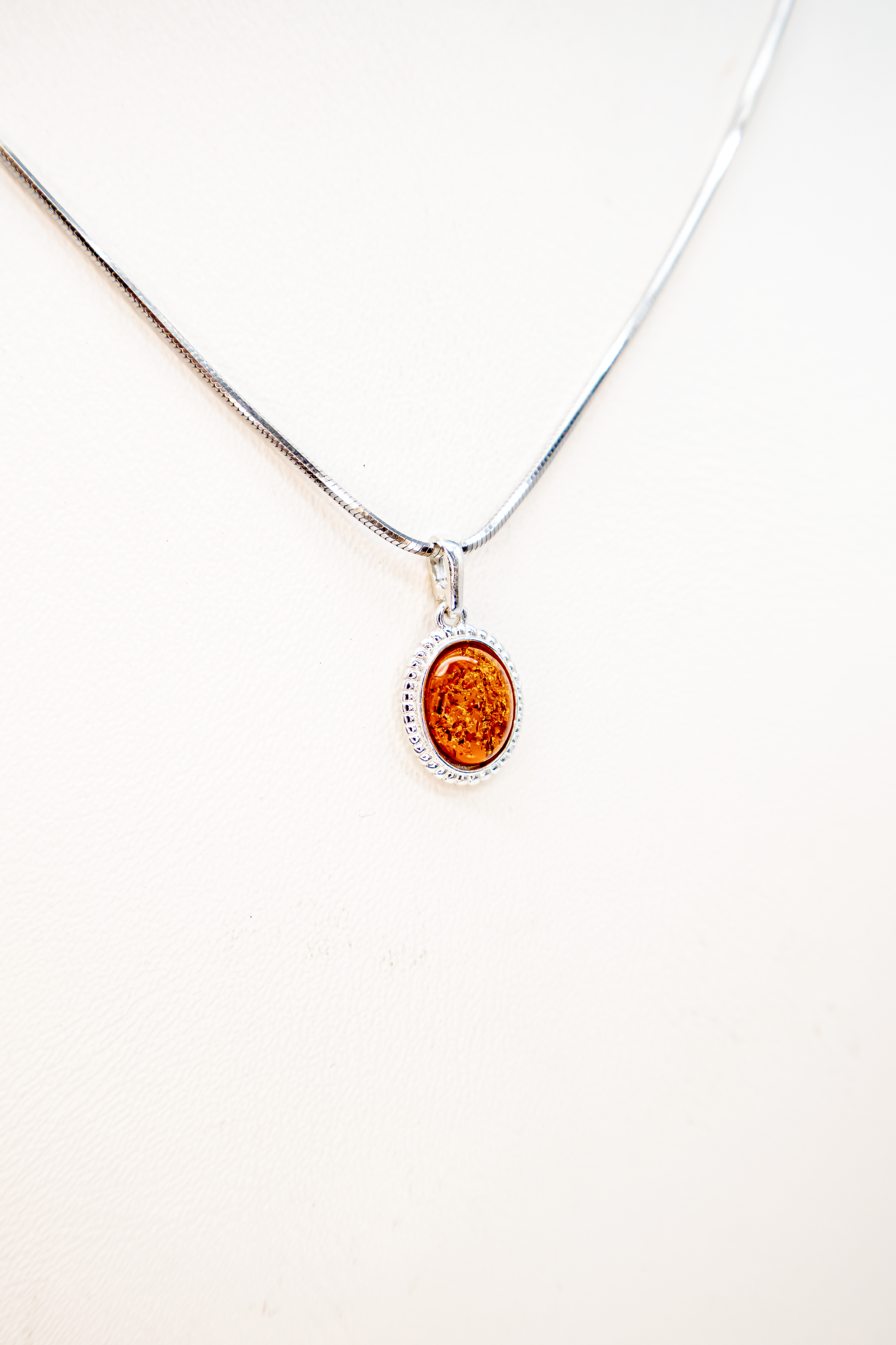 This small yet delicate pendant made of genuine amber in a fine silver setting is a stylish everyday accessory. Measuring approximately 1.8 x 1 cm, it is understated yet elegant. The detailed craftsmanship and natural amber structure create a distinctive charm that appeals to both women and children. The pendant is handcrafted and therefore unique – a valuable piece of jewelry that captivates with its uniqueness. Whether as a gift for special occasions or as a pretty piece of everyday jewelry – this pendant combines timeless elegance with natural beauty.