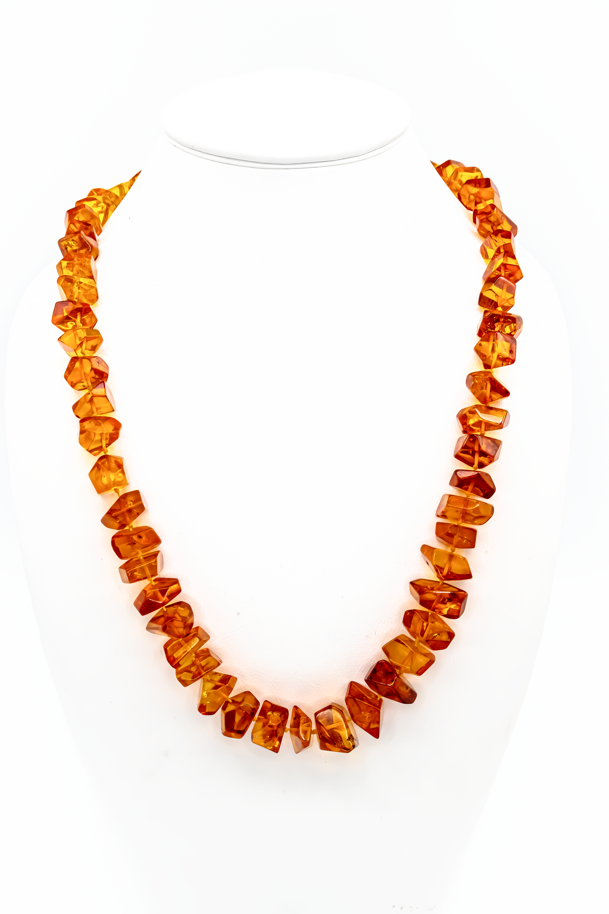 Diese Bernsteinkette ist vielseitig kombinierbar: Sie passt perfekt zu weißen Blusen, Strickpullovern oder schlichten Kleidern und setzt dabei stets ein stilvolles, warmes Highlight.