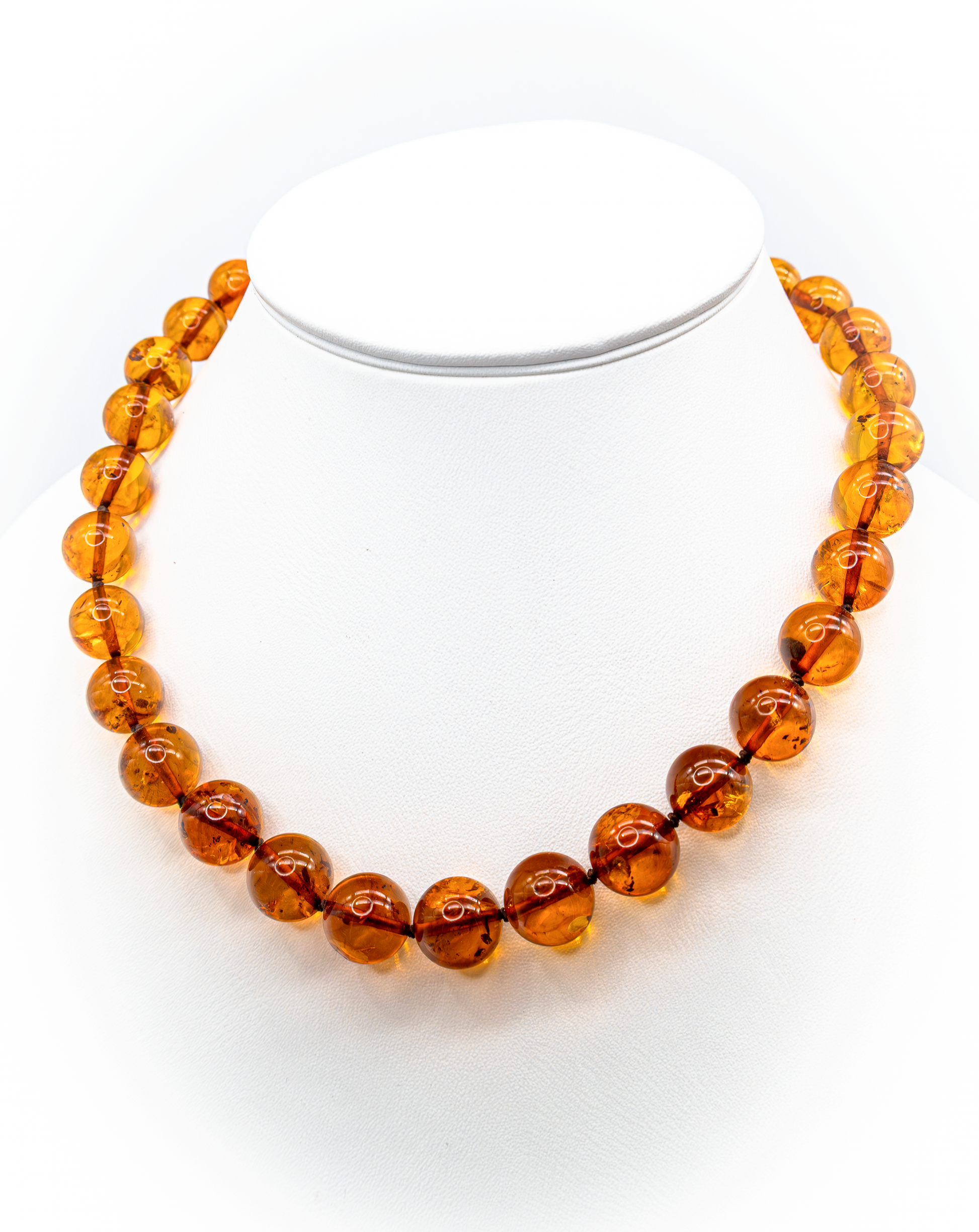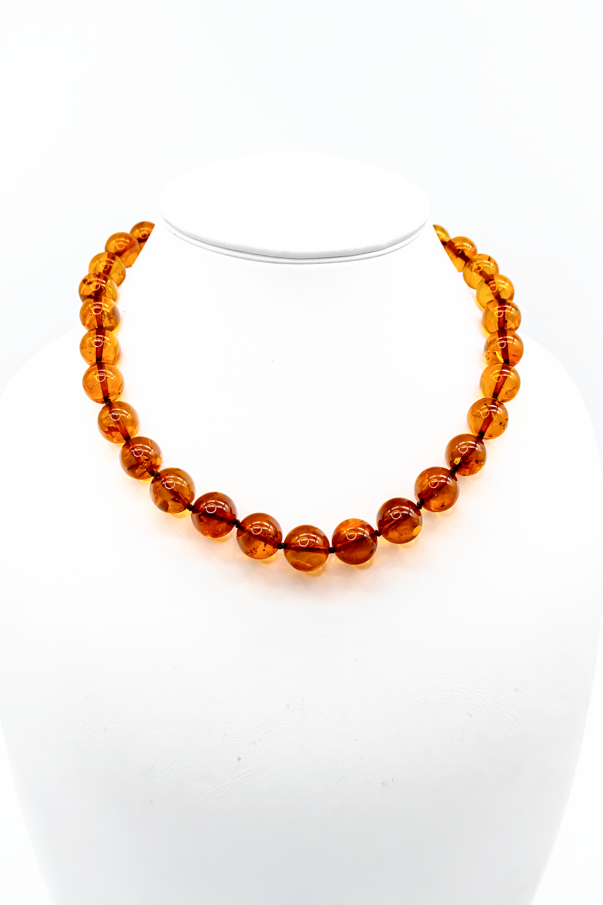 Diese edle Bernstein Halskette ist ein handgefertigtes Unikat – elegant, warm und zeitlos. Die perfekt polierten, runden Bernsteinperlen schimmern in einem tiefen Honigton, der das Licht wunderschön einfängt und für ein natürliches, lebendiges Funkeln sorgt.