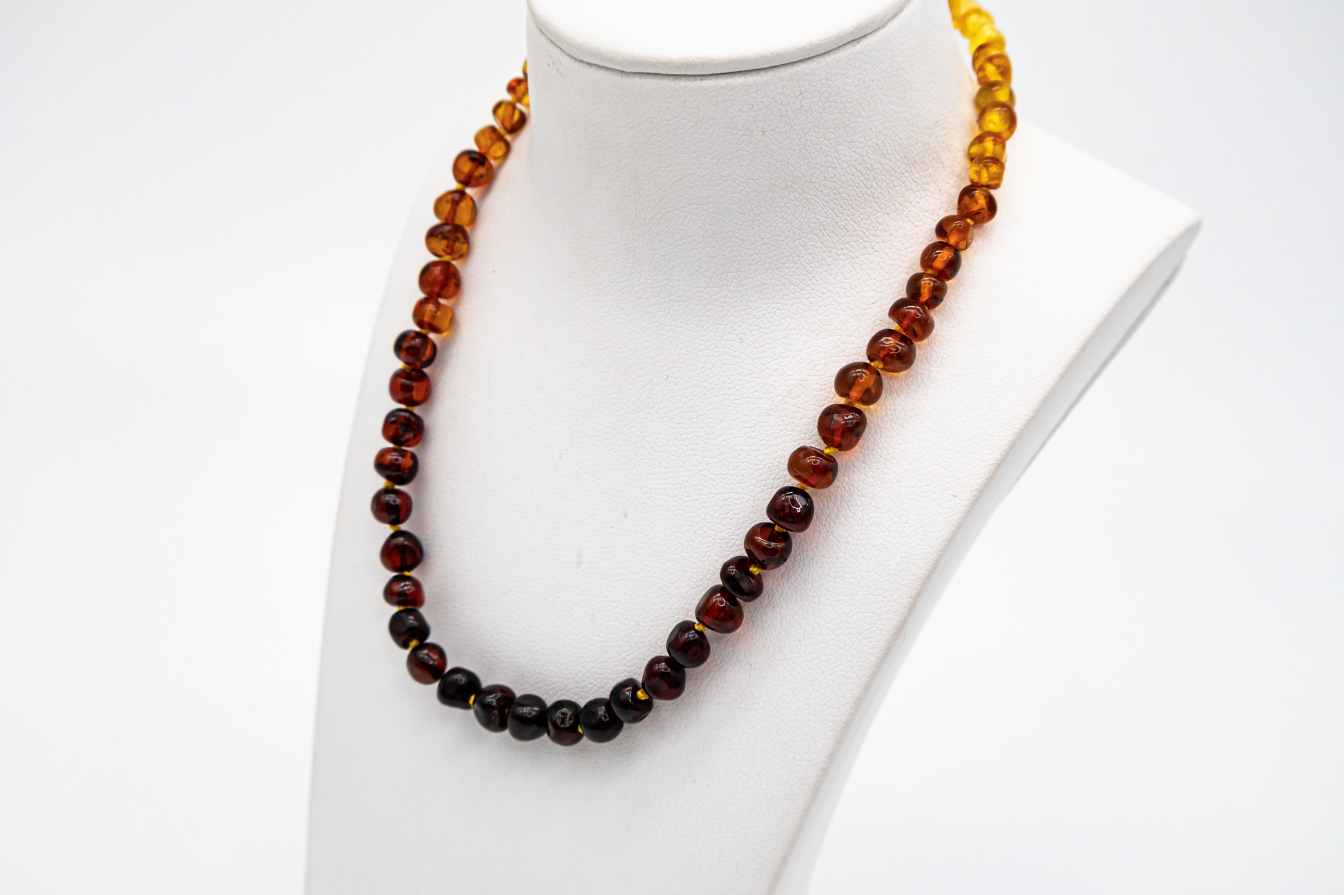For centuries, parents have valued amber for its soothing properties. It is traditionally associated with calming effects and is said to help babies and toddlers with teething. Furthermore, amber is very light, comfortable to wear, and kind to skin. This necklace combines natural beauty, comfort, and symbolic meaning – a special piece of jewelry for children and an ideal gift for a birth, baptism, or birthday.