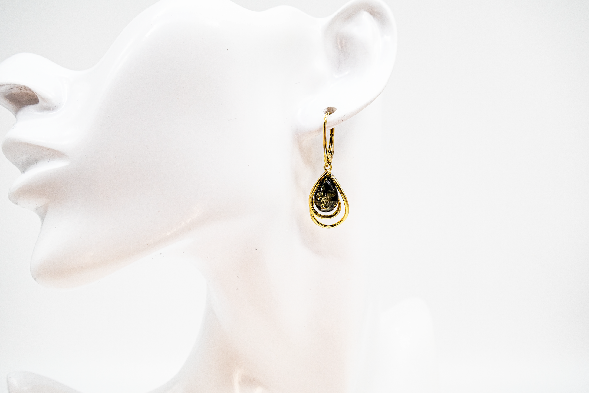 These elegant , drop-shaped amber earrings combine natural beauty and exquisite craftsmanship. The warm, golden-brown genuine amber shimmers with its natural texture and is framed by a sophisticated setting made of 24-carat gold-plated 925 sterling silver . Measuring approximately 3.5 cm x 1.2 cm, the earrings are both understated yet striking enough to enhance any outfit. Amber has been valued for centuries as a symbol of protection, warmth, and harmony—a piece of jewelry full of meaning. Whether as a stylish everyday accessory, for special occasions, or as a special gift for a girlfriend, wife, or sister—these earrings are a sophisticated highlight for any jewelry collection.