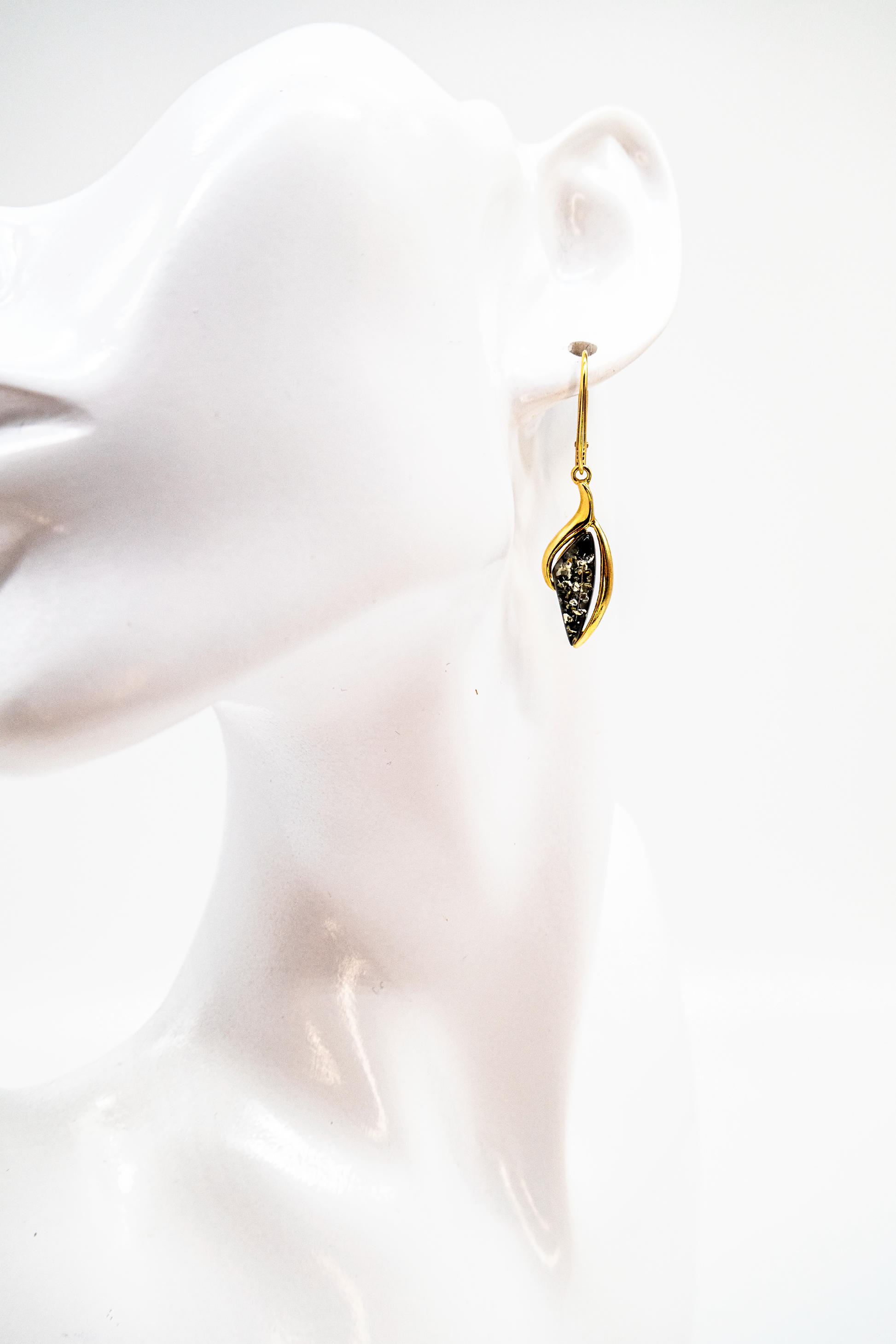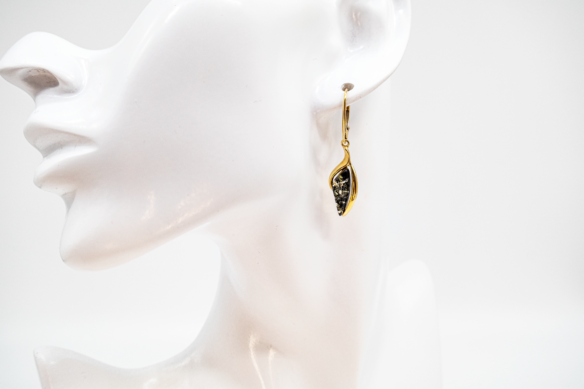 These elegant amber earrings with a green stone combine natural beauty with fine craftsmanship. The unique , genuine amber in its deep green hue gives the earrings a mysterious sheen, making each piece unique. Set in high-quality, gold-plated 24-carat 925 sterling silver , the result is an exclusive piece of jewelry with a refined character. Measuring approximately 4 cm x 1 cm, the earrings are a stylish eye-catcher—lightweight to wear yet striking. Amber has been valued for centuries as a symbol of protection and harmony, making these earrings particularly meaningful. Whether for everyday wear, business, or special occasions—these earrings are the perfect choice and a sophisticated gift for a girlfriend, wife, or sister.