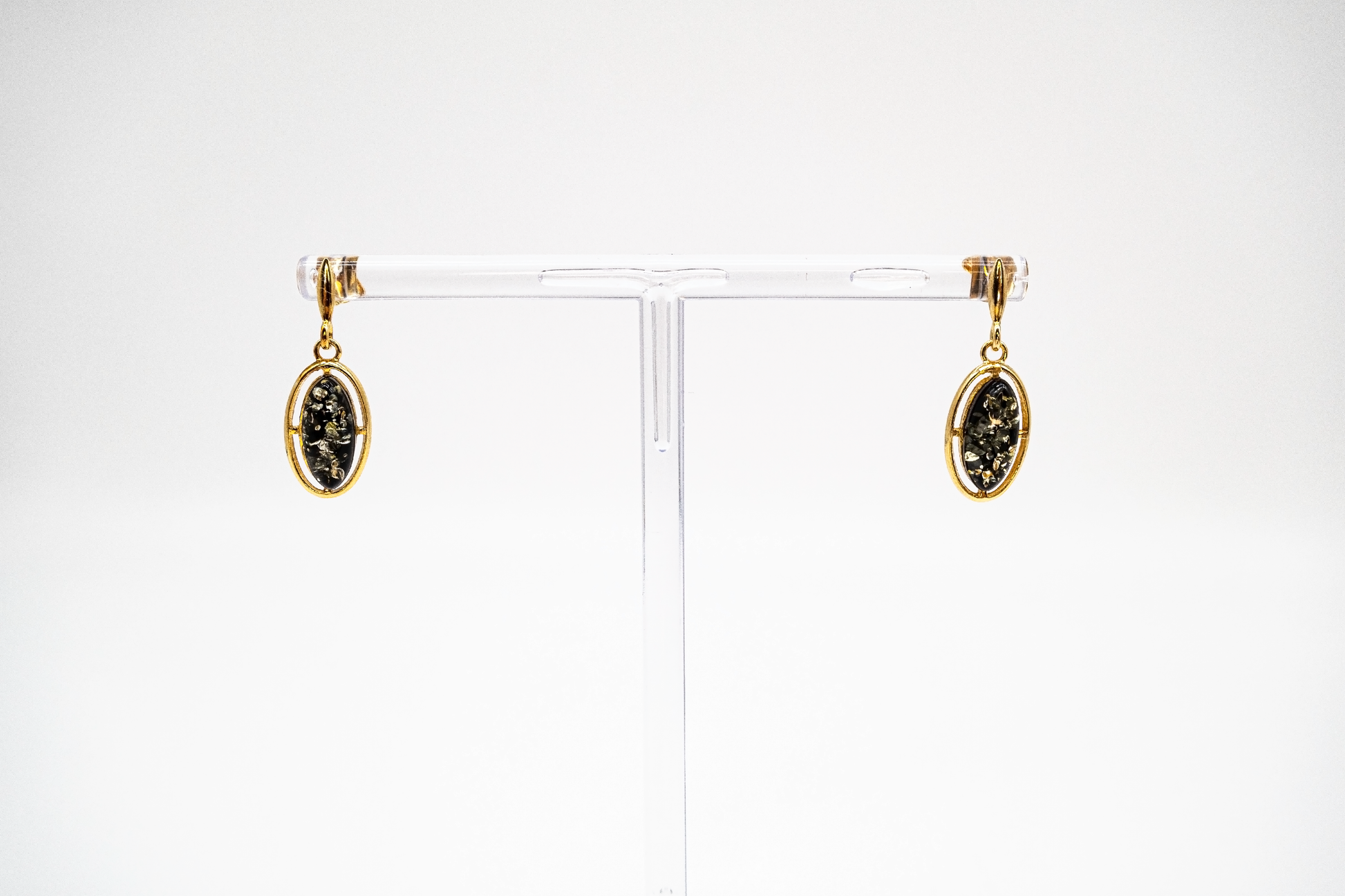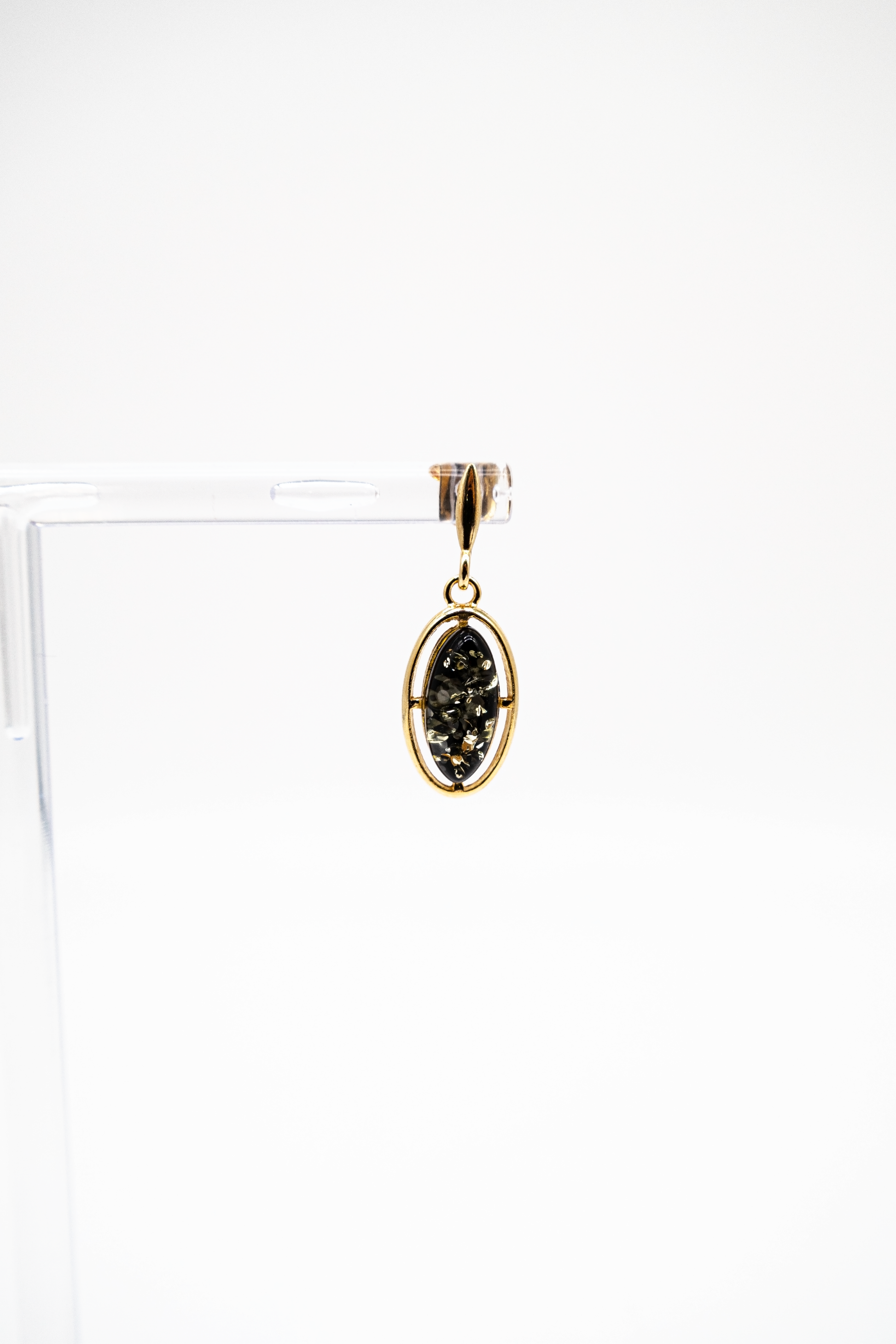 These exceptional amber earrings crafted from gold-plated 925 sterling silver combine elegance and modern sophistication. The dark-hued amber, set in a delicate, oval design, exudes a mysterious depth, making each pair unique. Measuring approximately 2.6 cm x 0.9 cm, the earrings offer an elegant length that's perfect for everyday wear and special occasions. The warm gold tone harmonizes perfectly with the dark luster of the amber, lending the piece a sophisticated touch. They're ideal as a stylish gift for women who appreciate individual, high-quality jewelry—whether for a birthday, anniversary, or as a special treat for a loved one.
