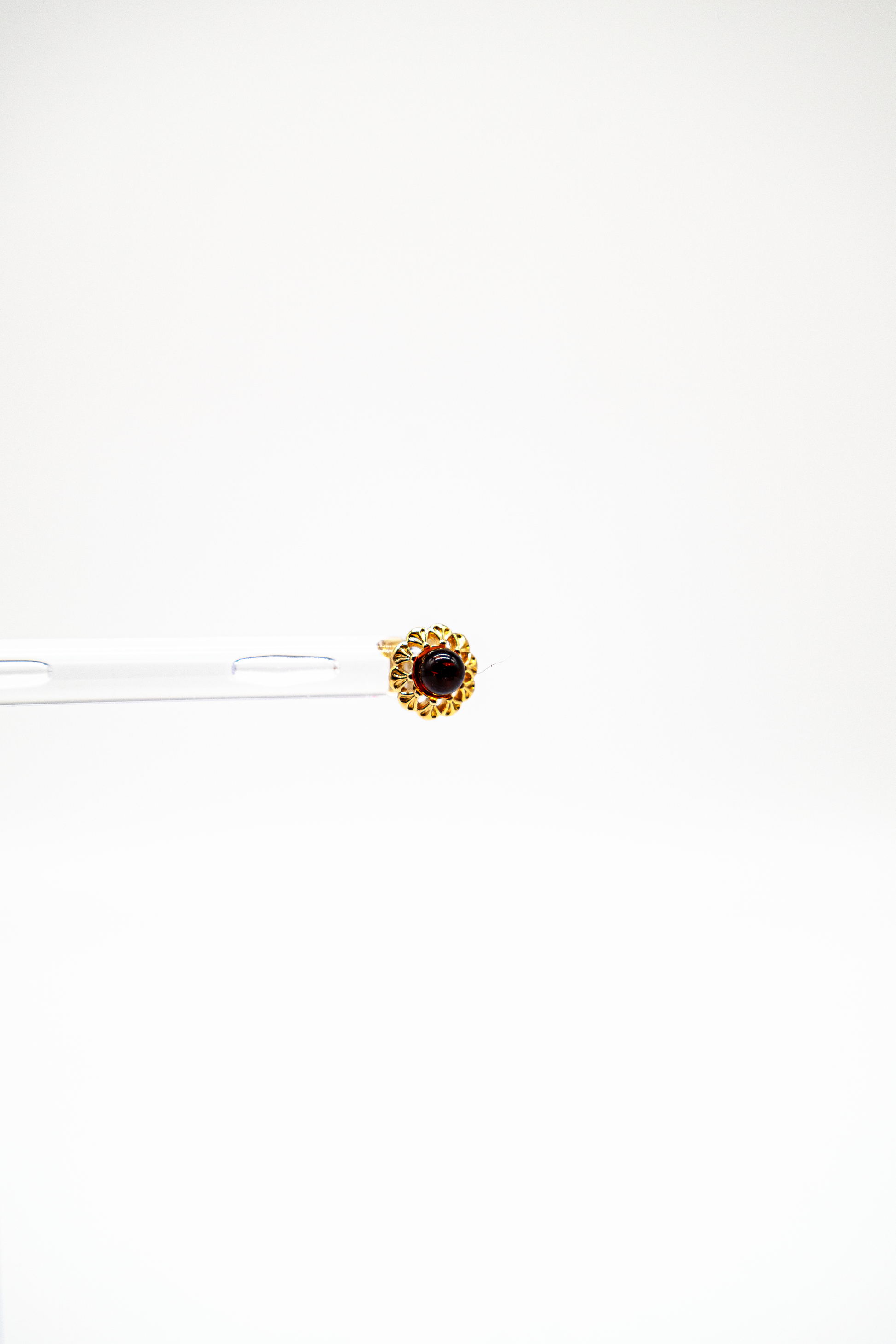 Round amber stud earrings with a filigree, gold-plated frame – stylish & timeless