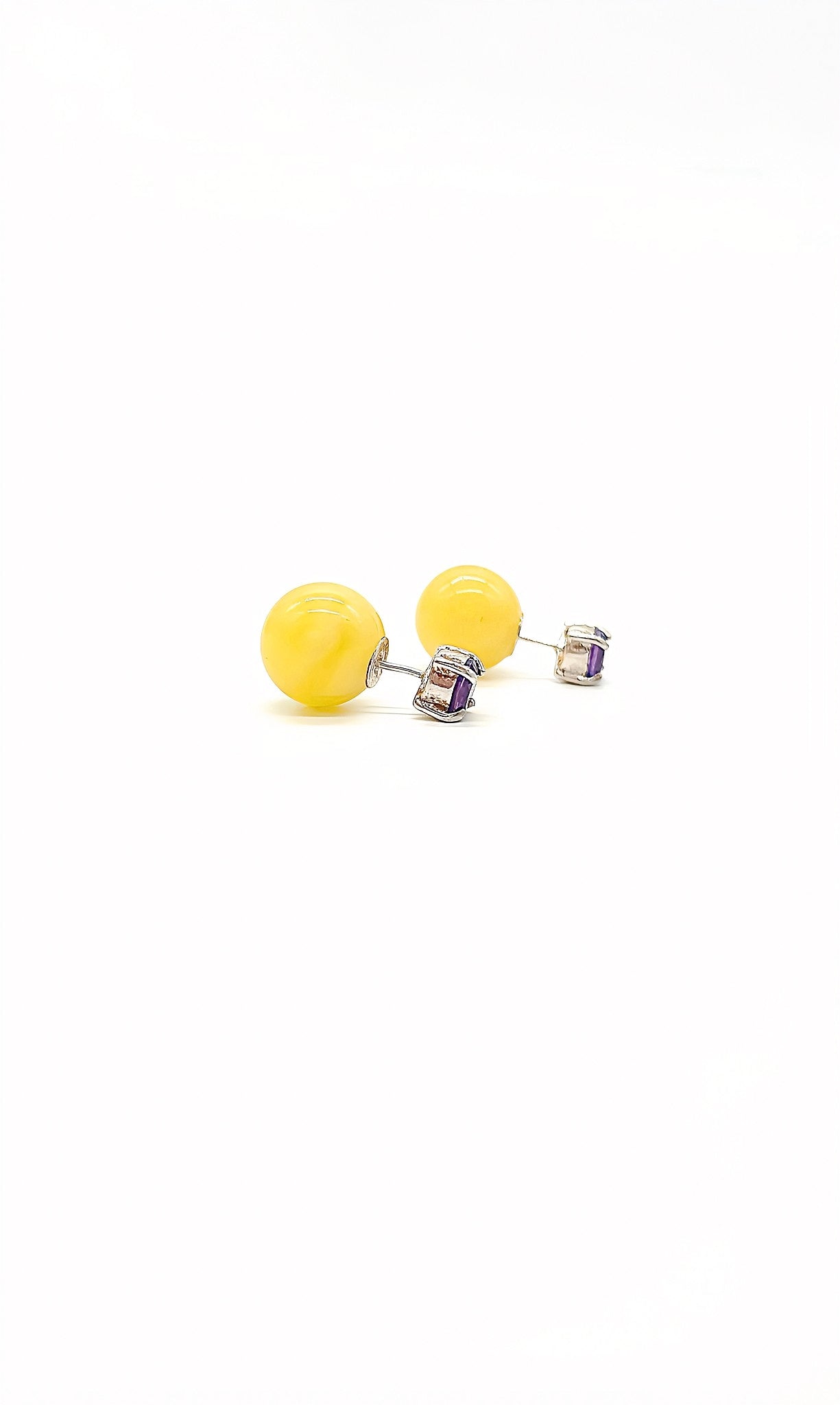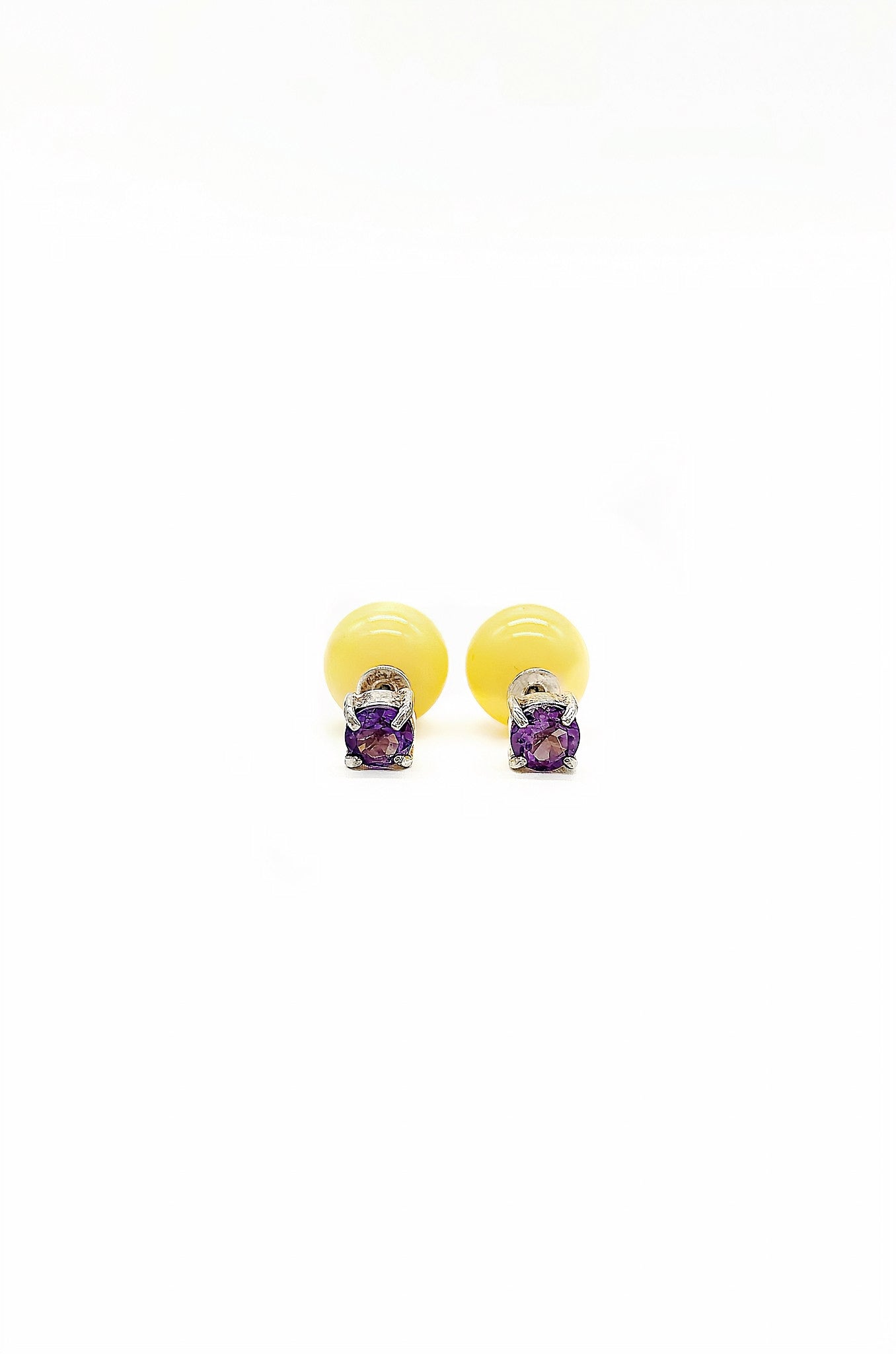 These exquisite stud earrings combine the vibrant energy of amber with the tranquil clarity of amethyst. The vibrant yellow of amber forms a sunny base, while the amethyst, with its characteristic purple, adds a touch of regal elegance. Each pair is carefully curated to enhance the natural beauty and contrasting color palette. These stud earrings are ideal for everyday wear or to add a subtle pop of color to special occasions. The combination of amber and amethyst is prized not only for its beauty but also for its calming effect, which has been highly valued since ancient times. A timeless accessory that combines simplicity and grace.* Please note that