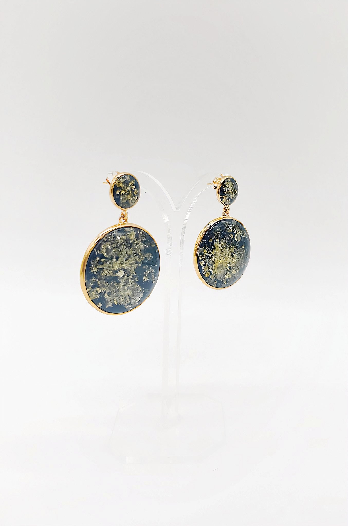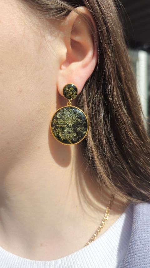 These stylish earrings combine precious 925 sterling silver with the captivating beauty of green amber. The round amber elements radiate a unique shade of green that adds a special touch to any outfit. Perfect for special occasions or to enhance your everyday look, these earrings are a must-have for anyone who appreciates timeless style and elegance. Be captivated by the natural beauty and luxurious design of these earrings.
