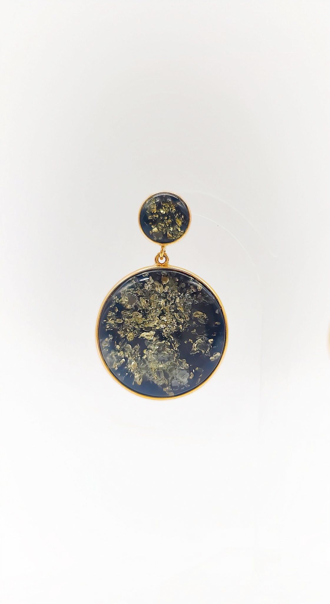 Round earrings made of gold-plated 925 sterling silver with green amber