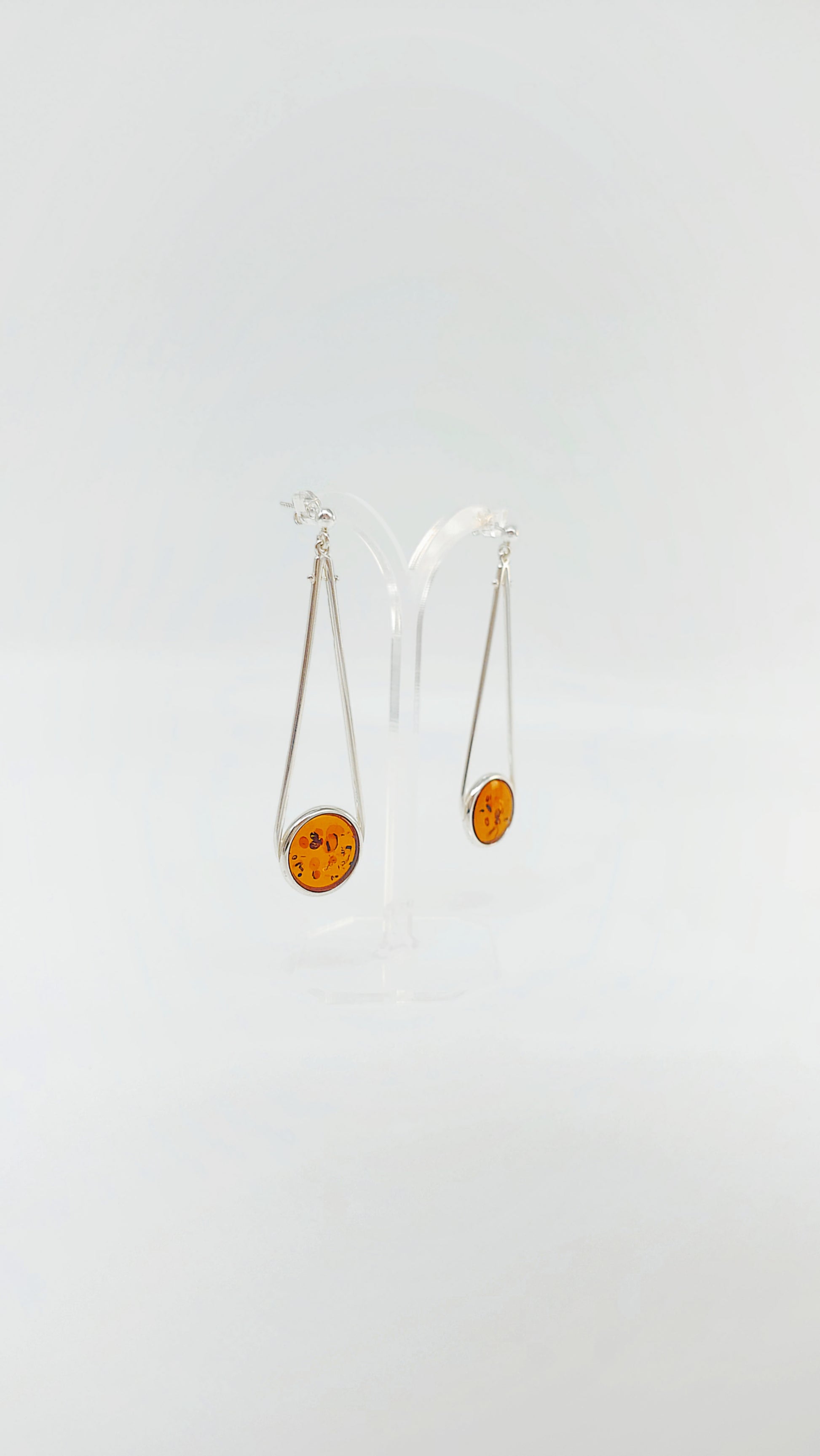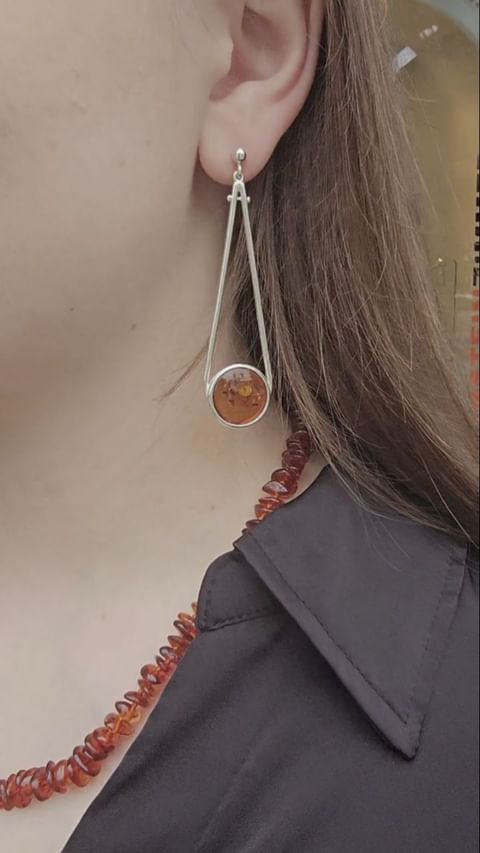 These elegant dangle earrings combine the warm glow of yellow amber with the modern aesthetic of silver. The round, brilliant yellow amber is framed in a sleek, minimalist setting that highlights its natural beauty. These earrings are lightweight and comfortable to wear, perfect for both everyday wear and special occasions. A timeless accessory for any jewelry collection.