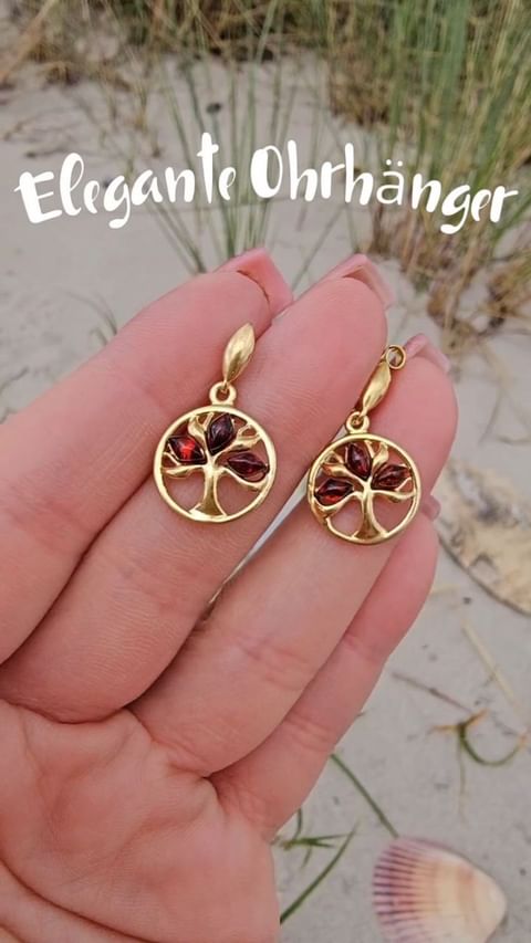 Our elegant gold-plated amber earrings pay homage to the "Tree of Life." Each earring is carefully crafted and features a delicate tree with leaves made of sparkling amber. The high-quality gold-plated 925 sterling silver lends these earrings a timeless elegance, making them an ideal accessory for any occasion.
