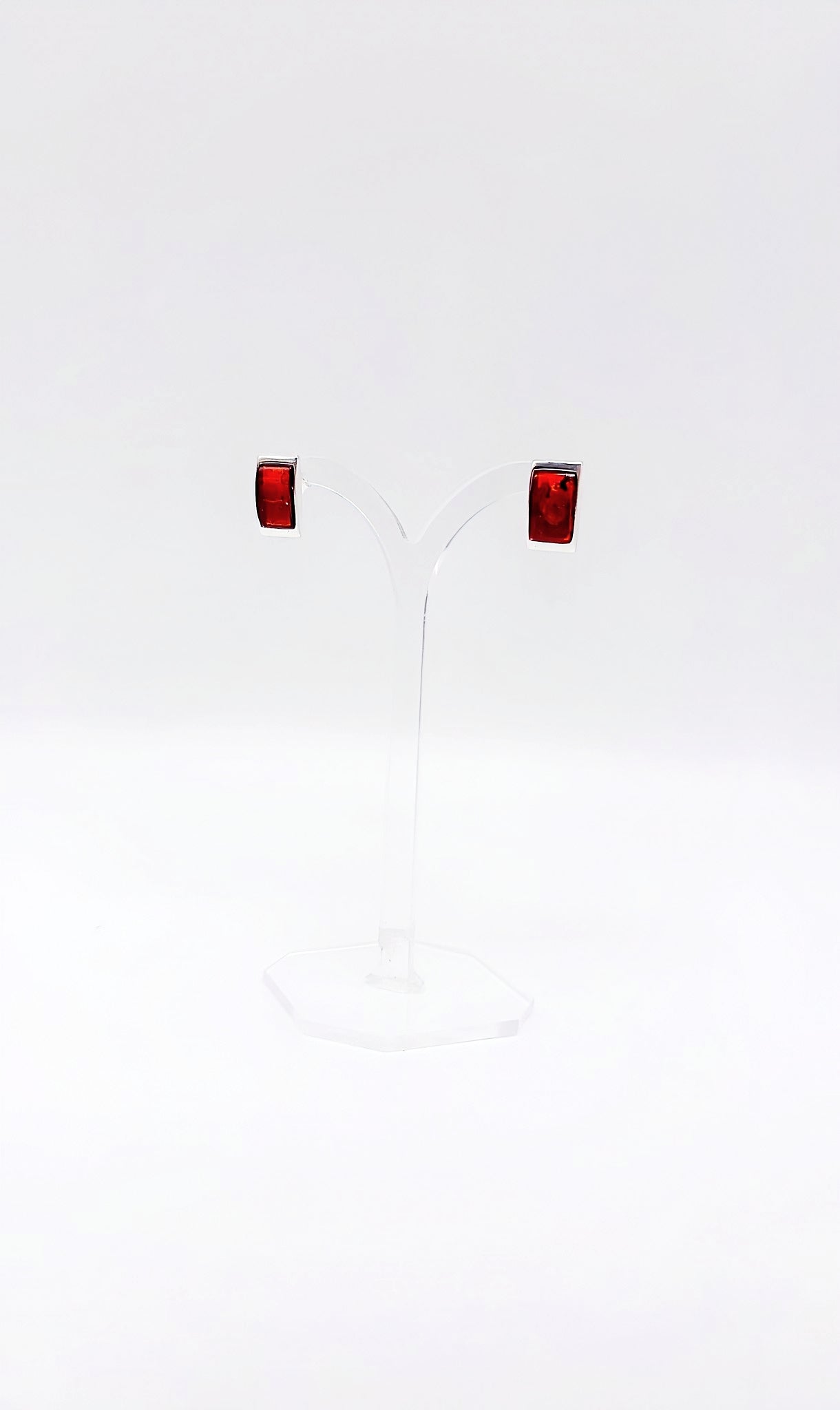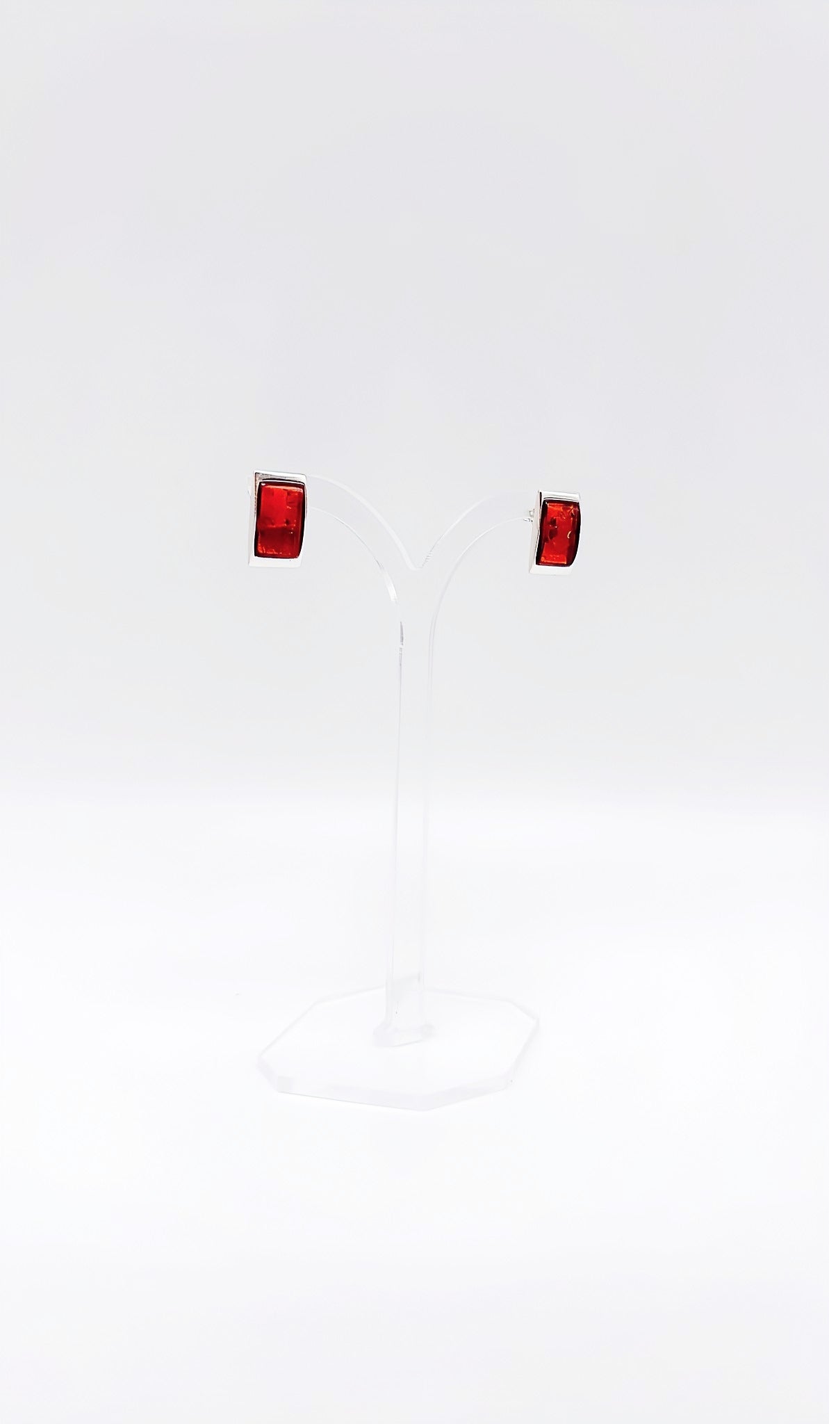 These exquisite earrings are the perfect interplay of modern design and classic elegance. The rectangular amber stones in a deep red hue are set in 925 sterling silver and radiate a warm, captivating luminosity. The earrings are lightweight and comfortable to wear, ideal for everyday wear or special occasions. Each stone is unique, making each pair a distinctive piece of jewelry.
