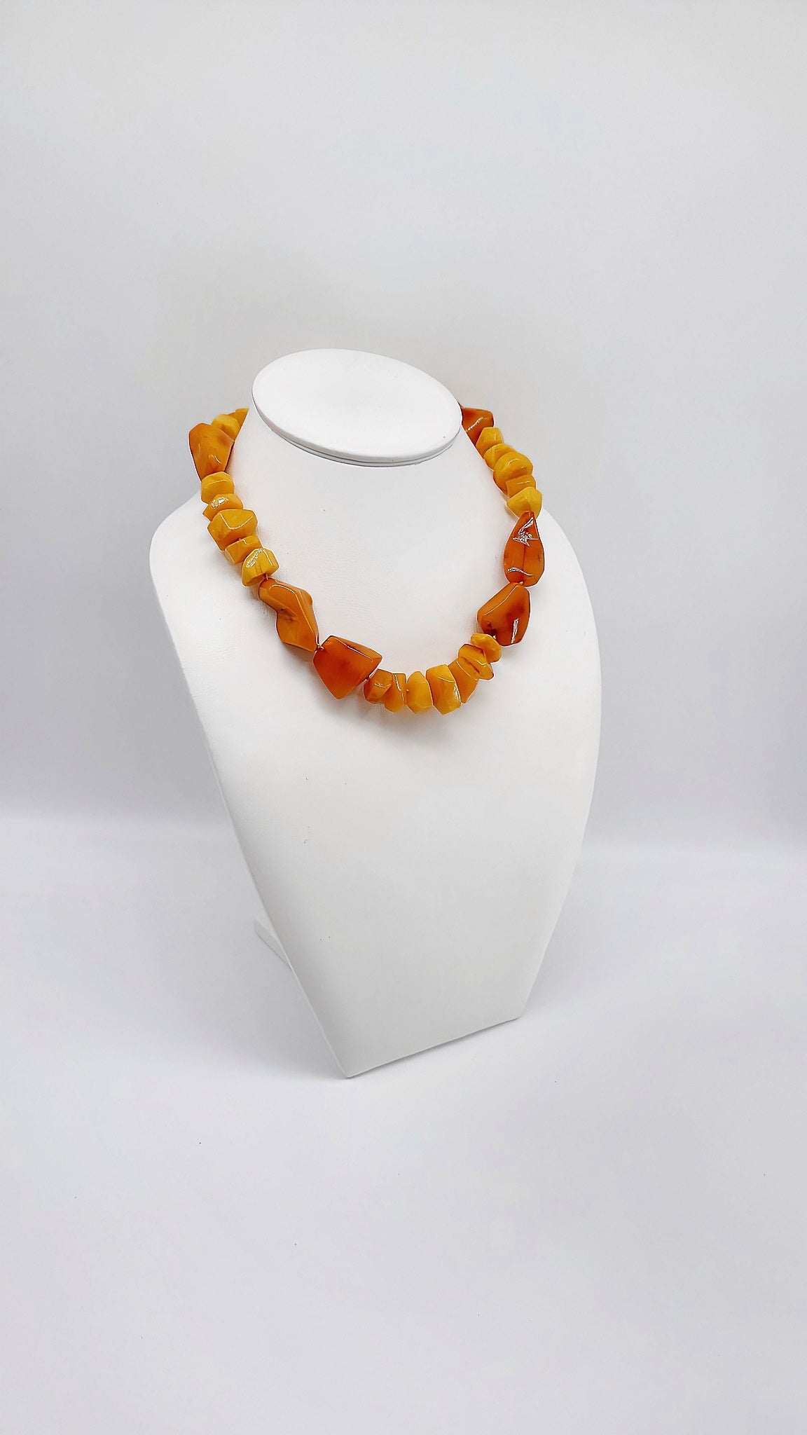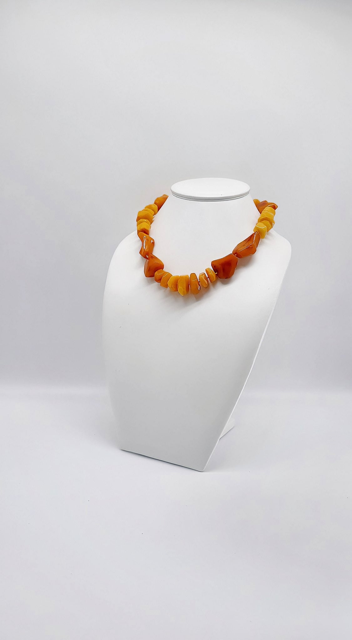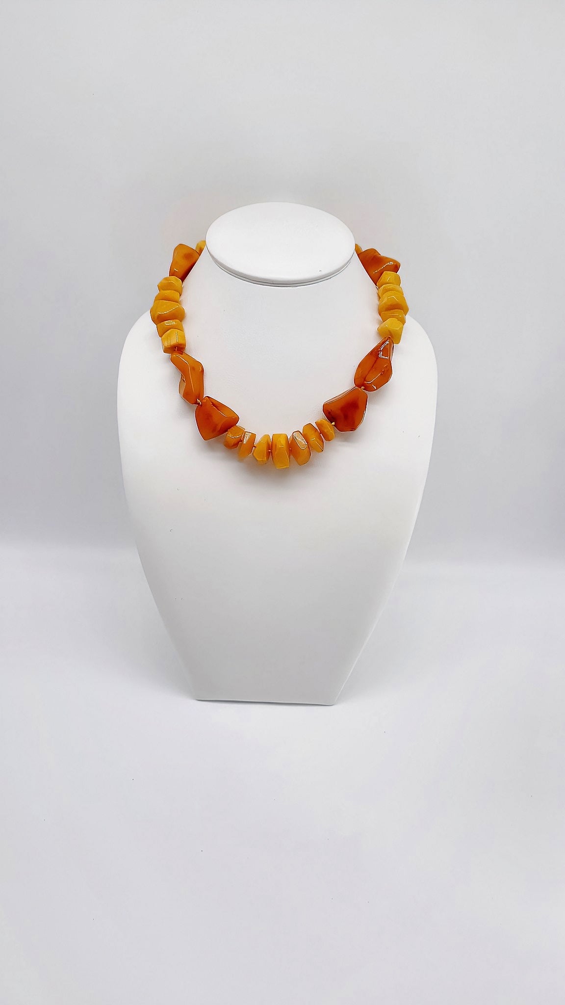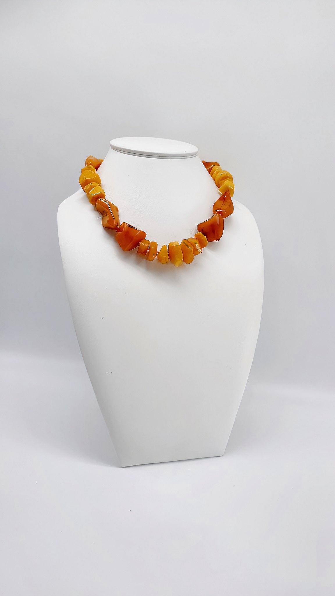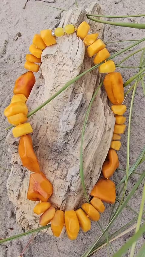 This special amber necklace captivates with its radiant, golden-yellow hues. Each amber bead is unique and gives the necklace a natural and warm glow. Handcrafted and natural, this piece of jewelry brings the beauty and energy of the sun into your life. Ideal for nature lovers and anyone seeking an exclusive accessory that combines elegance and naturalness. Perfect for everyday wear or special occasions, it adds a sunny touch to any outfit.