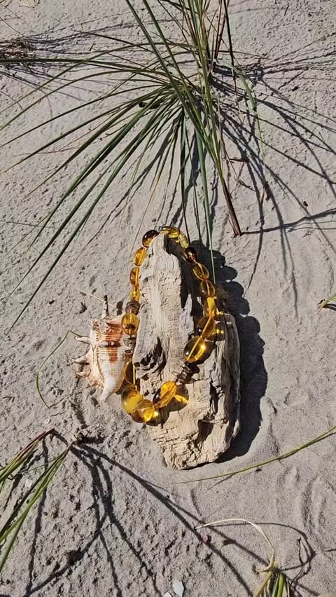 This handmade amber necklace is a true highlight for jewelry lovers. The clear, golden-yellow amber beads exude a warm, natural elegance and make any outfit a real eye-catcher. The unique color gradients and the glossy surface of the amber give this necklace its very special charm. Perfect for special occasions or as a stylish everyday accessory. Experience the mesmerizing beauty of this unique piece of jewelry and let yourself be enchanted by the magic of amber.