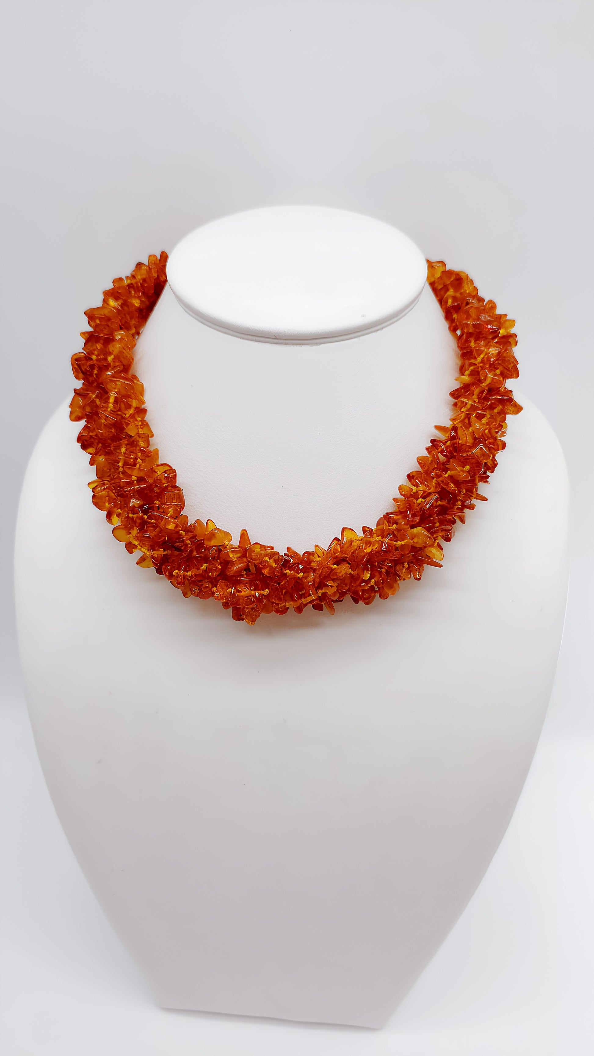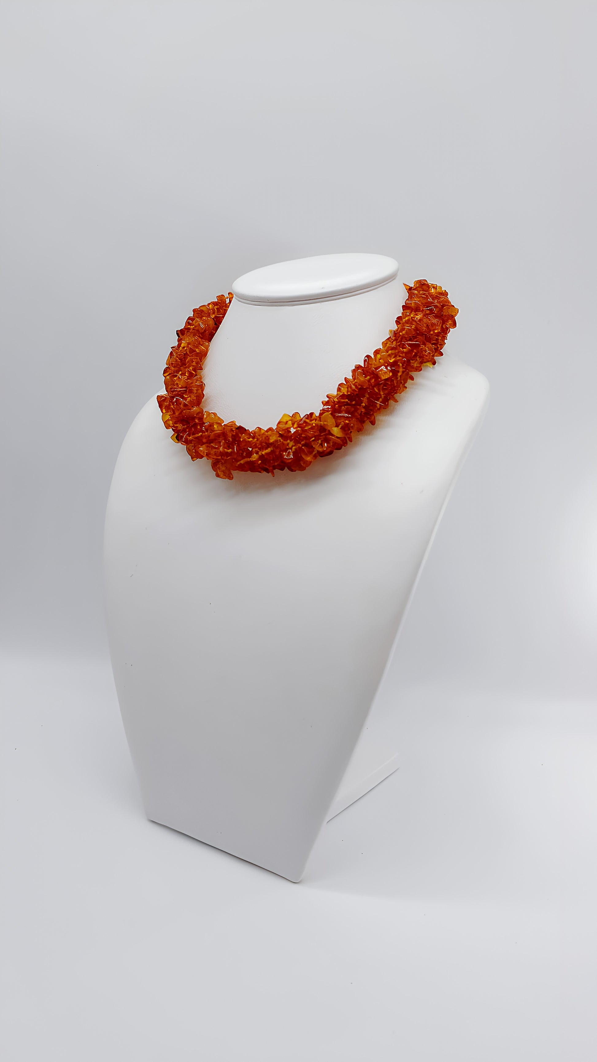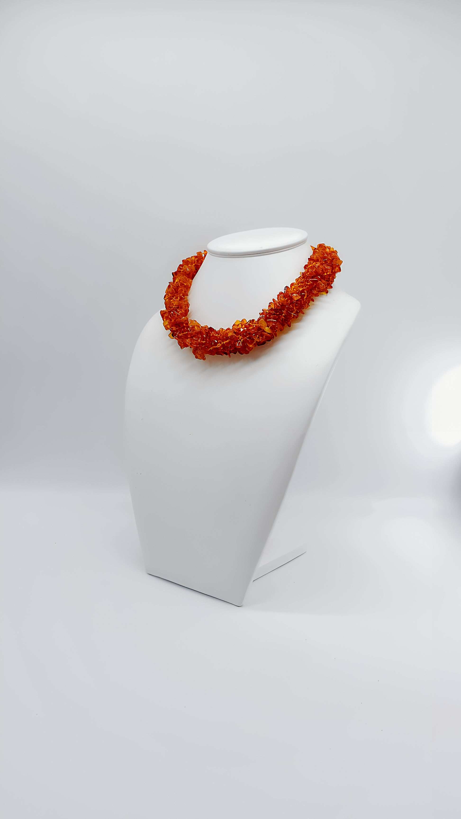 This extraordinary amber necklace captivates with its unique structure and warm color nuances. The artfully crafted amber pieces combine to create a fascinating piece of jewelry that combines elegance with a connection to nature. A real eye-catcher for women who value high-quality, handcrafted jewelry. Ideal as an exclusive gift or stylish accessory for special occasions.