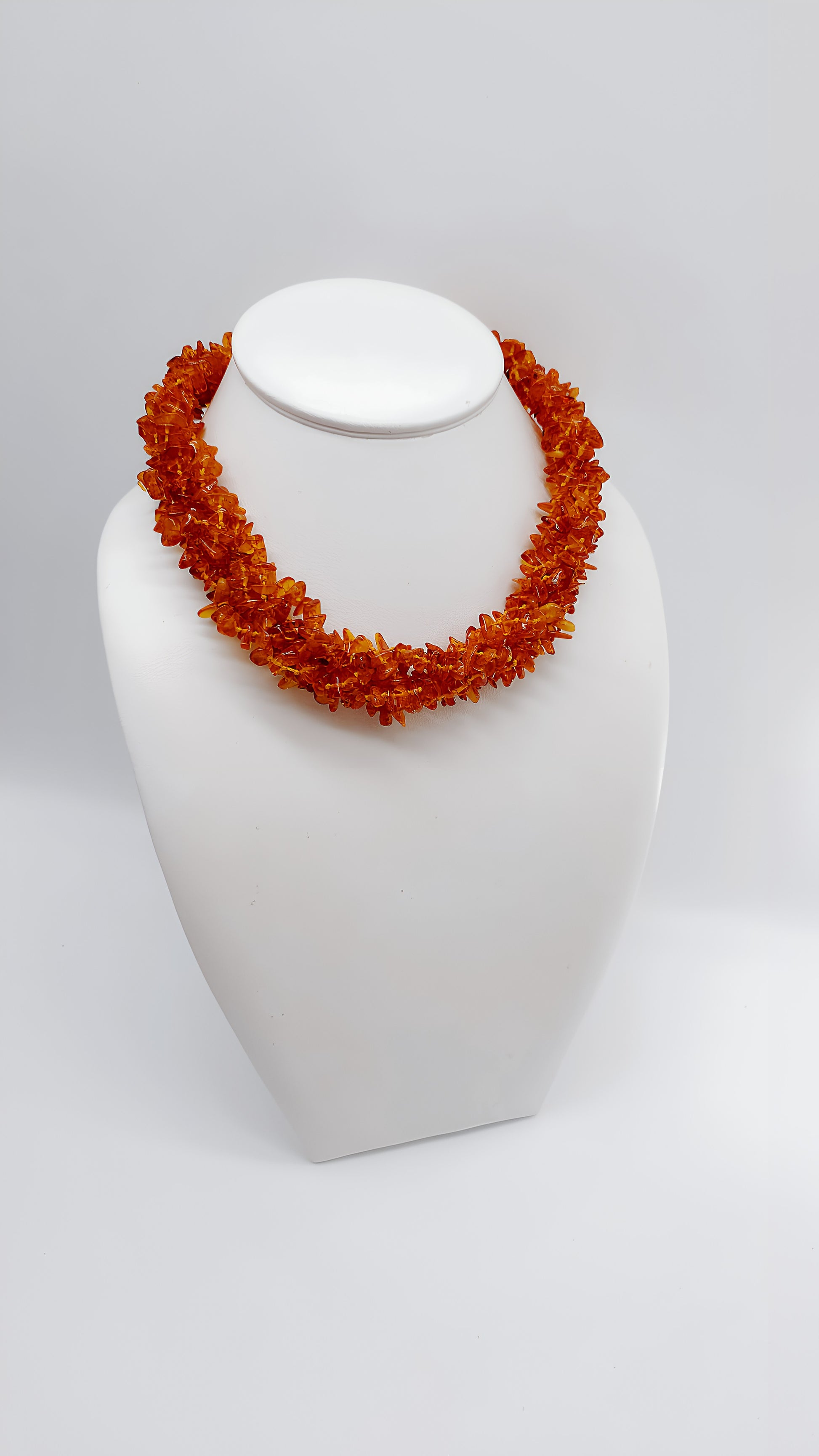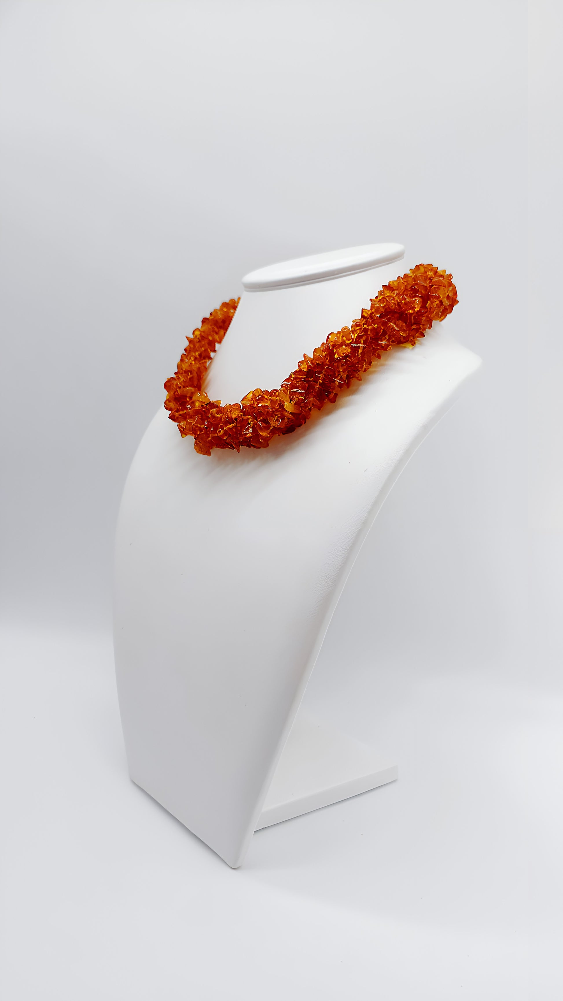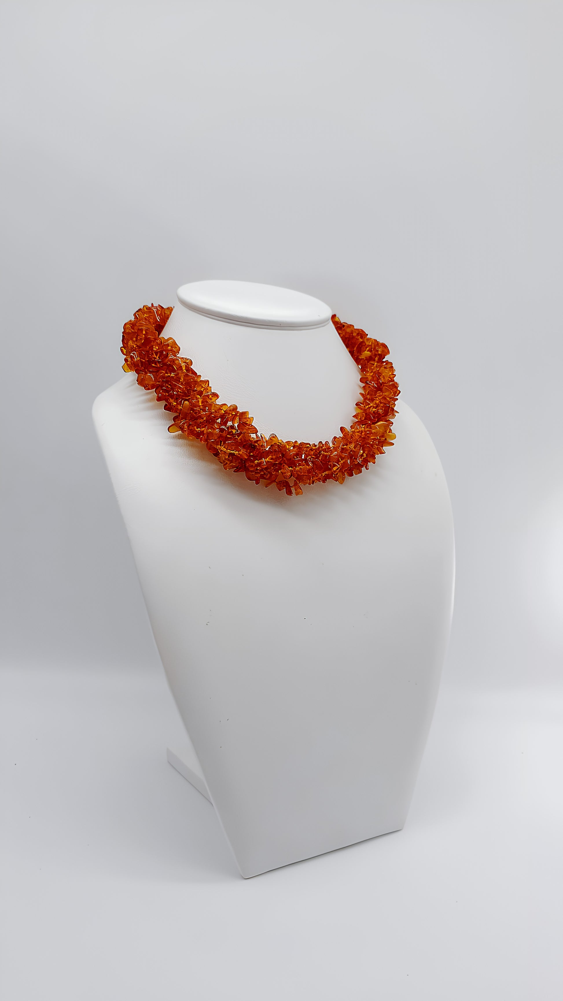 This extraordinary amber necklace captivates with its unique structure and warm color nuances. The artfully crafted amber pieces combine to create a fascinating piece of jewelry that combines elegance with a connection to nature. A real eye-catcher for women who value high-quality, handcrafted jewelry. Ideal as an exclusive gift or stylish accessory for special occasions.