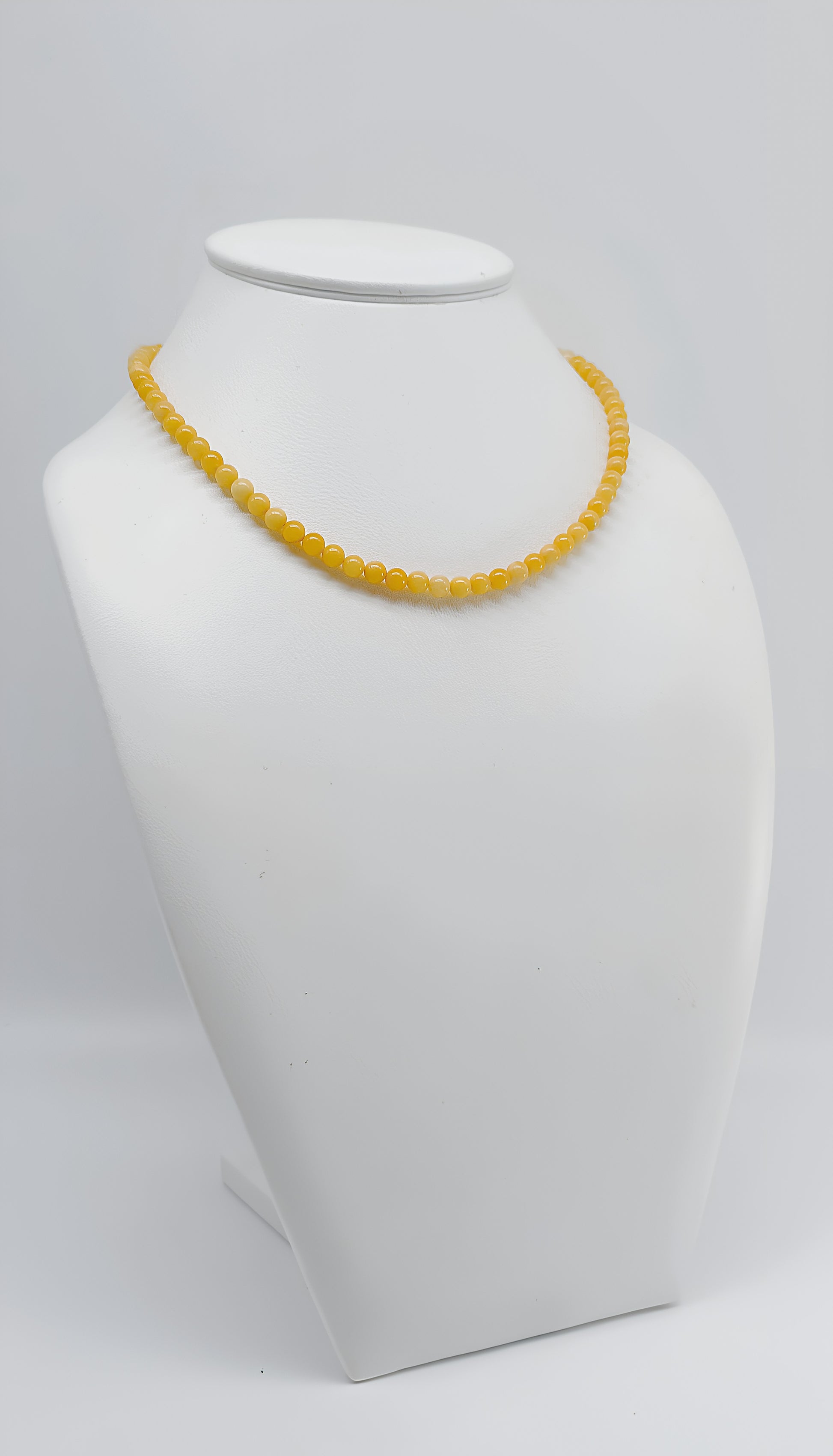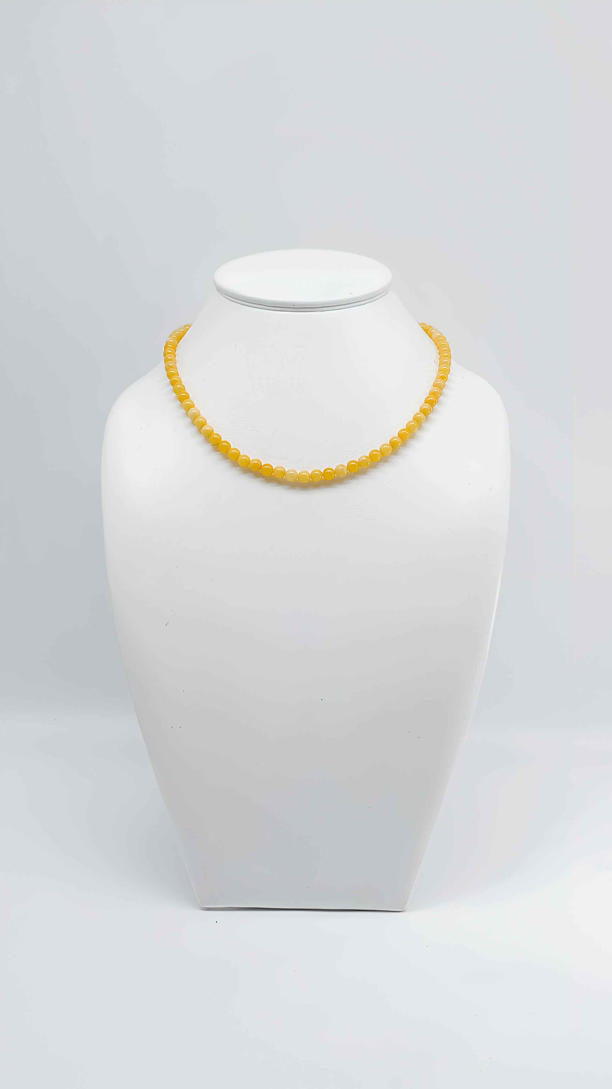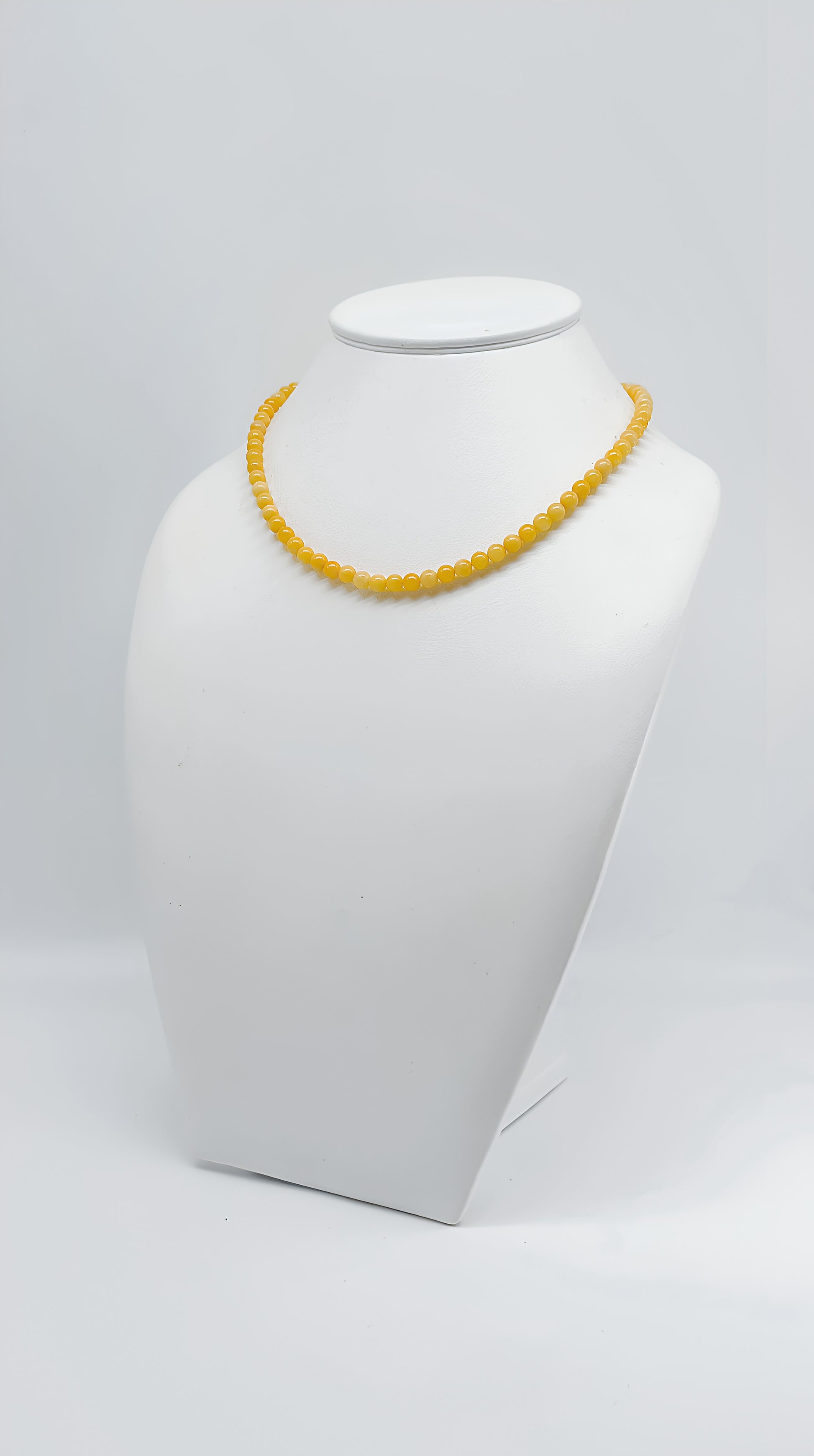 Our amber necklace radiates with the warmth and radiance of sunlight. Each pearl on this necklace is carefully selected to offer a harmonious balance of color and transparency, making this piece a true eye-catcher. Ideal for all occasions, it adds a touch of elegance and natural sparkle to any outfit.