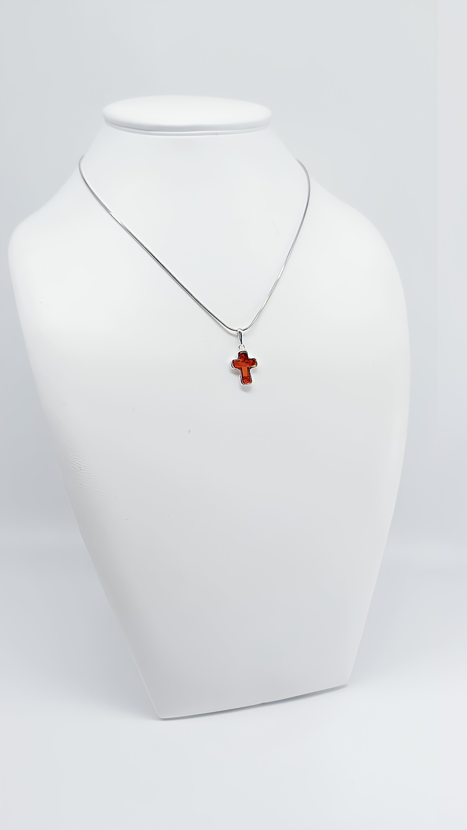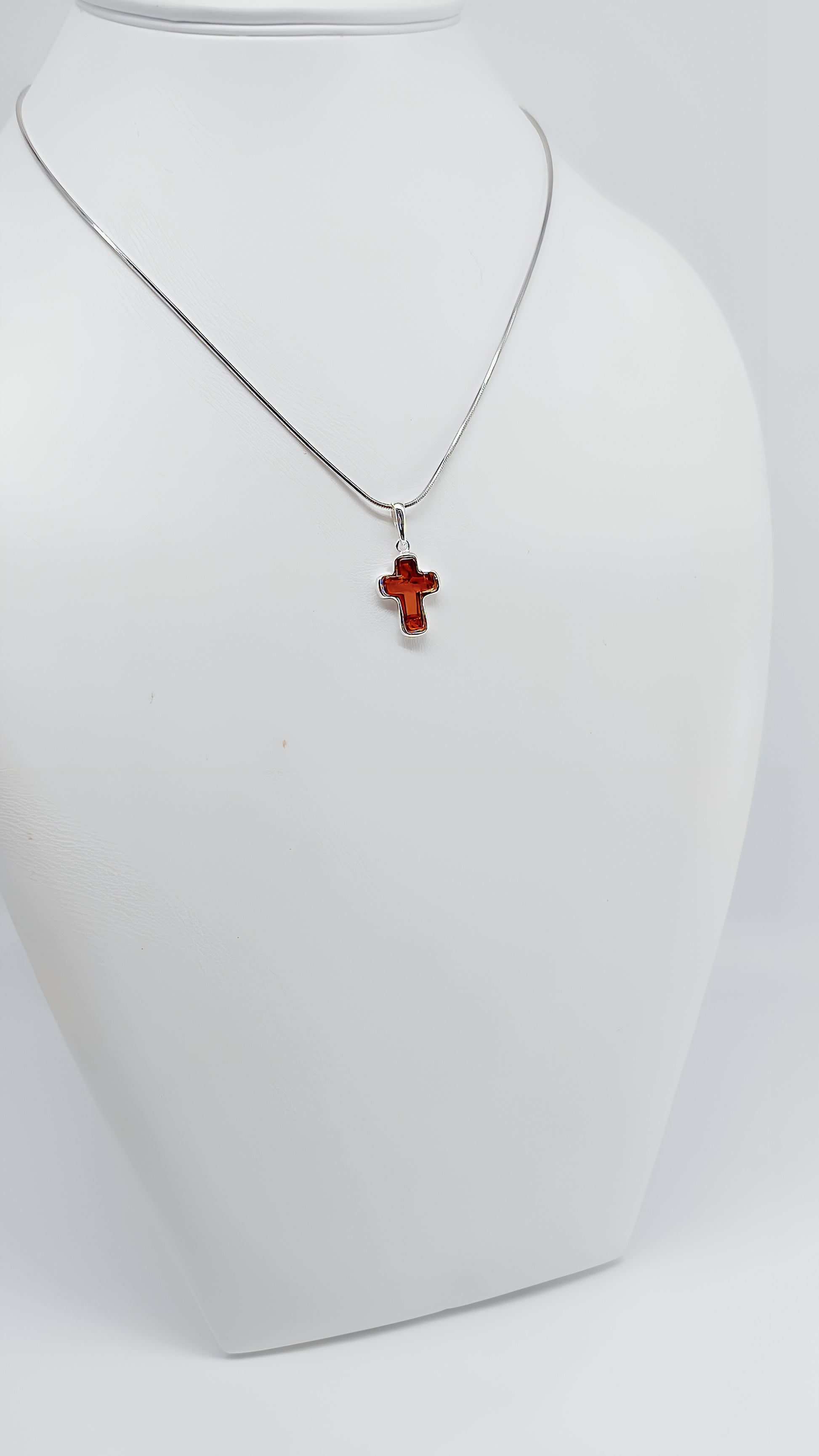 This stylish cross pendant crafted from 925 sterling silver combines the timeless elegance of silver with the natural warmth of amber. The minimalist style showcases the shimmering amber, making this pendant a daily companion with profound meaning. Perfect for anyone who wants to express their faith in an elegant and modern way.
