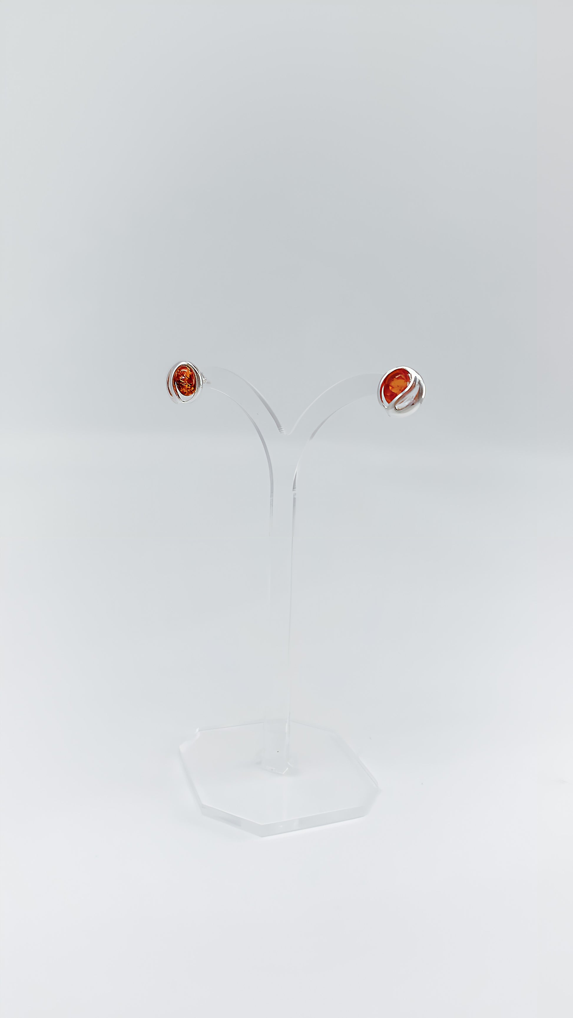 These 925 sterling silver stud earrings are set with a radiant orange amber. The stone's warm, vibrant hue harmonizes perfectly with the simple silver design, lending any outfit a natural elegance. A stylish eye-catcher that's perfect for everyday wear as well as special occasions.