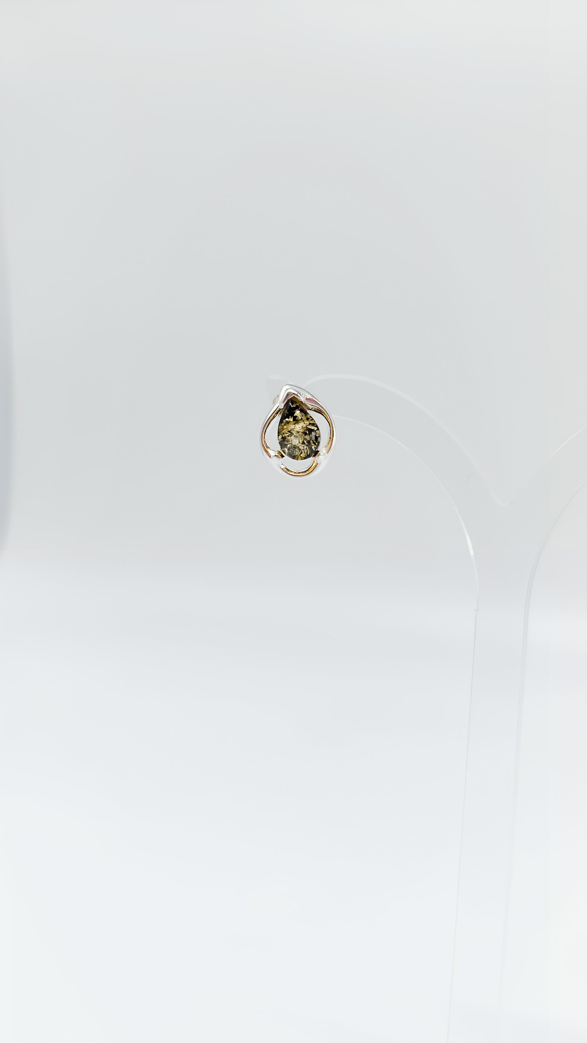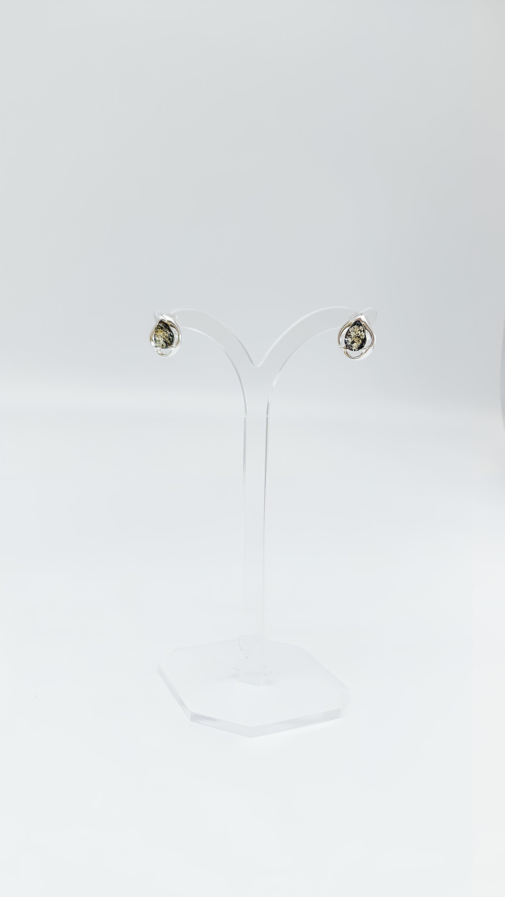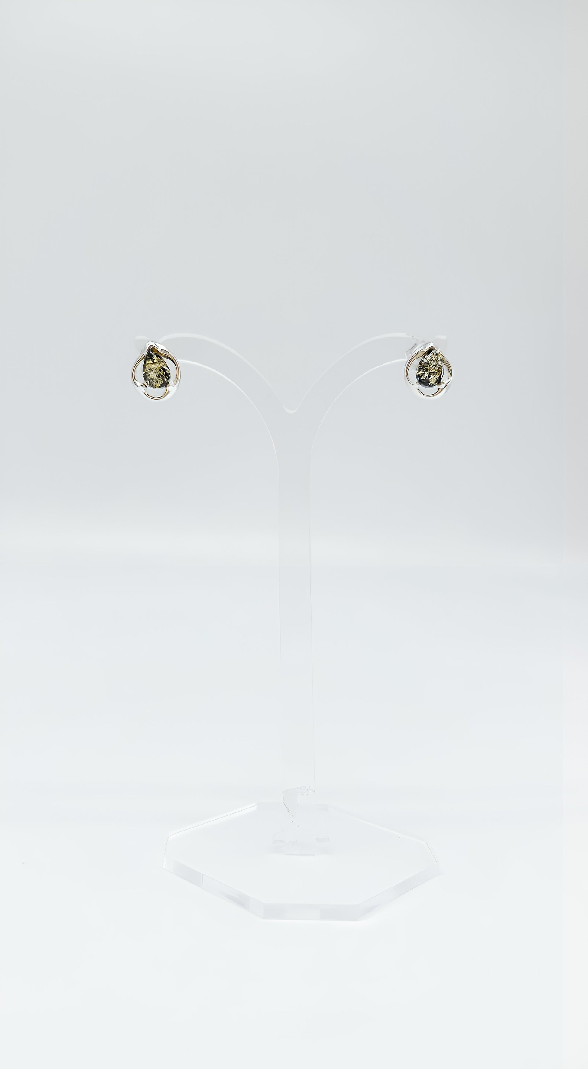 These unique 925 sterling silver stud earrings feature a green amber stone that captivates with its natural, mystical color. The elegant setting accentuates the stone and ensures it's optimal visibility. These stud earrings are the perfect choice for anyone who loves understated yet unique jewelry.