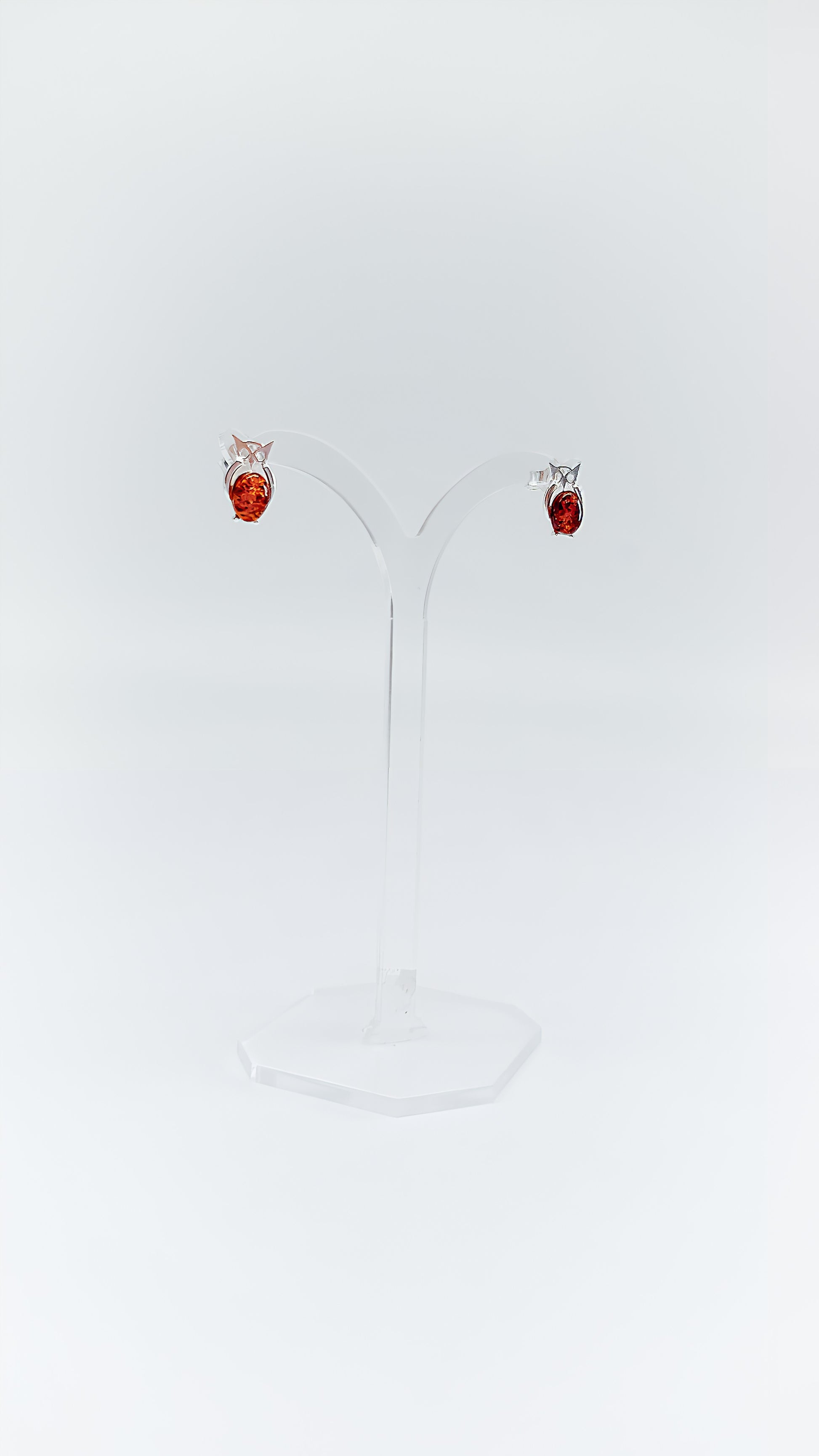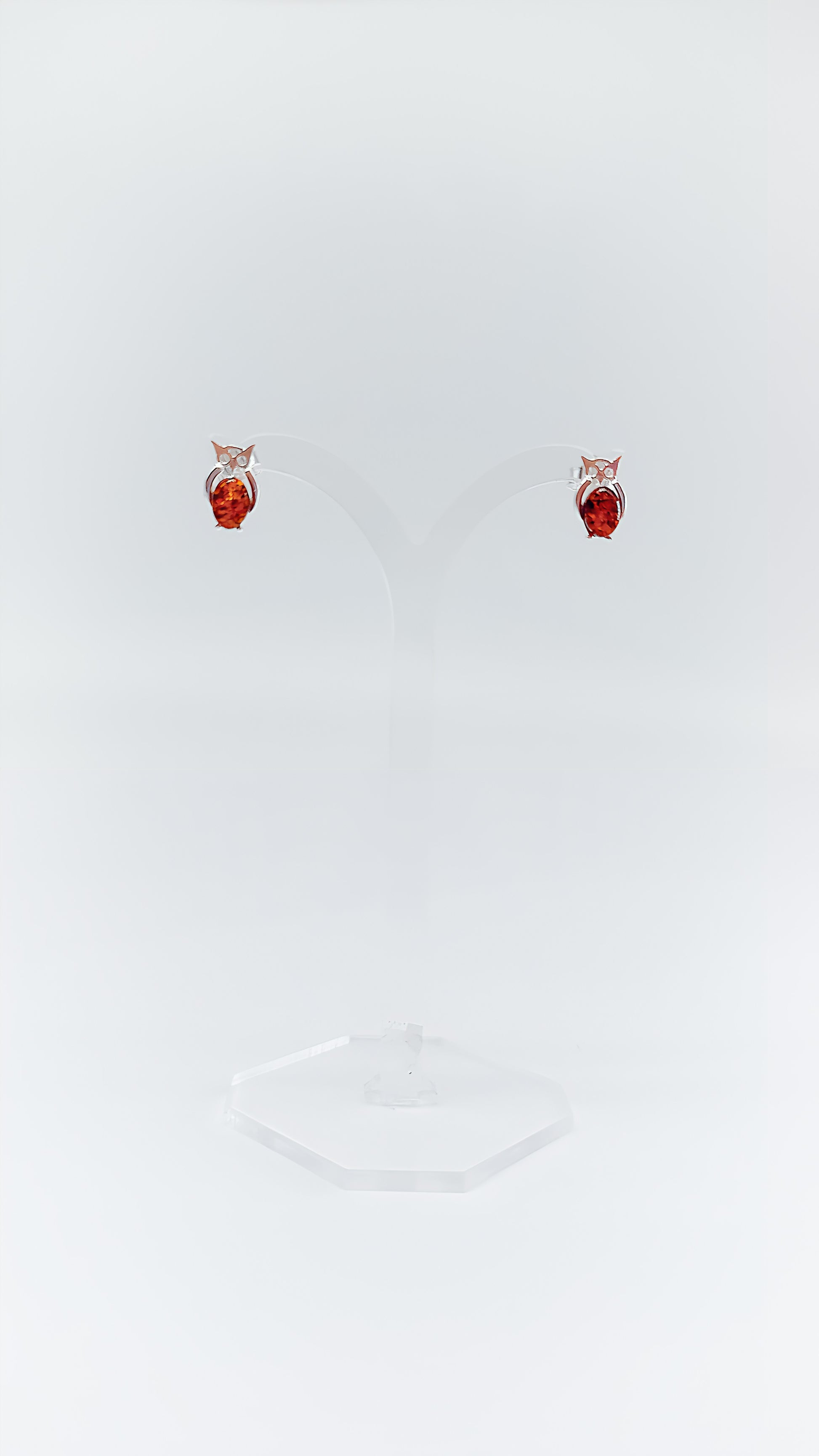 These enchanting owl-shaped stud earrings are crafted from high-quality 925 sterling silver and adorned with deep red amber. The detailed design of the owls, with their sparkling eyes, and the warm glow of the amber make these stud earrings a special accessory for anyone who loves animal motifs. The owl, as a symbol of wisdom and protection, lends these pieces of jewelry a special meaning.