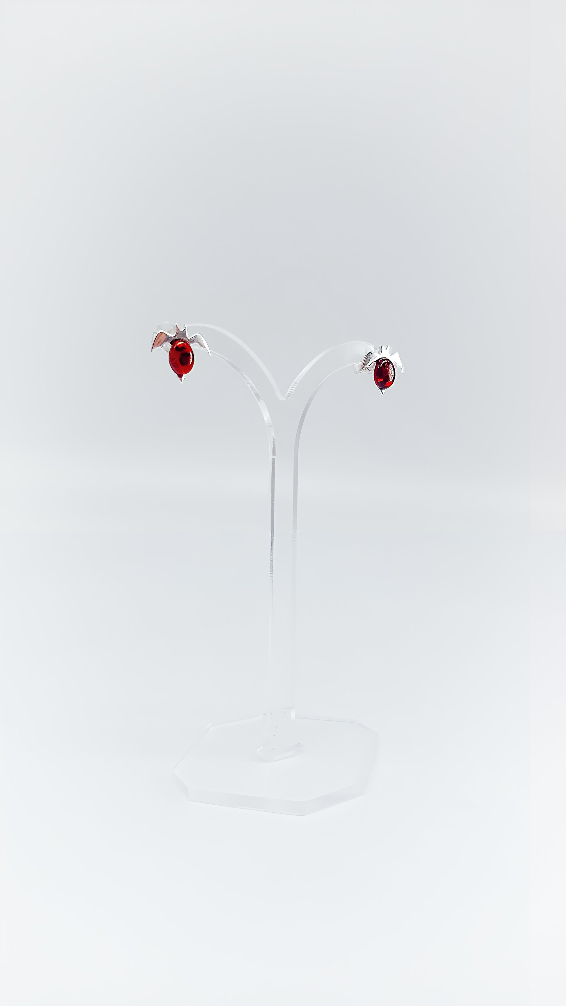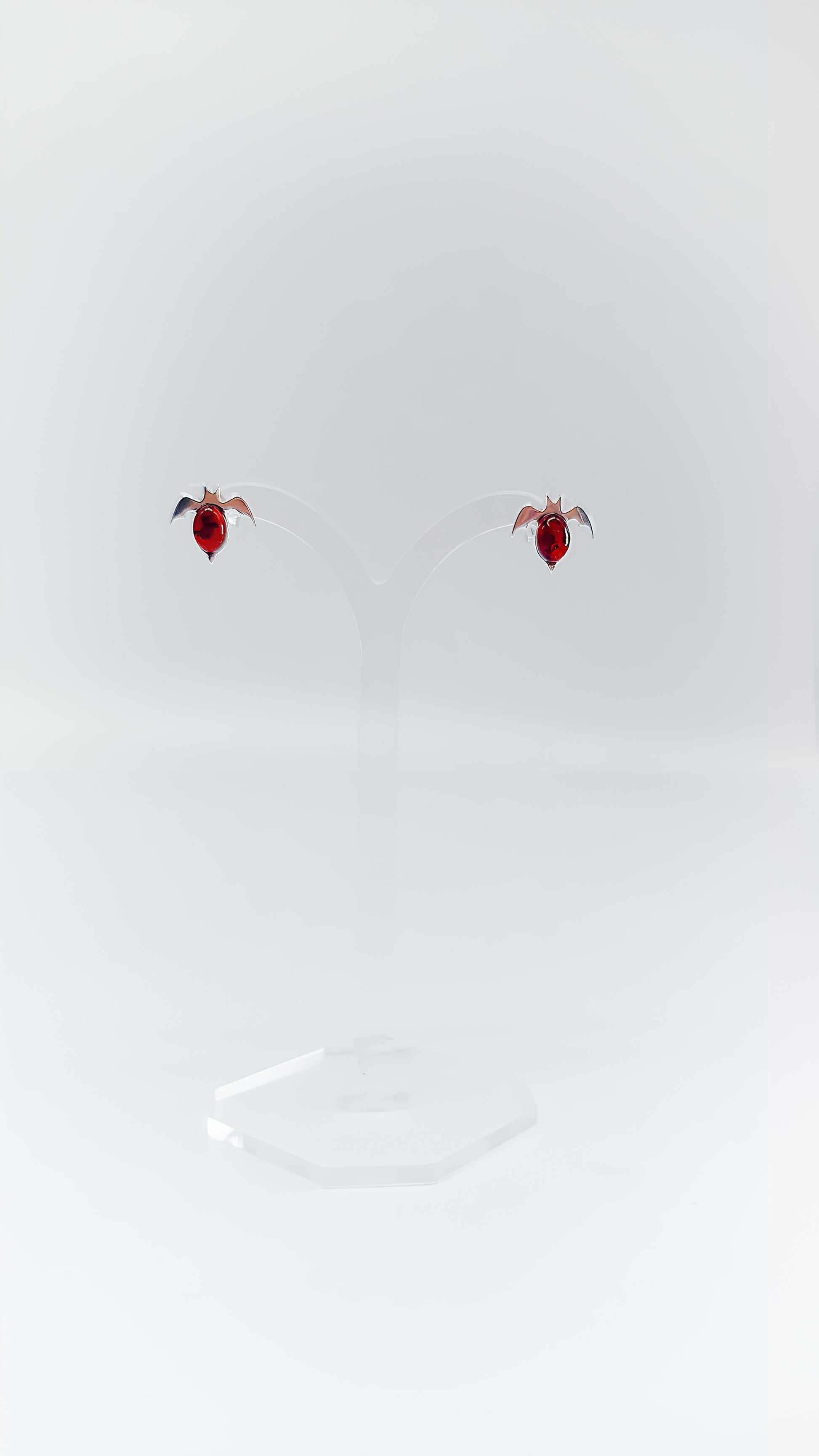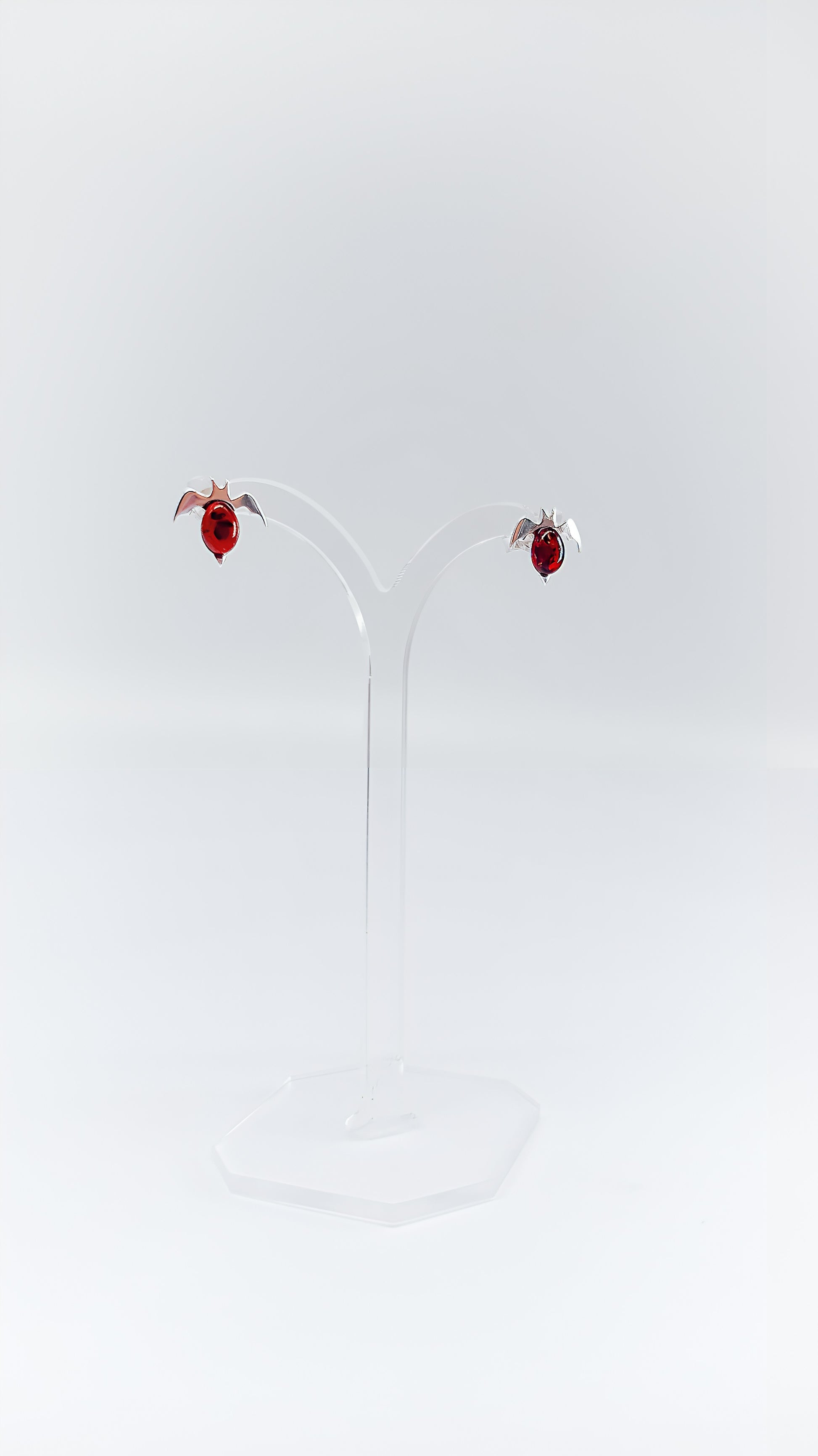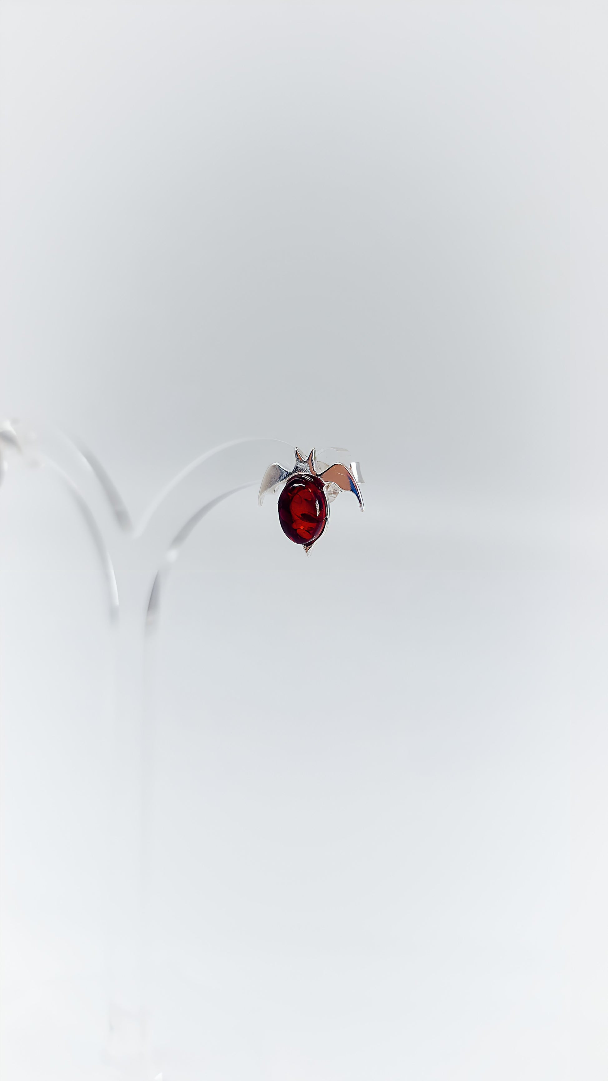 These extraordinary stud earrings combine the warm glow of amber with a unique wing design crafted from 925 sterling silver. The dramatic wings frame the centerpiece of amber, which glows an intense red. This piece of jewelry is perfect for anyone looking to incorporate a touch of mystery and individuality into their style. Whether for a special event or simply to add a special touch to your everyday look, these stud earrings are guaranteed to be an eye-catcher.