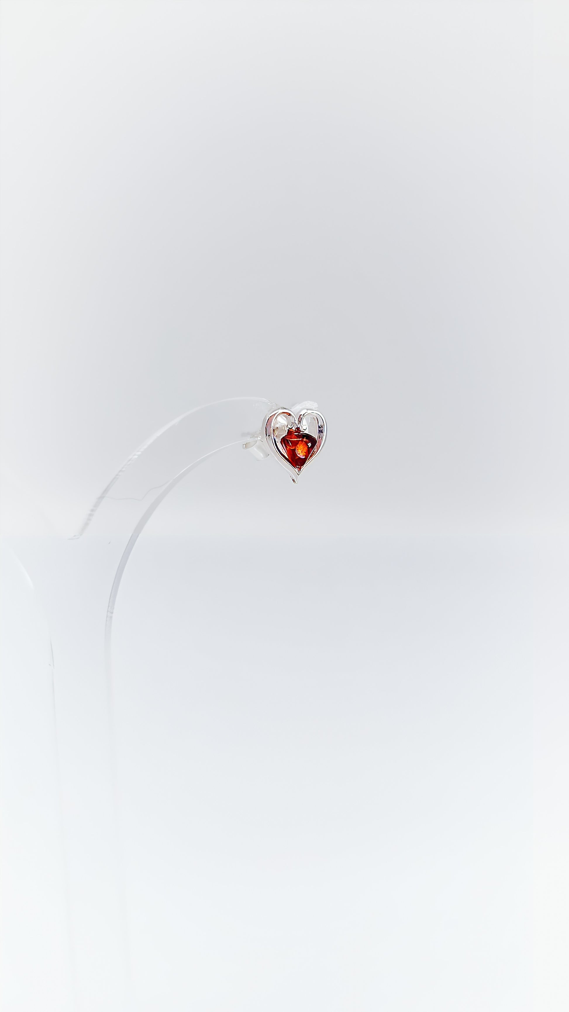 These heart-shaped stud earrings charmingly combine romance and elegance. The deep red amber, set in 925 sterling silver, glows warmly and gives the earrings a particularly loving expression. The delicate heart shape makes them a perfect gift for special occasions or simply to please a loved one. Whether for a romantic dinner or as an everyday accessory, these stud earrings bring love and style to any outfit.