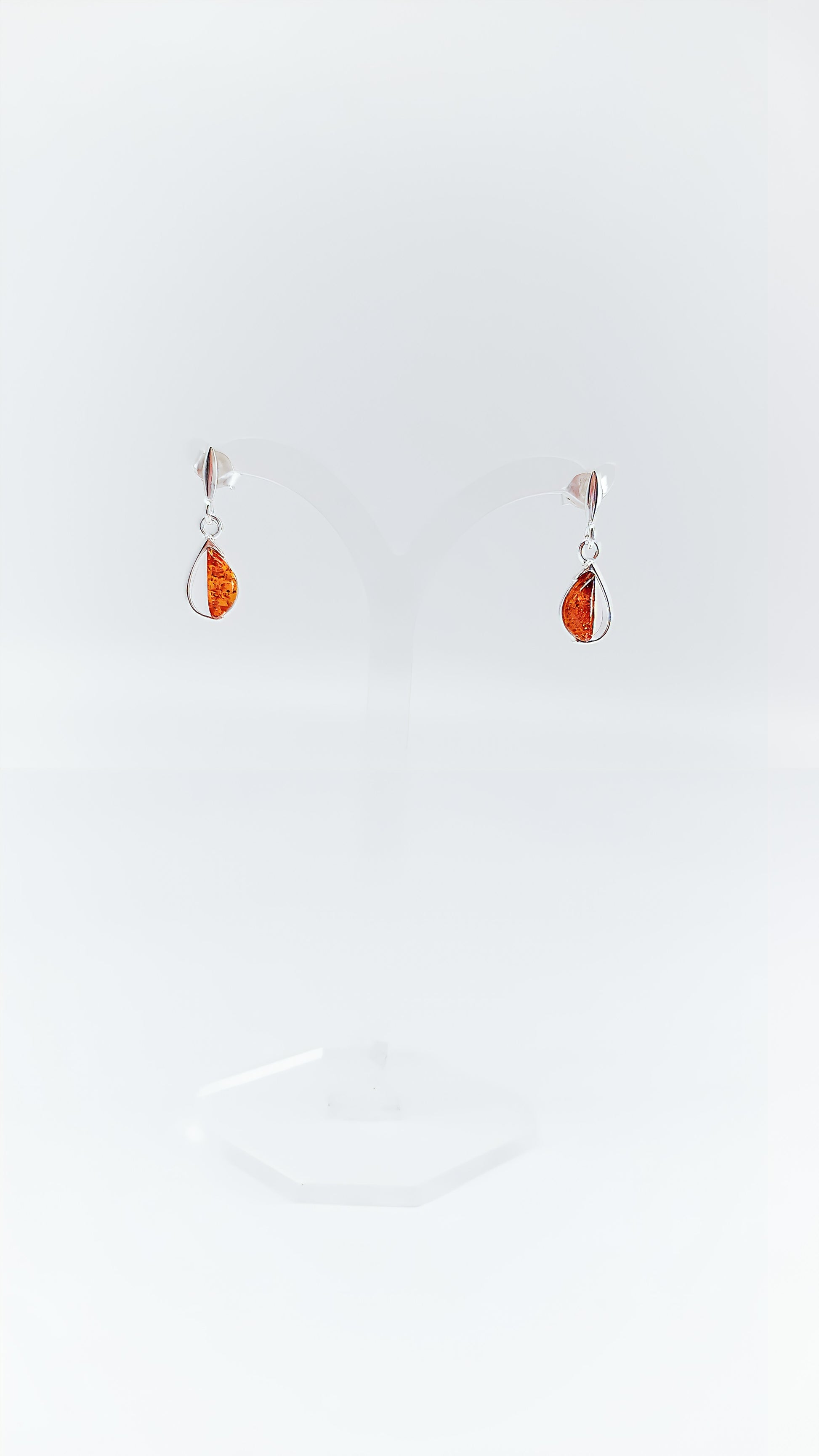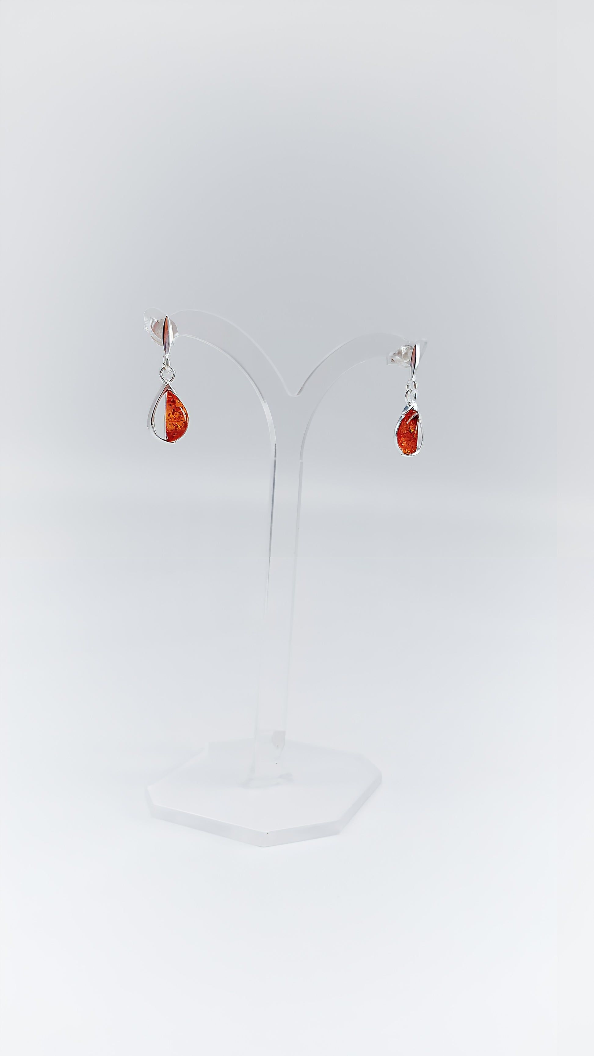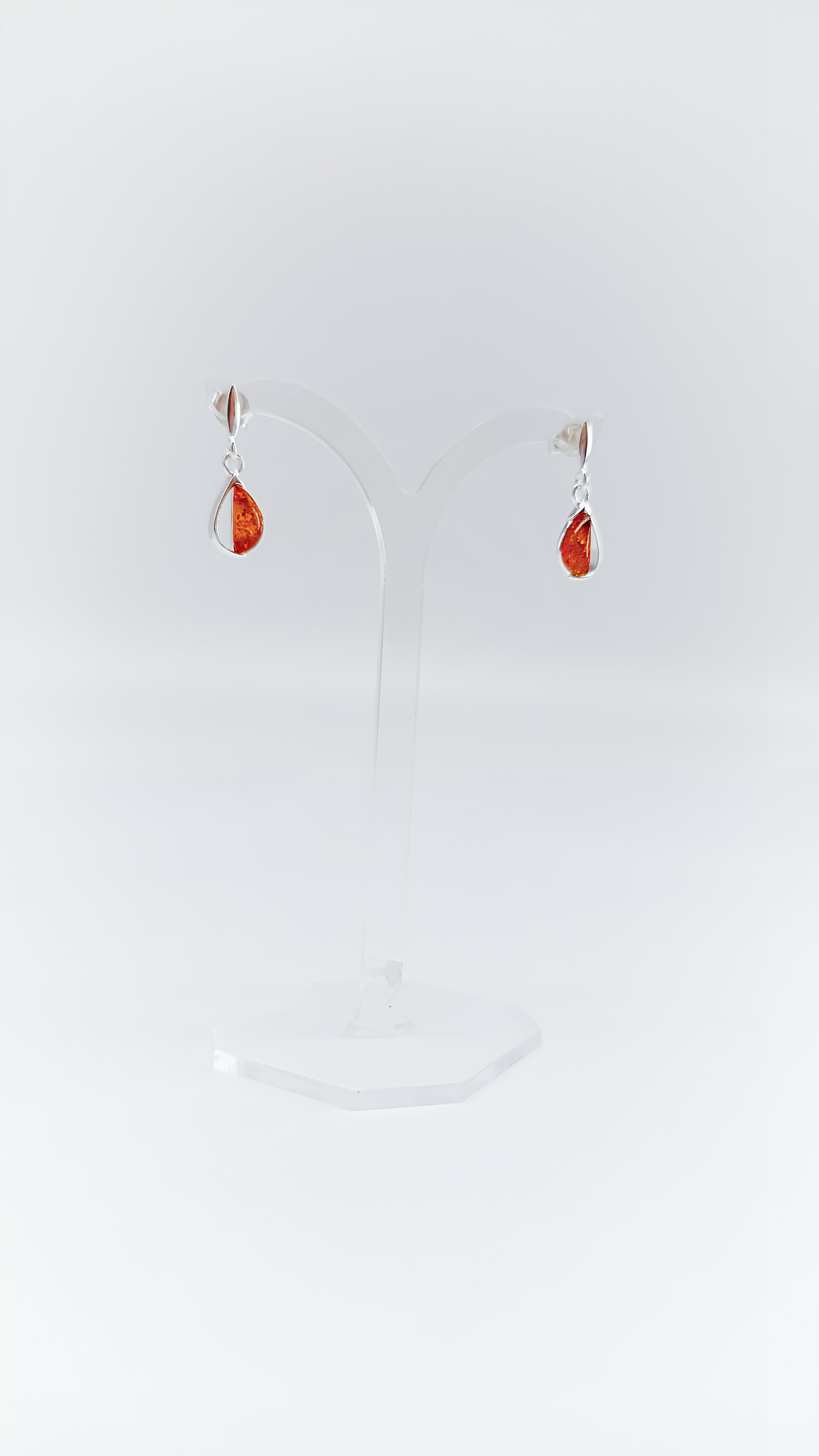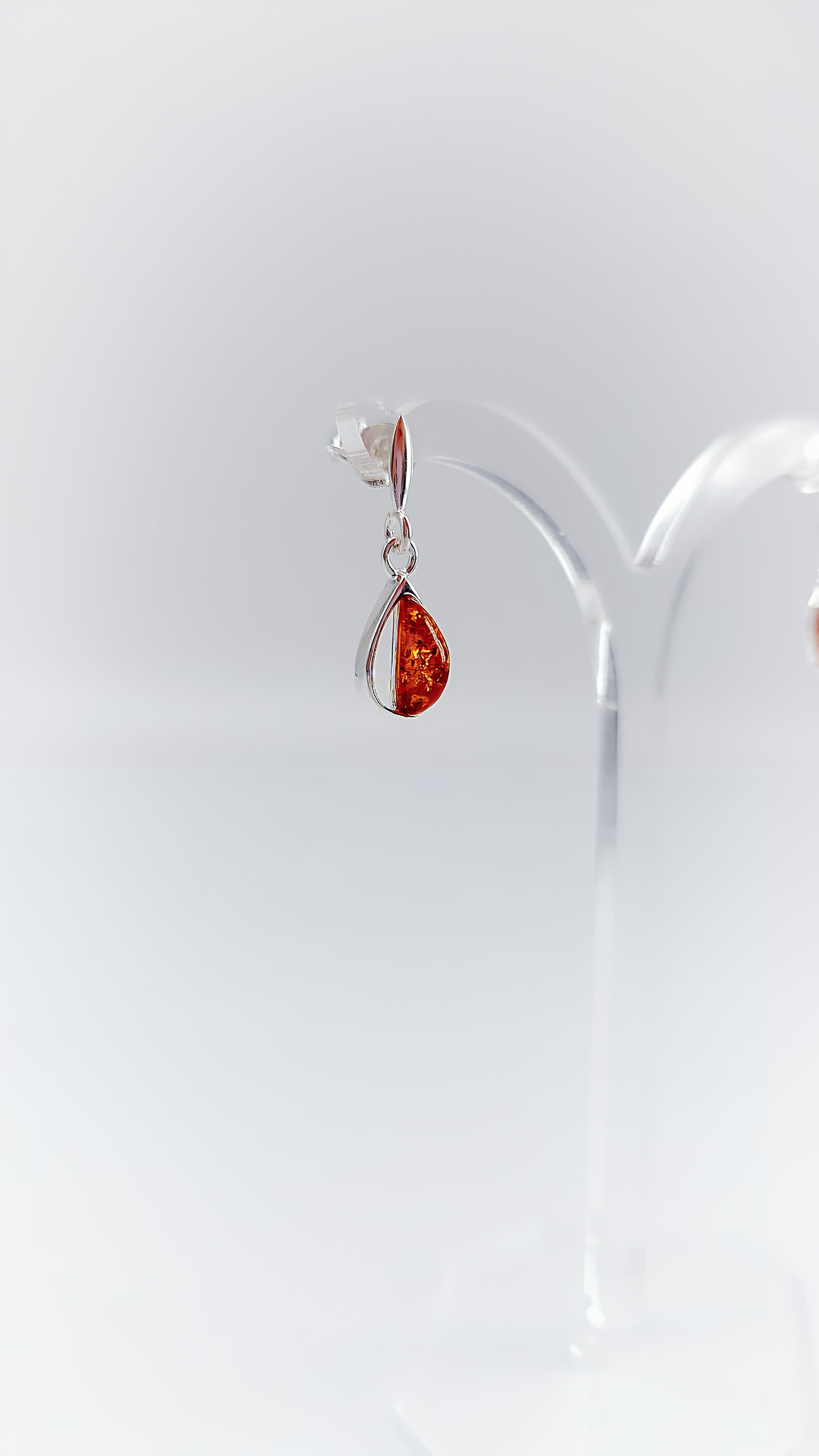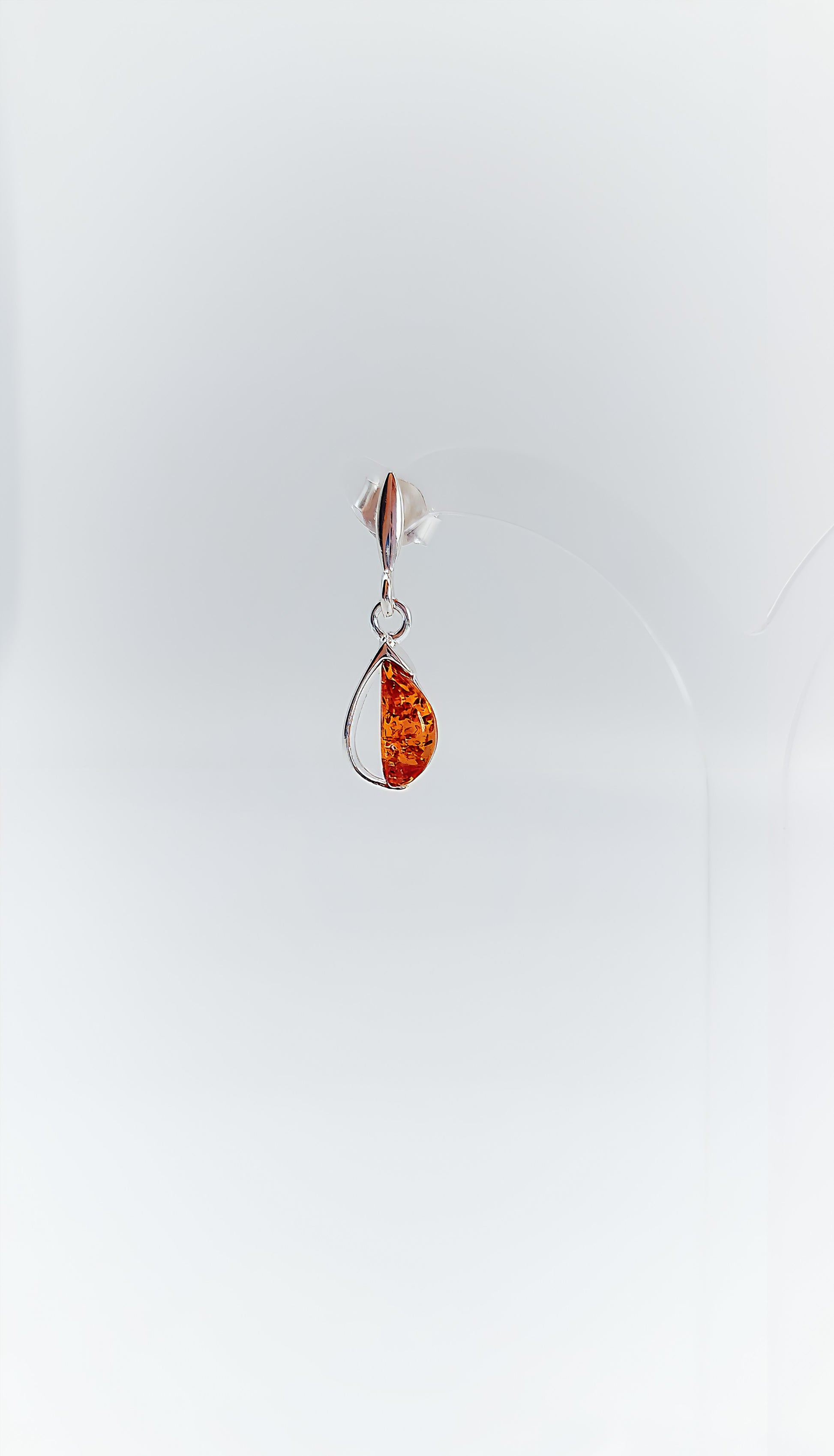 These elegant stud earrings crafted from 925 sterling silver combine timeless design with modern minimalism. The amber-colored stone shimmers in an open drop setting, lending these earrings a flowing lightness. The blend of warm amber and cool silver makes these stud earrings a versatile piece of jewelry that can be worn both everyday and on special occasions. A stylish accessory for those who love modern elegance with a touch of nature.