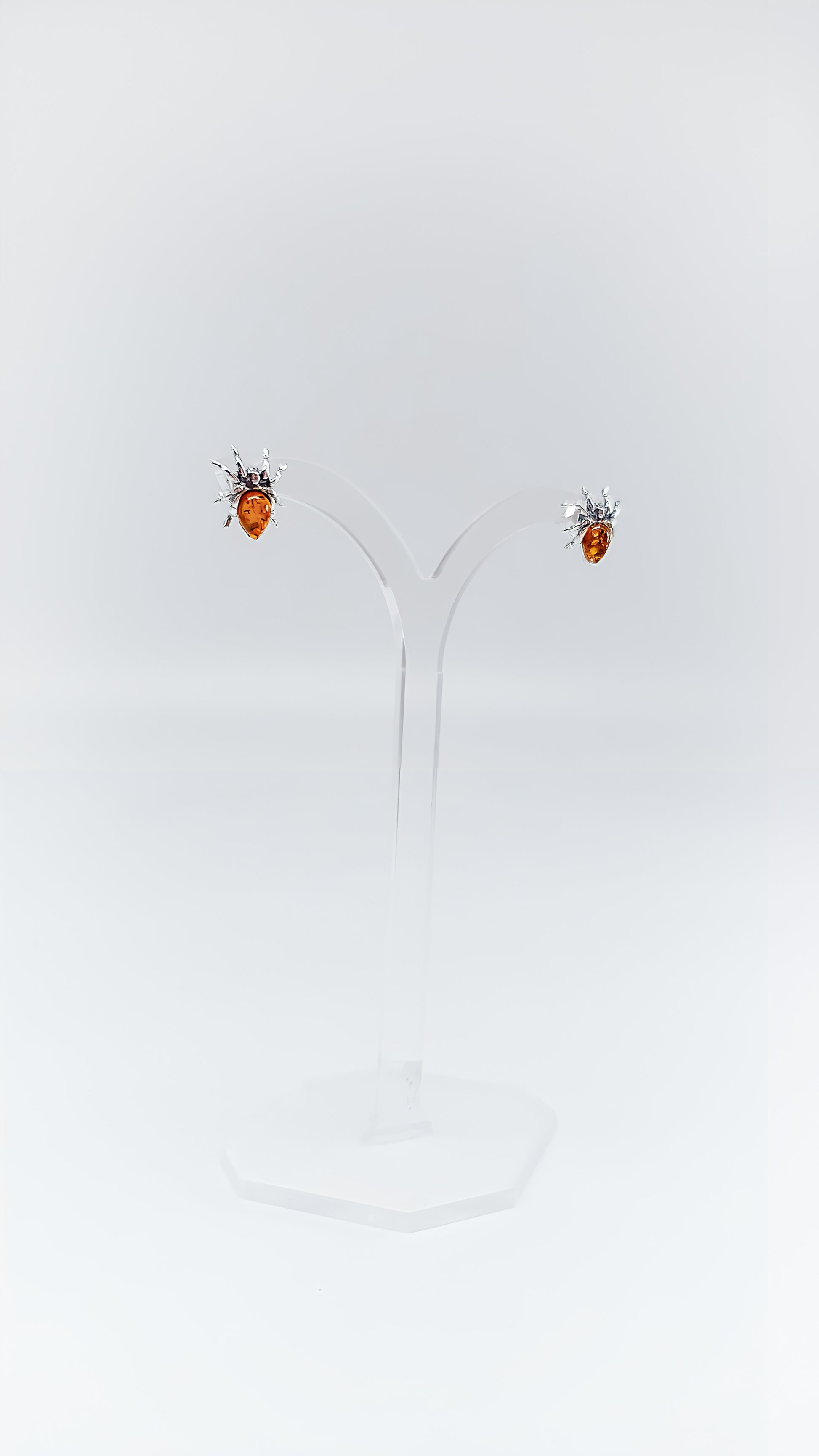 These extraordinary spider stud earrings are more than just jewelry—they're a statement! Crafted from 925 sterling silver and adorned with warm amber, they exude a captivating elegance. Perfect for those who love exceptional style and want to stand out from the crowd. The natural amber beautifully captures the light, making these stud earrings a highlight for any occasion.