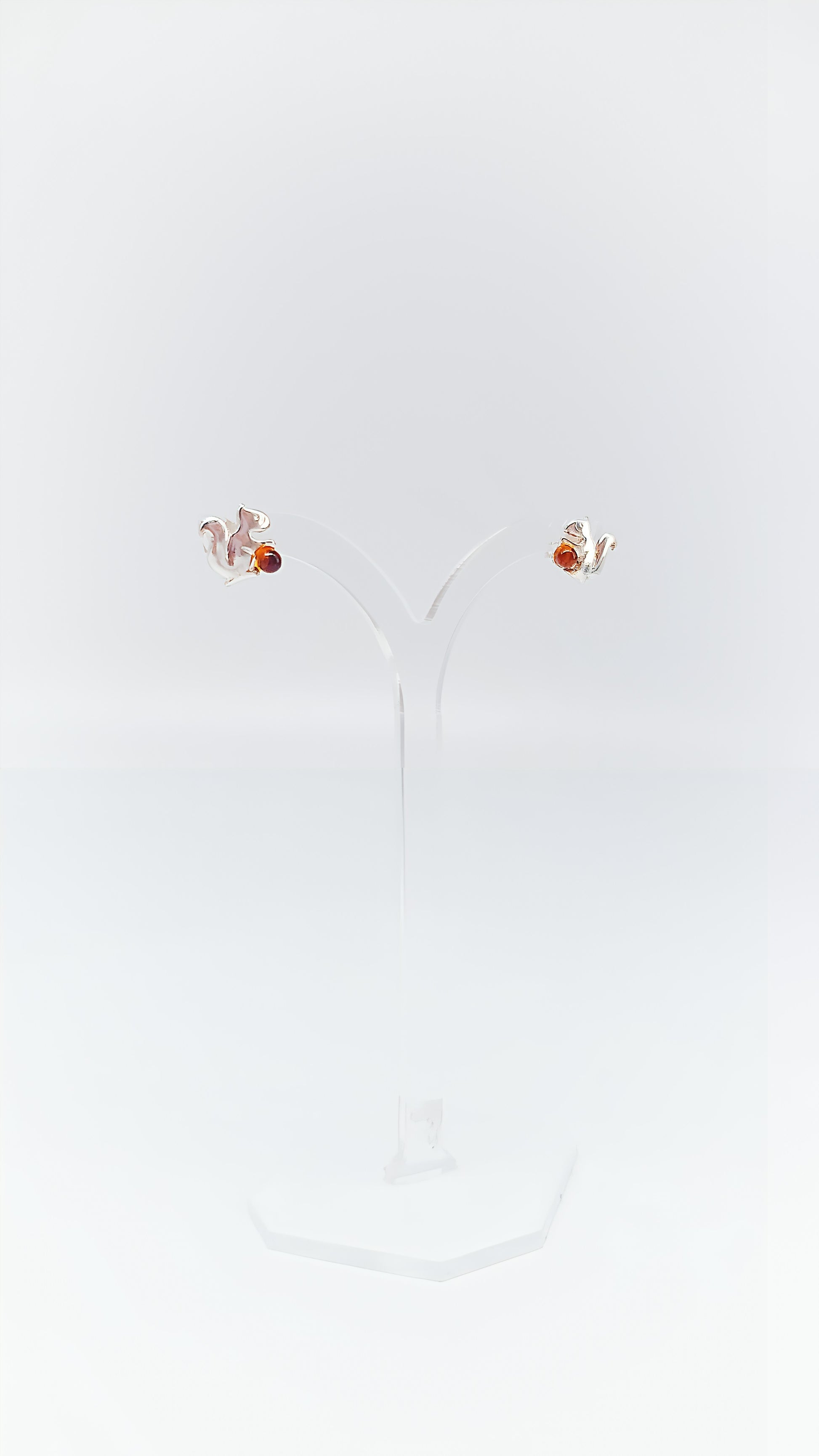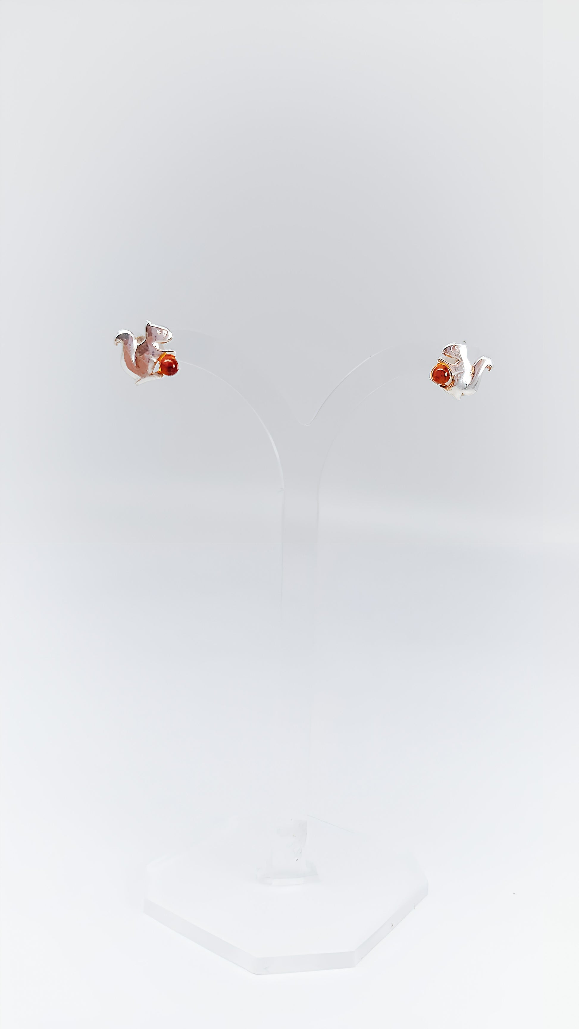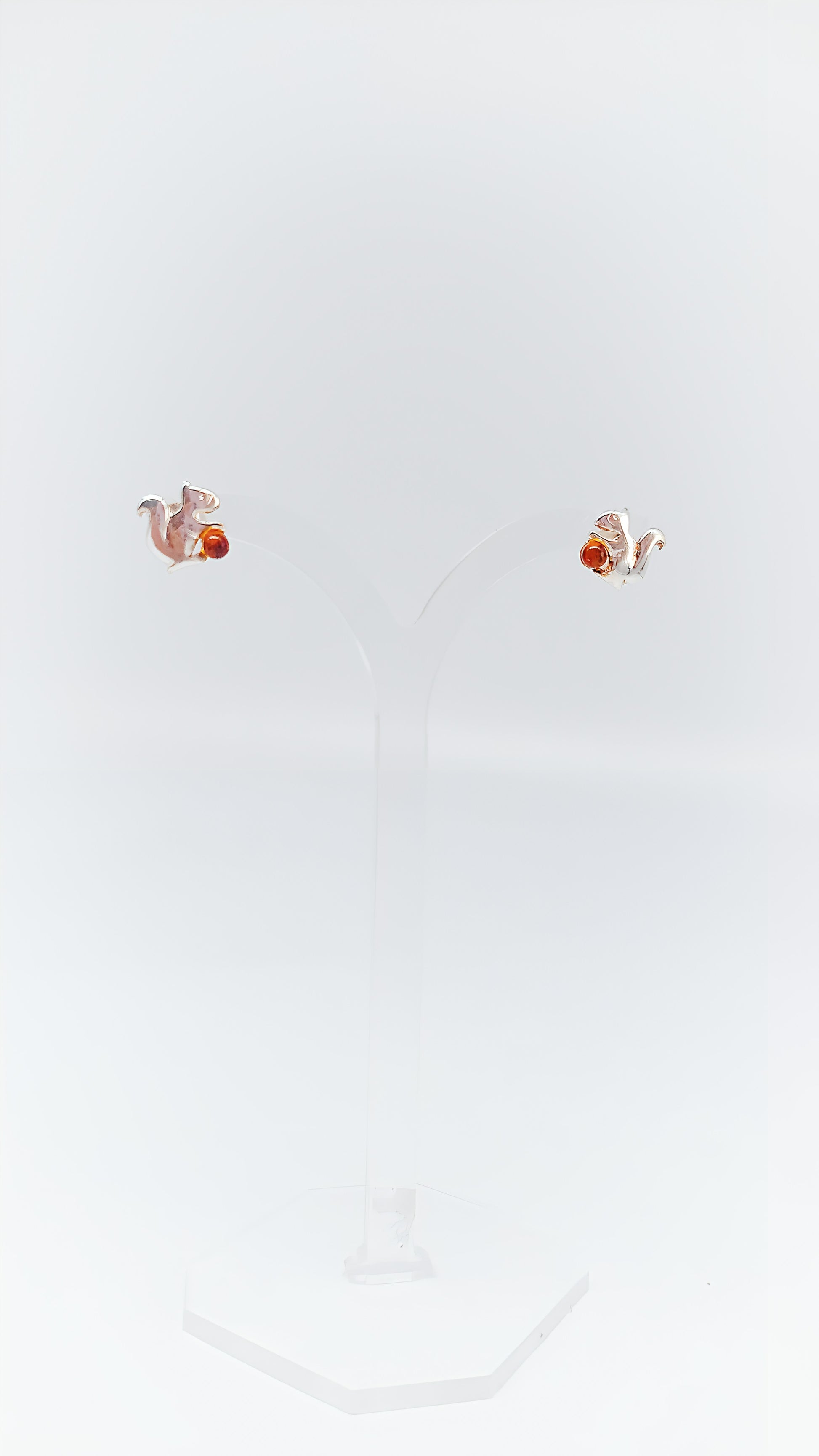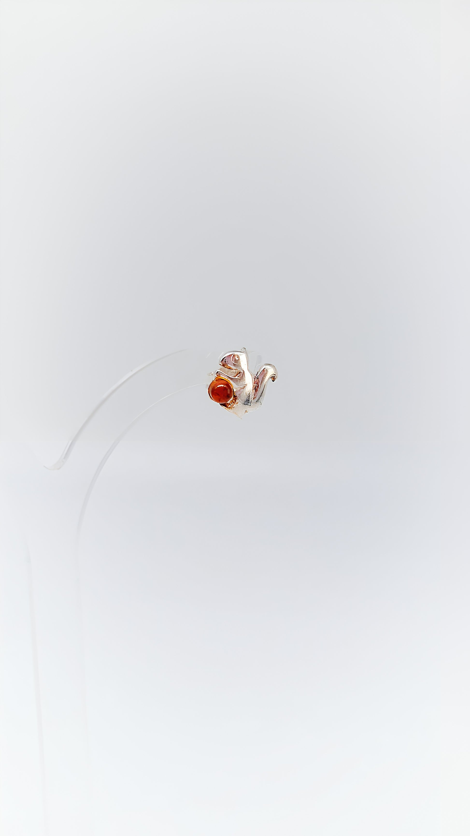 These charming 925 sterling silver stud earrings combine the playful nature of squirrels with the warm glow of amber in a unique design. The meticulously detailed silver squirrels gently hold the luminous amber, which sparkles beautifully in the sun. These stud earrings are the perfect accessory for nature lovers and anyone who wants to bring a touch of forest magic into their everyday life. Handcrafted and of high quality, they are a delightful addition to any outfit.