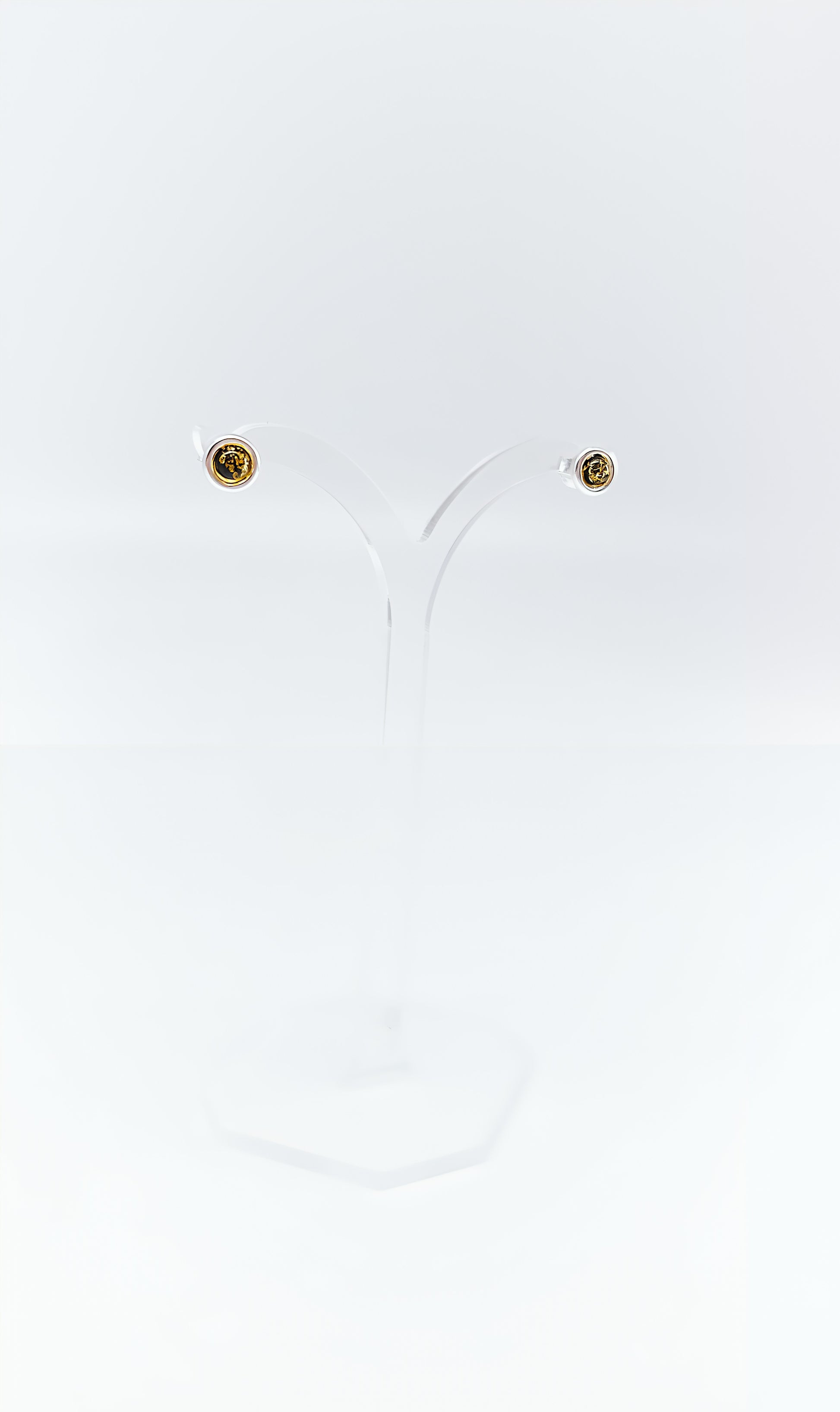 These round stud earrings made of 925 sterling silver captivate with their simple elegance. The warm, glowing amber is subtly showcased by the lustrous silver setting, exuding timeless beauty. A versatile piece of jewelry that adds a stylish touch to both everyday wear and special occasions.
