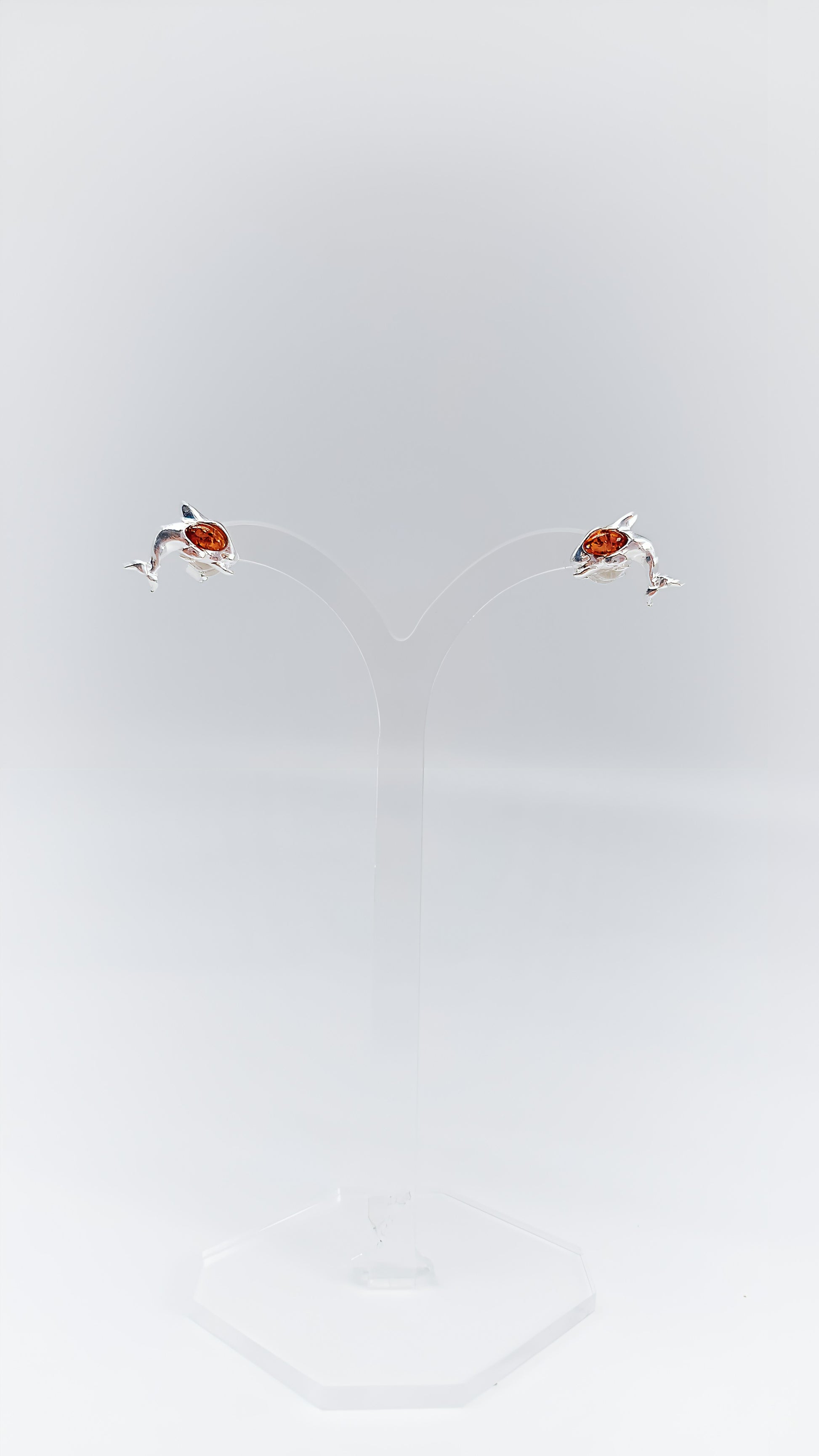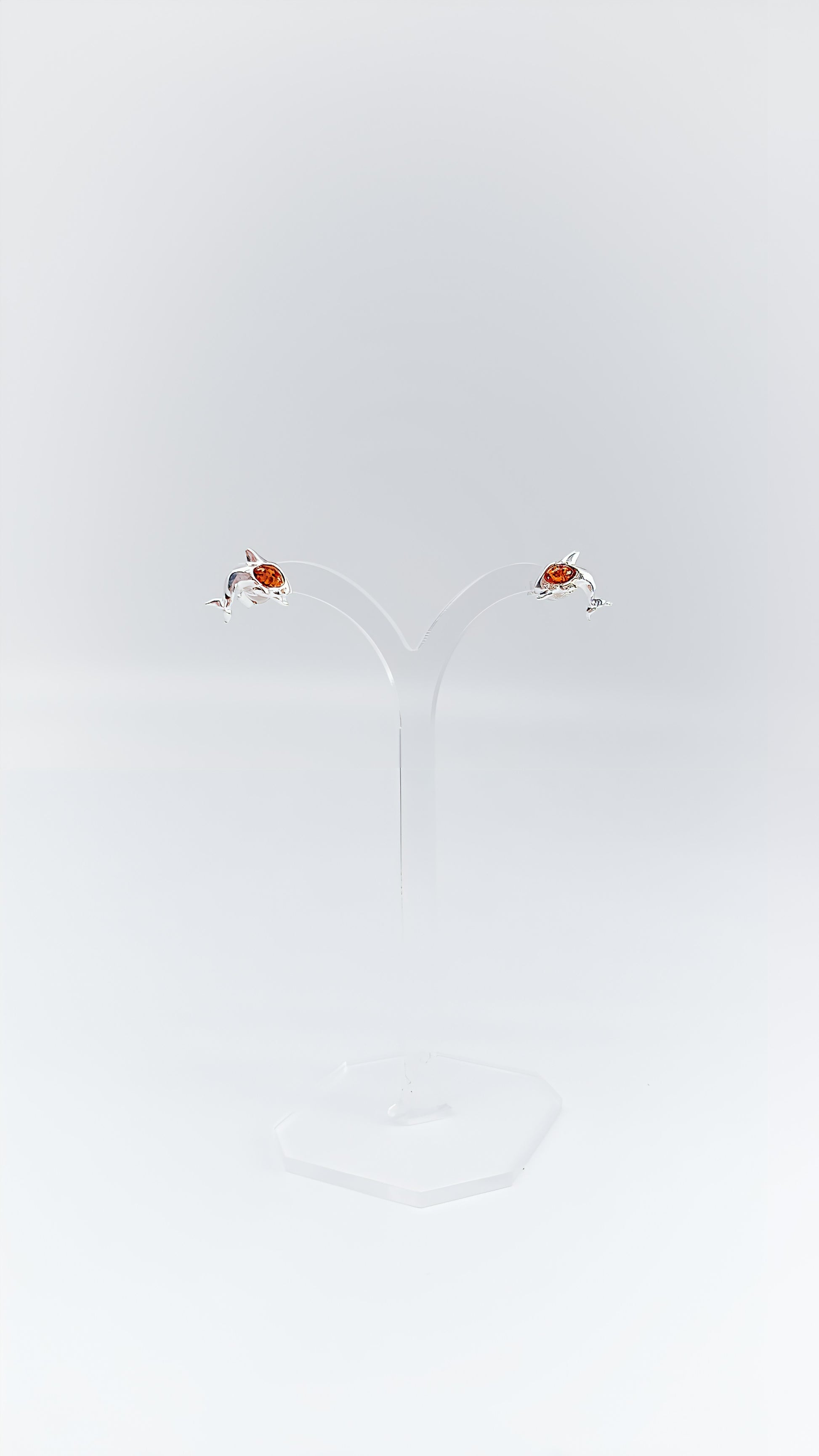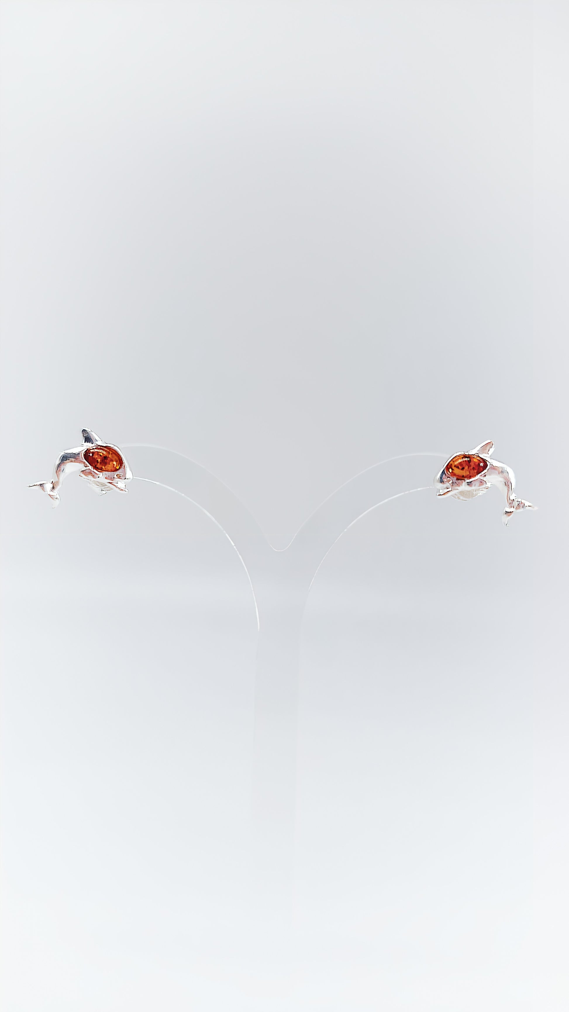 These delicate dolphin-shaped earrings are crafted from high-quality 925 Sterling silver and adorned with radiant amber. The warm glow of the amber creates a harmonious contrast with the cool silver, perfectly capturing the elegance and playfulness of the dolphin. This piece of jewelry is ideal for anyone with a special connection to the sea and its inhabitants. Whether as a lucky charm or a stylish companion, these earrings will attract attention.