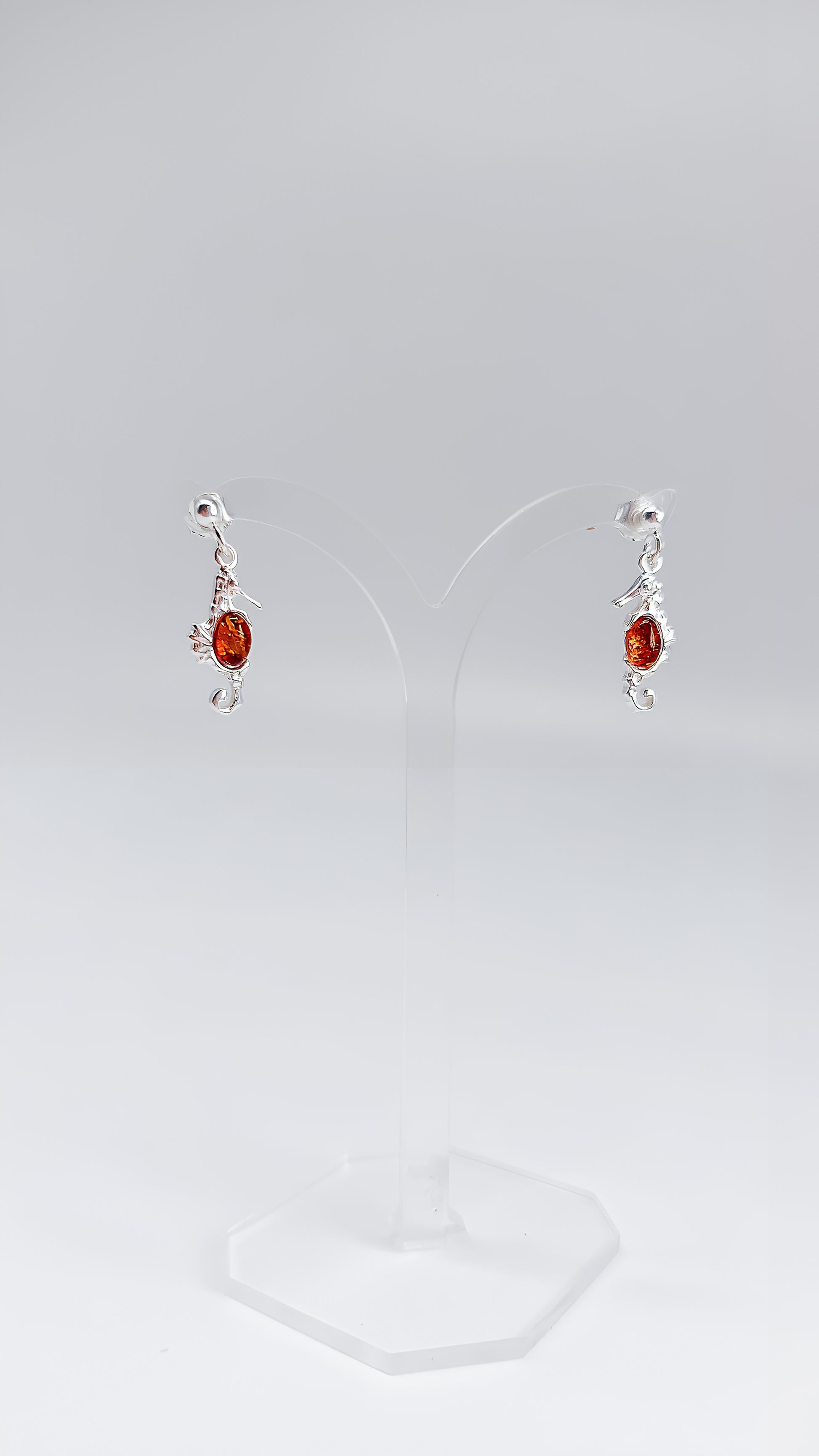 This extraordinary earring combines nautical charm and refined elegance. Crafted from 925 sterling silver and adorned with a warm amber center, the delicate seahorse design draws all eyes. The amber lends the piece a natural warmth and depth, while the playful shape of the seahorse makes the earring a unique accessory. Ideal for nature lovers and anyone who loves the sea, this piece of jewelry is a real eye-catcher – whether for everyday wear or for special occasions.