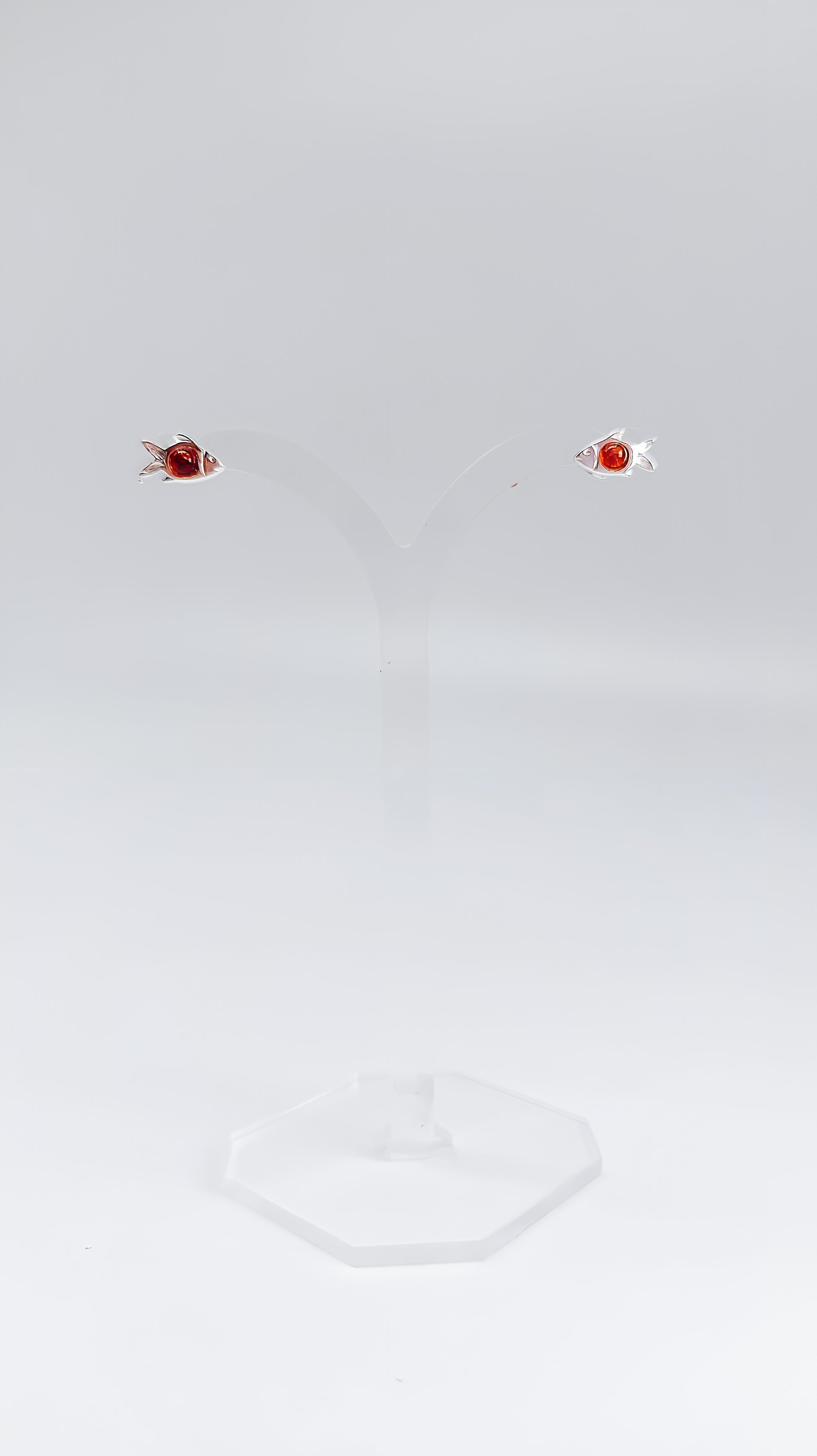 These unique stud earrings crafted from 925 sterling silver are a real eye-catcher for sea lovers and nature enthusiasts. The delicately crafted fish are adorned with warm amber, perfectly highlighting their bodies. The amber gives the earrings a natural, deep color and harmonizes beautifully with the cool silver. This playful design is both stylish and charming, bringing a touch of nautical lightness to any look. Ideal for everyday wear and special occasions—these stud earrings will make your eyes sparkle!