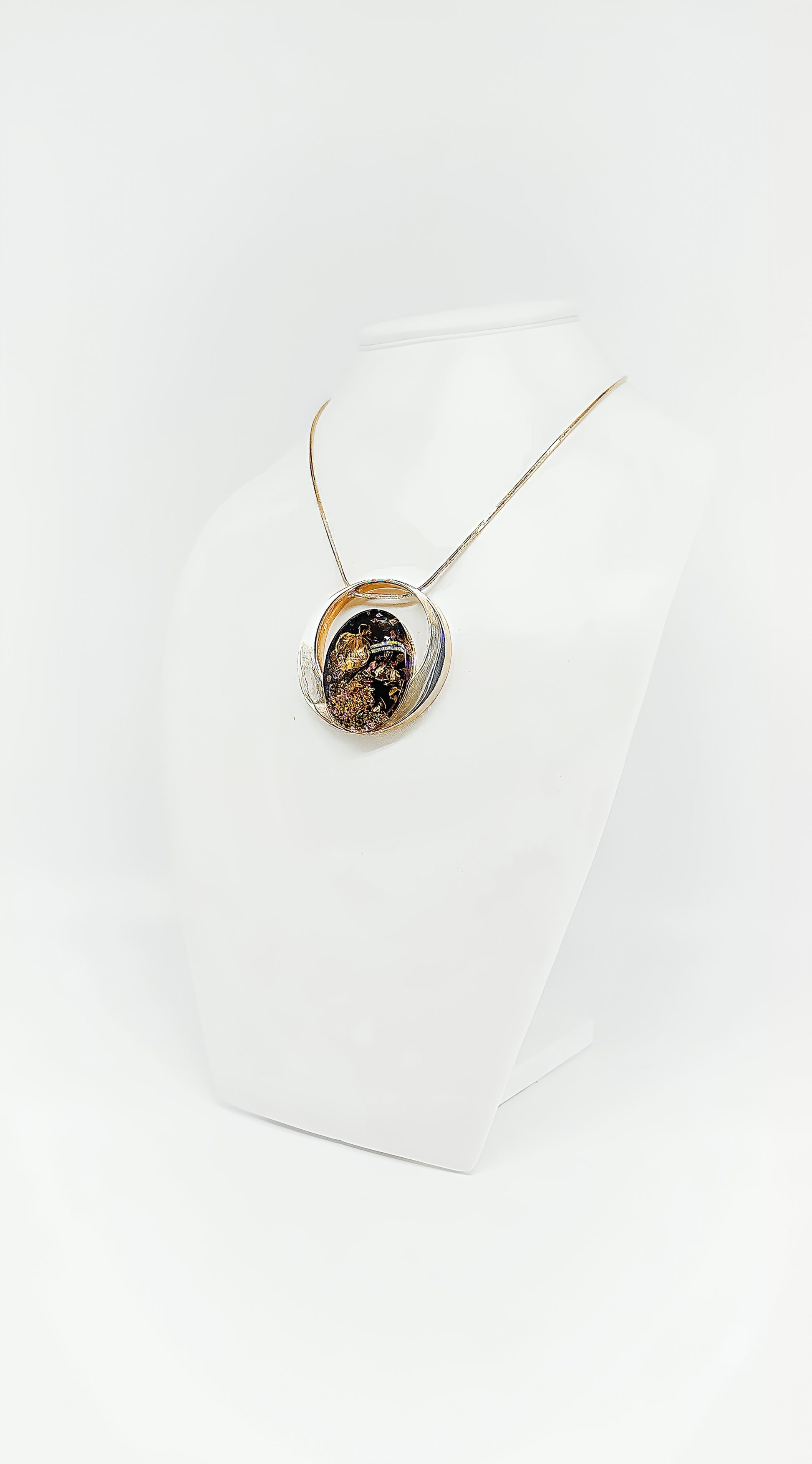 Discover the unique interplay of nature and craftsmanship with this exclusive pendant crafted from 925 sterling silver and amber. Each piece is unique, perfectly showcasing the beauty and warmth of amber. The amber embedded deep within shimmers in warm gold and brown tones and is stylishly framed by the elegant silver setting. A timeless accessory that's a real eye-catcher for both special occasions and everyday wear.