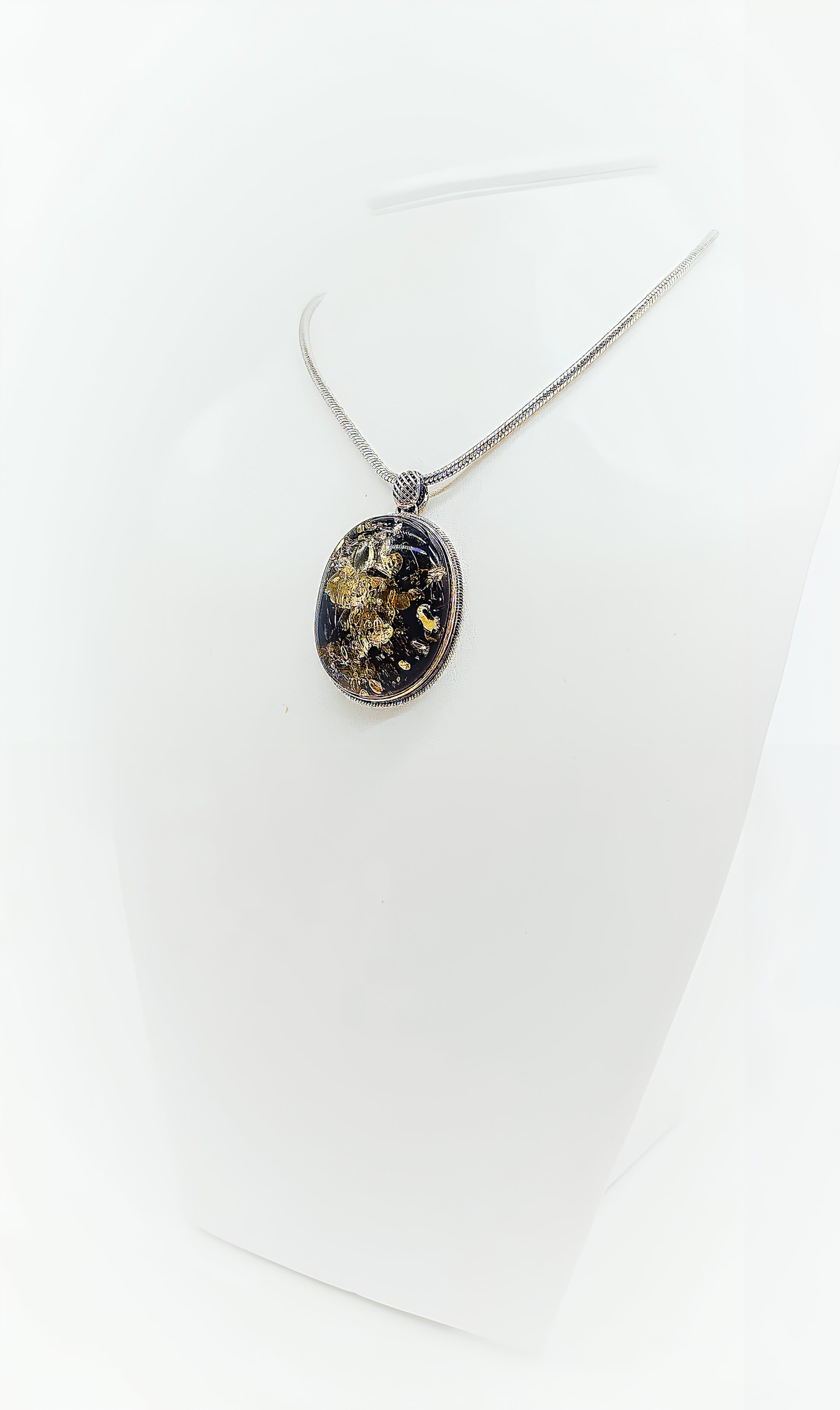 This exquisite 925 sterling silver pendant frames an oval amber inlay, captivating with its warm palette and natural texture. Each pendant is unique, showcasing the unique beauty of amber. The combination of precious silver and the natural allure of amber makes this piece of jewelry a timeless companion, radiant both in everyday life and on special occasions.